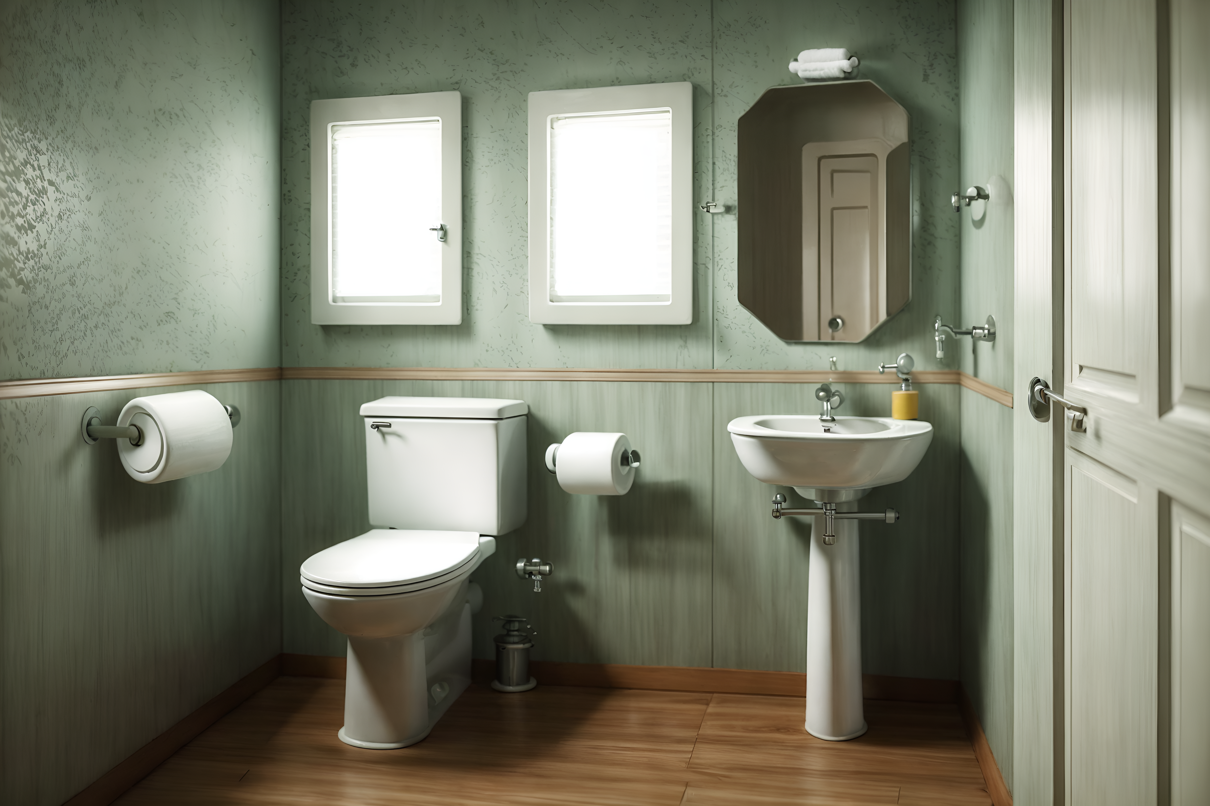 photo from pinterest of retro-style interior designed (toilet interior) with sink with tap and toilet with toilet seat up and toilet paper hanger and sink with tap cinematic photo, highly detailed, cinematic lighting, ultra-detailed, ultrarealistic, photorealism, 8k. trending on pinterest. retro interior design style. masterpiece, cinematic light, ultrarealistic+, photorealistic+, 8k, raw photo, realistic, sharp focus on eyes, (symmetrical eyes), (intact eyes), hyperrealistic, highest quality, best quality, , highly detailed, masterpiece, best quality, extremely detailed 8k wallpaper, masterpiece, best quality, ultra-detailed, best shadow, detailed background, detailed face, detailed eyes, high contrast, best illumination, detailed face, dulux, caustic, dynamic angle, detailed glow. dramatic lighting. highly detailed, insanely detailed hair, symmetrical, intricate details, professionally retouched, 8k high definition. strong bokeh. award winning photo.