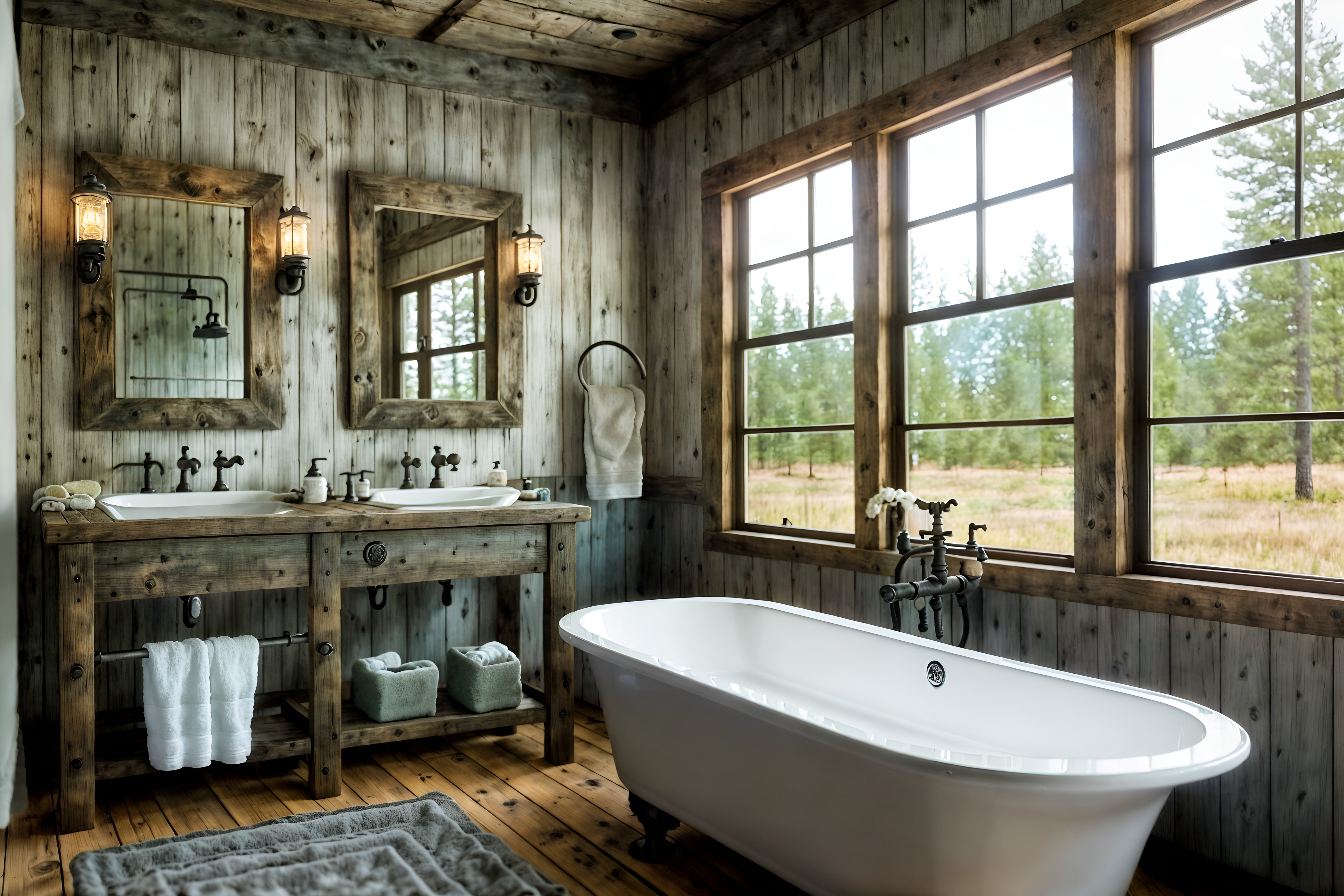 photo from pinterest of rustic-style interior designed (bathroom interior) with bathroom sink with faucet and bath rail and bath towel and shower and toilet seat and mirror and bathroom cabinet and bathtub. . with . . cinematic photo, highly detailed, cinematic lighting, ultra-detailed, ultrarealistic, photorealism, 8k. trending on pinterest. rustic interior design style. masterpiece, cinematic light, ultrarealistic+, photorealistic+, 8k, raw photo, realistic, sharp focus on eyes, (symmetrical eyes), (intact eyes), hyperrealistic, highest quality, best quality, , highly detailed, masterpiece, best quality, extremely detailed 8k wallpaper, masterpiece, best quality, ultra-detailed, best shadow, detailed background, detailed face, detailed eyes, high contrast, best illumination, detailed face, dulux, caustic, dynamic angle, detailed glow. dramatic lighting. highly detailed, insanely detailed hair, symmetrical, intricate details, professionally retouched, 8k high definition. strong bokeh. award winning photo.
