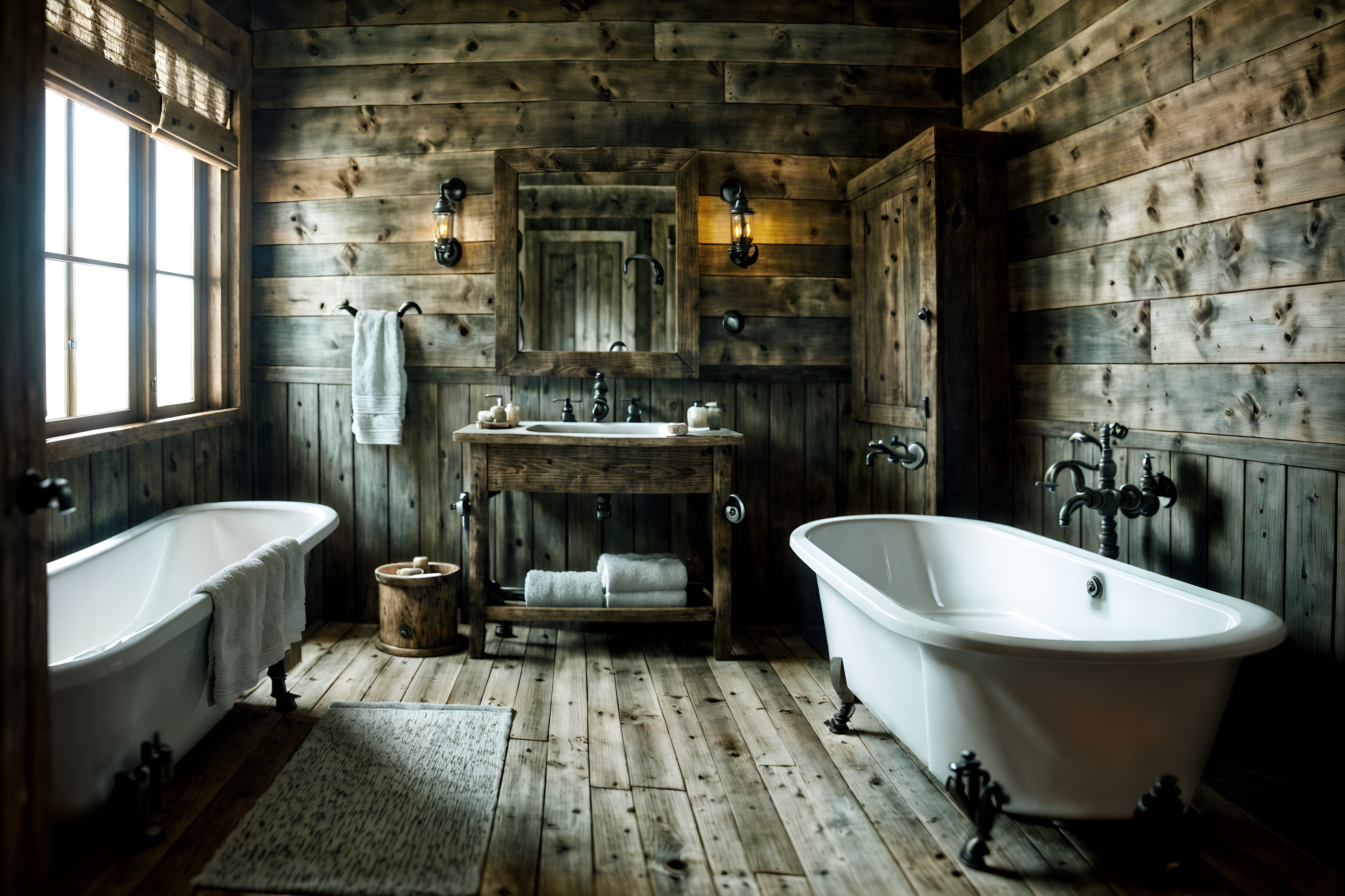 photo from pinterest of rustic-style interior designed (bathroom interior) with bathroom sink with faucet and bath rail and bath towel and shower and toilet seat and mirror and bathroom cabinet and bathtub. . with . . cinematic photo, highly detailed, cinematic lighting, ultra-detailed, ultrarealistic, photorealism, 8k. trending on pinterest. rustic interior design style. masterpiece, cinematic light, ultrarealistic+, photorealistic+, 8k, raw photo, realistic, sharp focus on eyes, (symmetrical eyes), (intact eyes), hyperrealistic, highest quality, best quality, , highly detailed, masterpiece, best quality, extremely detailed 8k wallpaper, masterpiece, best quality, ultra-detailed, best shadow, detailed background, detailed face, detailed eyes, high contrast, best illumination, detailed face, dulux, caustic, dynamic angle, detailed glow. dramatic lighting. highly detailed, insanely detailed hair, symmetrical, intricate details, professionally retouched, 8k high definition. strong bokeh. award winning photo.