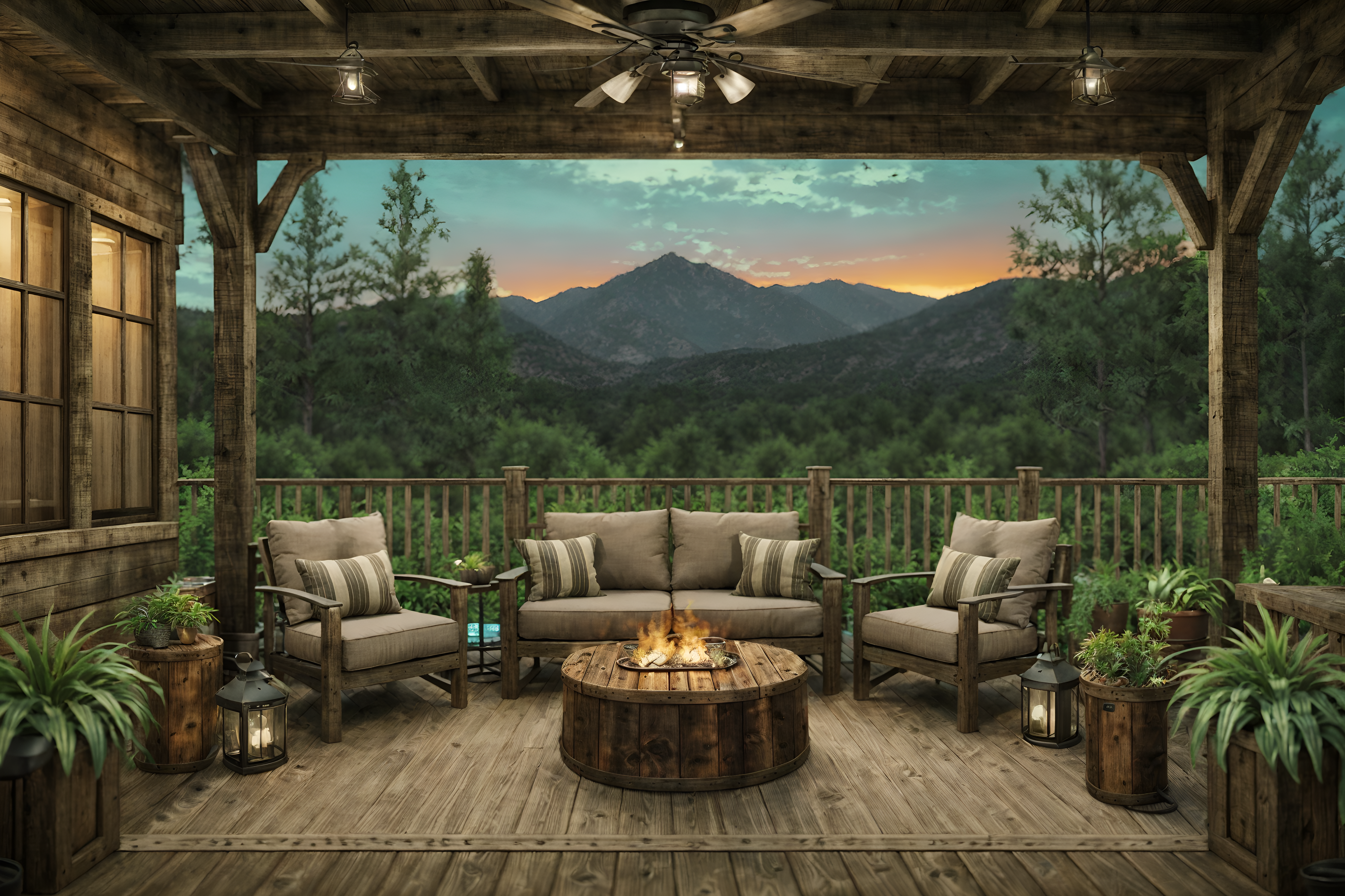 photo from pinterest of rustic-style designed (outdoor patio ) with plant and deck with deck chairs and patio couch with pillows and barbeque or grill and grass and plant. . with . . cinematic photo, highly detailed, cinematic lighting, ultra-detailed, ultrarealistic, photorealism, 8k. trending on pinterest. rustic design style. masterpiece, cinematic light, ultrarealistic+, photorealistic+, 8k, raw photo, realistic, sharp focus on eyes, (symmetrical eyes), (intact eyes), hyperrealistic, highest quality, best quality, , highly detailed, masterpiece, best quality, extremely detailed 8k wallpaper, masterpiece, best quality, ultra-detailed, best shadow, detailed background, detailed face, detailed eyes, high contrast, best illumination, detailed face, dulux, caustic, dynamic angle, detailed glow. dramatic lighting. highly detailed, insanely detailed hair, symmetrical, intricate details, professionally retouched, 8k high definition. strong bokeh. award winning photo.