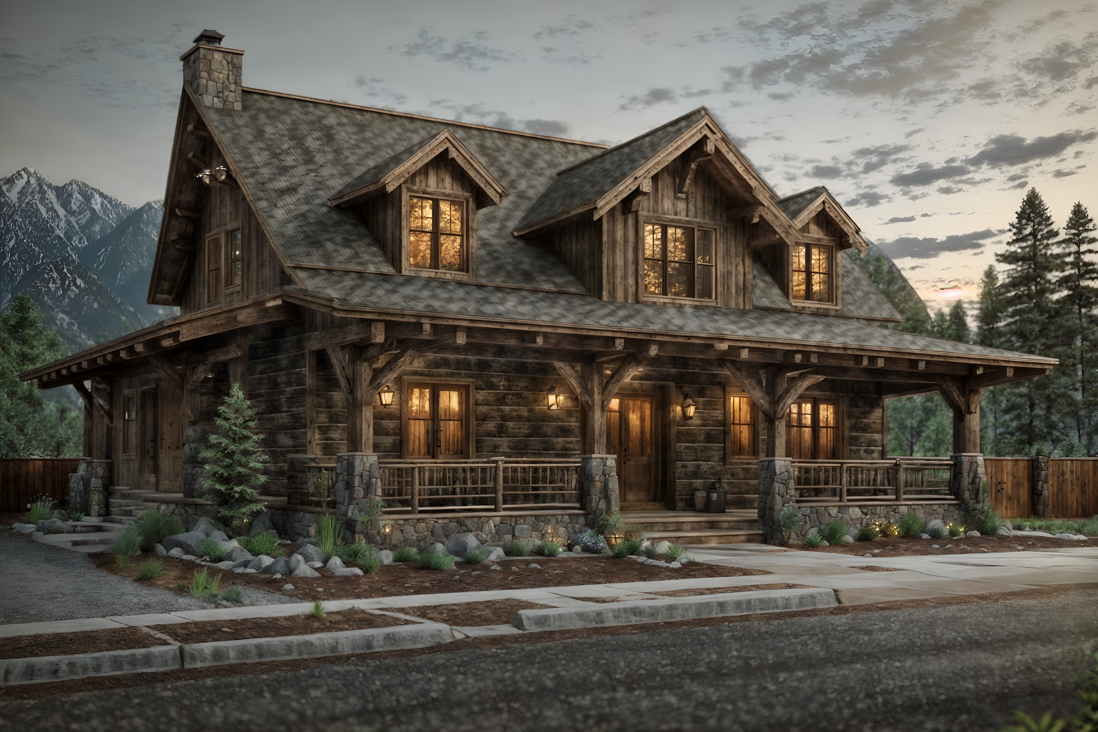 photo from pinterest of rustic-style exterior designed (house exterior exterior) . with . . cinematic photo, highly detailed, cinematic lighting, ultra-detailed, ultrarealistic, photorealism, 8k. trending on pinterest. rustic exterior design style. masterpiece, cinematic light, ultrarealistic+, photorealistic+, 8k, raw photo, realistic, sharp focus on eyes, (symmetrical eyes), (intact eyes), hyperrealistic, highest quality, best quality, , highly detailed, masterpiece, best quality, extremely detailed 8k wallpaper, masterpiece, best quality, ultra-detailed, best shadow, detailed background, detailed face, detailed eyes, high contrast, best illumination, detailed face, dulux, caustic, dynamic angle, detailed glow. dramatic lighting. highly detailed, insanely detailed hair, symmetrical, intricate details, professionally retouched, 8k high definition. strong bokeh. award winning photo.