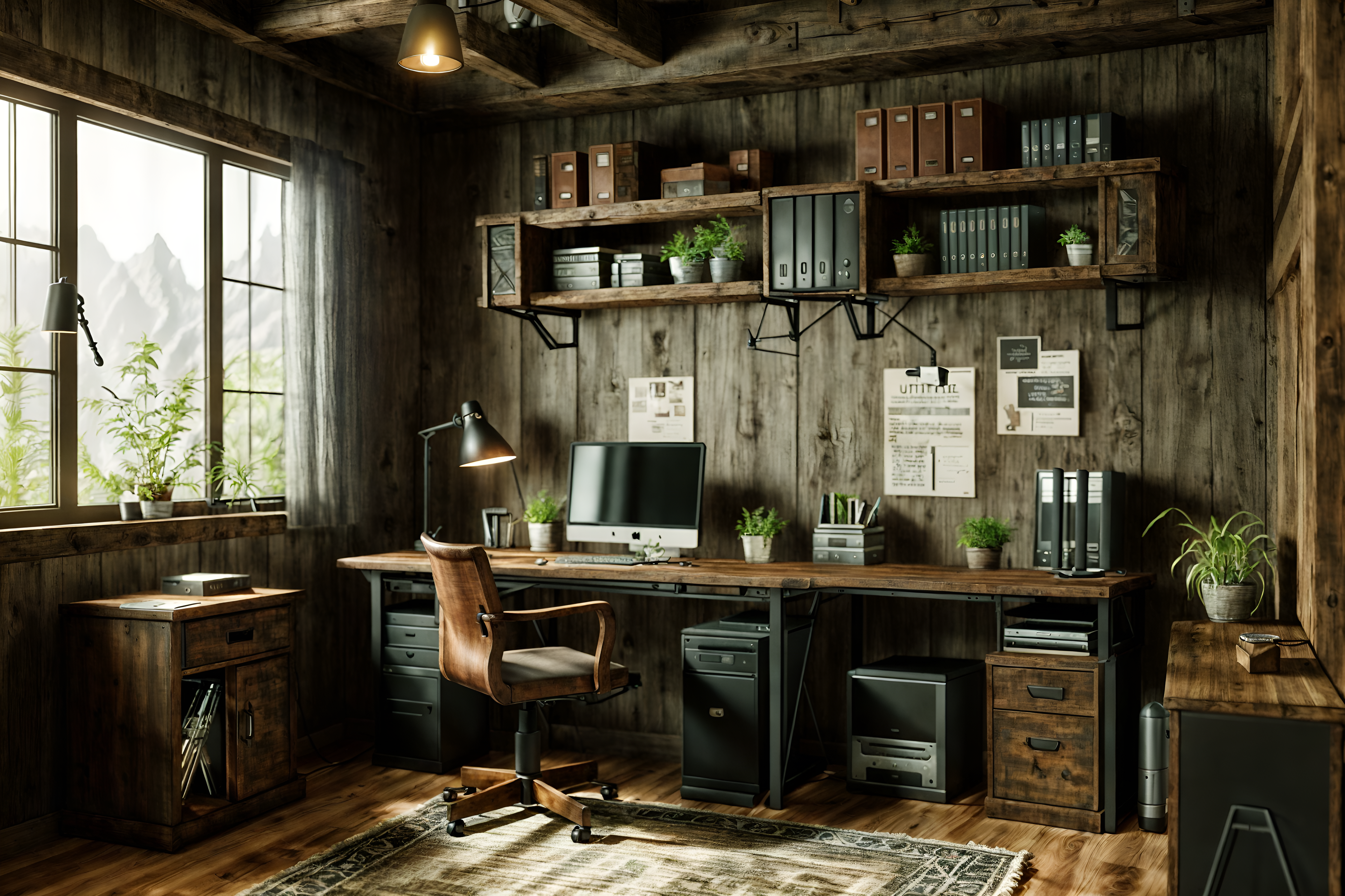 photo from pinterest of rustic-style interior designed (home office interior) with computer desk and office chair and desk lamp and plant and cabinets and computer desk. . with . . cinematic photo, highly detailed, cinematic lighting, ultra-detailed, ultrarealistic, photorealism, 8k. trending on pinterest. rustic interior design style. masterpiece, cinematic light, ultrarealistic+, photorealistic+, 8k, raw photo, realistic, sharp focus on eyes, (symmetrical eyes), (intact eyes), hyperrealistic, highest quality, best quality, , highly detailed, masterpiece, best quality, extremely detailed 8k wallpaper, masterpiece, best quality, ultra-detailed, best shadow, detailed background, detailed face, detailed eyes, high contrast, best illumination, detailed face, dulux, caustic, dynamic angle, detailed glow. dramatic lighting. highly detailed, insanely detailed hair, symmetrical, intricate details, professionally retouched, 8k high definition. strong bokeh. award winning photo.