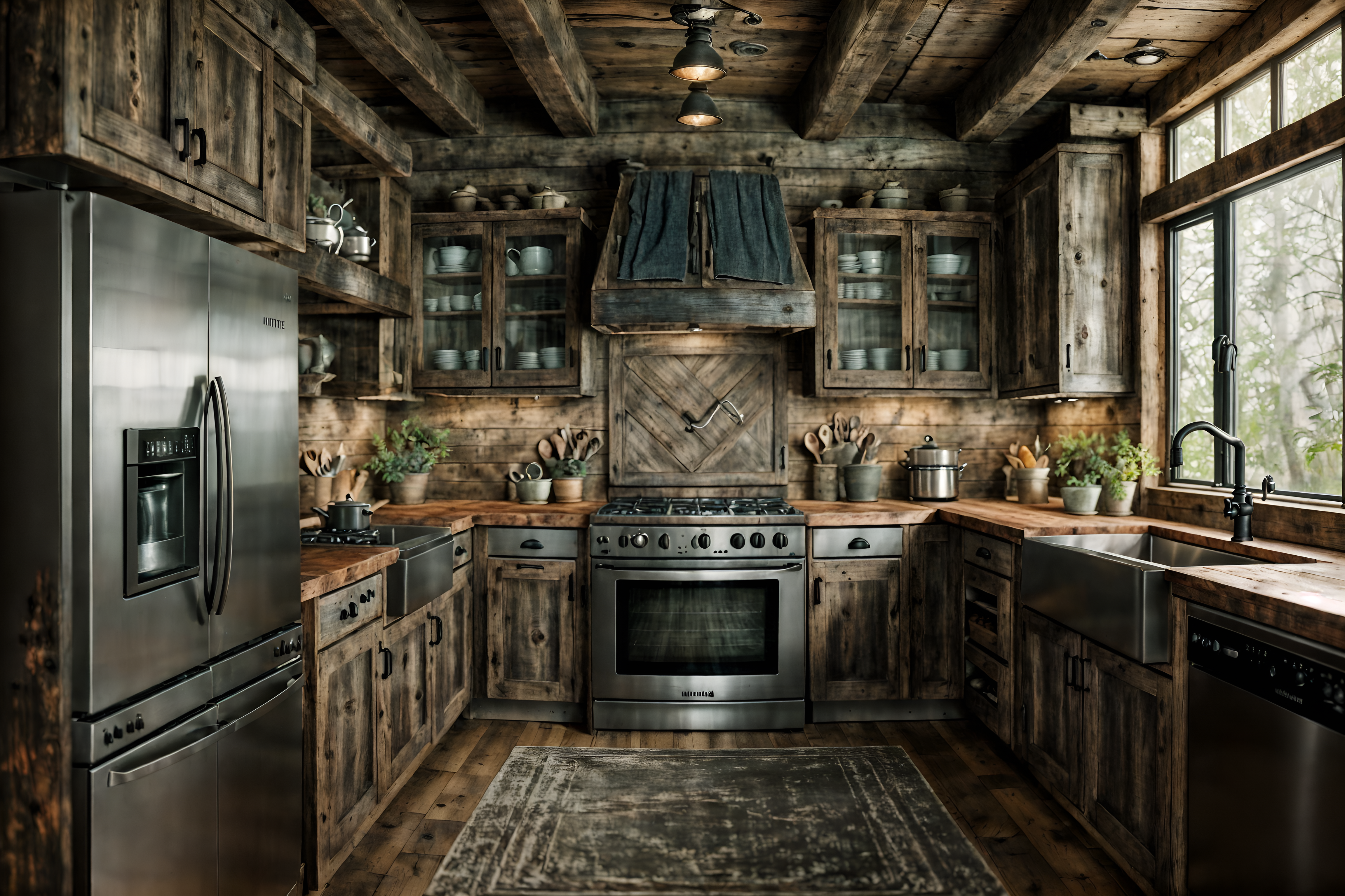 photo from pinterest of rustic-style interior designed (kitchen interior) with plant and worktops and stove and refrigerator and sink and kitchen cabinets and plant. . with . . cinematic photo, highly detailed, cinematic lighting, ultra-detailed, ultrarealistic, photorealism, 8k. trending on pinterest. rustic interior design style. masterpiece, cinematic light, ultrarealistic+, photorealistic+, 8k, raw photo, realistic, sharp focus on eyes, (symmetrical eyes), (intact eyes), hyperrealistic, highest quality, best quality, , highly detailed, masterpiece, best quality, extremely detailed 8k wallpaper, masterpiece, best quality, ultra-detailed, best shadow, detailed background, detailed face, detailed eyes, high contrast, best illumination, detailed face, dulux, caustic, dynamic angle, detailed glow. dramatic lighting. highly detailed, insanely detailed hair, symmetrical, intricate details, professionally retouched, 8k high definition. strong bokeh. award winning photo.