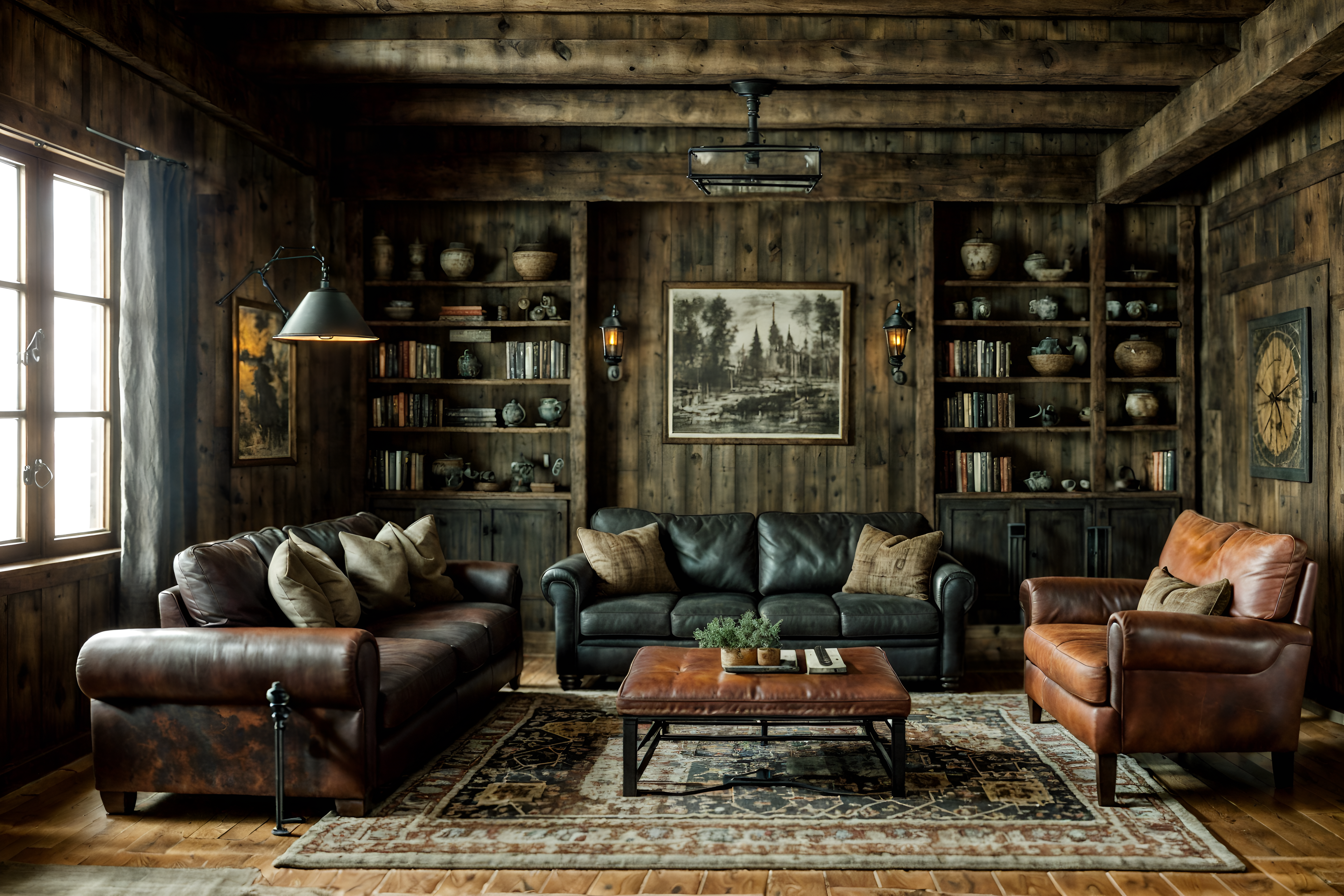photo from pinterest of rustic-style interior designed (living room interior) with sofa and furniture and rug and bookshelves and coffee tables and televisions and chairs and electric lamps. . with . . cinematic photo, highly detailed, cinematic lighting, ultra-detailed, ultrarealistic, photorealism, 8k. trending on pinterest. rustic interior design style. masterpiece, cinematic light, ultrarealistic+, photorealistic+, 8k, raw photo, realistic, sharp focus on eyes, (symmetrical eyes), (intact eyes), hyperrealistic, highest quality, best quality, , highly detailed, masterpiece, best quality, extremely detailed 8k wallpaper, masterpiece, best quality, ultra-detailed, best shadow, detailed background, detailed face, detailed eyes, high contrast, best illumination, detailed face, dulux, caustic, dynamic angle, detailed glow. dramatic lighting. highly detailed, insanely detailed hair, symmetrical, intricate details, professionally retouched, 8k high definition. strong bokeh. award winning photo.