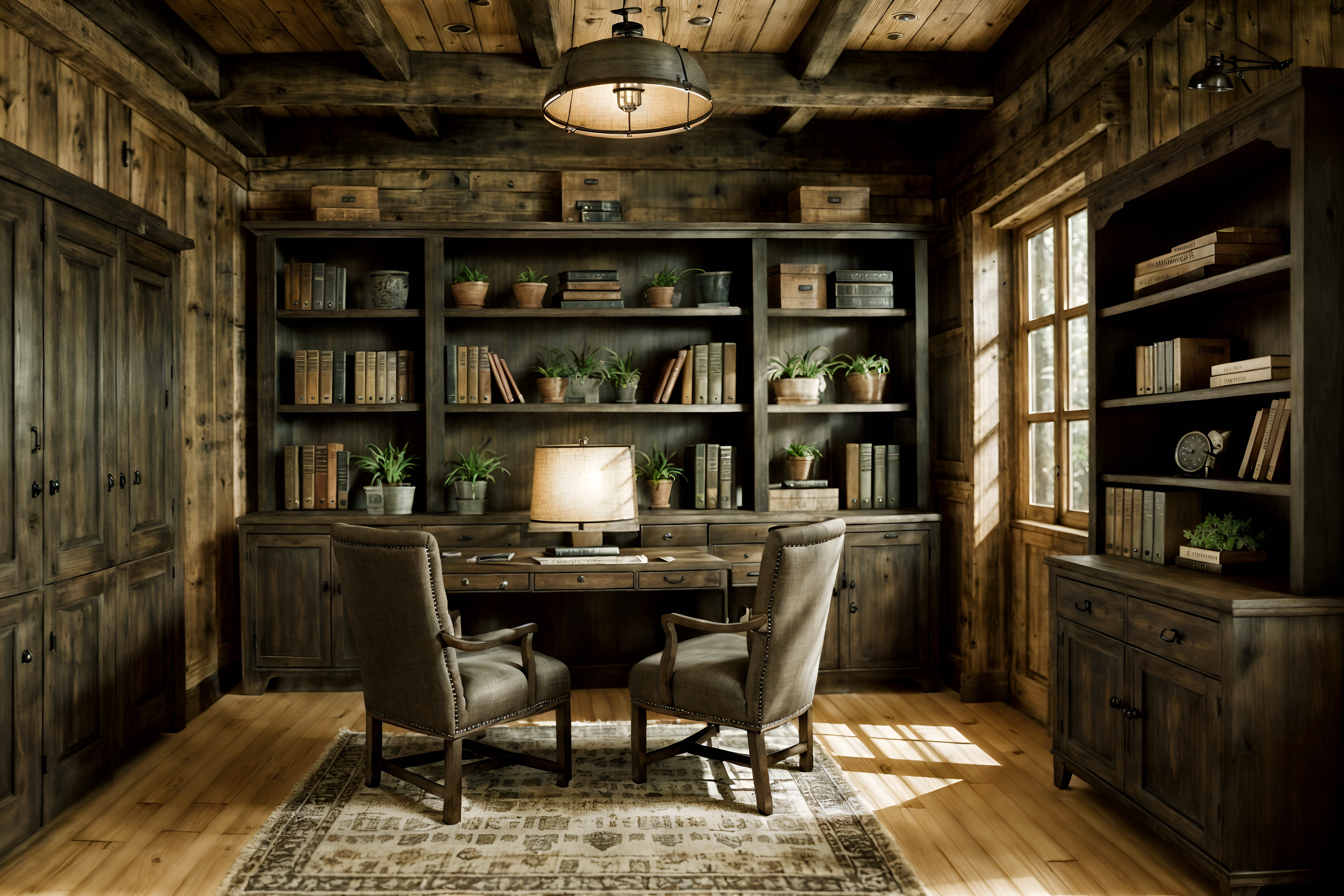photo from pinterest of rustic-style interior designed (study room interior) with office chair and writing desk and cabinets and desk lamp and lounge chair and bookshelves and plant and office chair. . with . . cinematic photo, highly detailed, cinematic lighting, ultra-detailed, ultrarealistic, photorealism, 8k. trending on pinterest. rustic interior design style. masterpiece, cinematic light, ultrarealistic+, photorealistic+, 8k, raw photo, realistic, sharp focus on eyes, (symmetrical eyes), (intact eyes), hyperrealistic, highest quality, best quality, , highly detailed, masterpiece, best quality, extremely detailed 8k wallpaper, masterpiece, best quality, ultra-detailed, best shadow, detailed background, detailed face, detailed eyes, high contrast, best illumination, detailed face, dulux, caustic, dynamic angle, detailed glow. dramatic lighting. highly detailed, insanely detailed hair, symmetrical, intricate details, professionally retouched, 8k high definition. strong bokeh. award winning photo.
