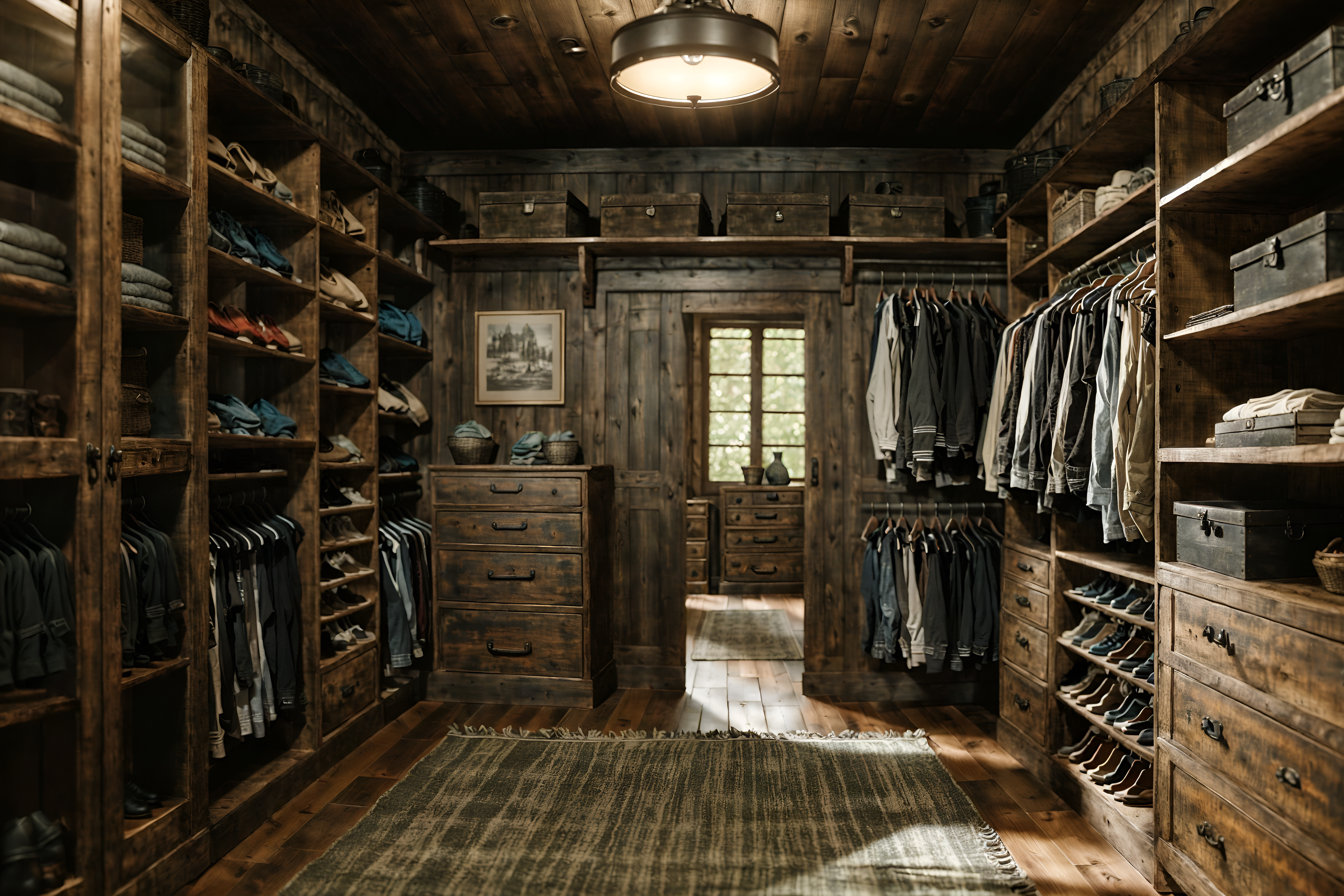 photo from pinterest of rustic-style interior designed (walk in closet interior) . with . . cinematic photo, highly detailed, cinematic lighting, ultra-detailed, ultrarealistic, photorealism, 8k. trending on pinterest. rustic interior design style. masterpiece, cinematic light, ultrarealistic+, photorealistic+, 8k, raw photo, realistic, sharp focus on eyes, (symmetrical eyes), (intact eyes), hyperrealistic, highest quality, best quality, , highly detailed, masterpiece, best quality, extremely detailed 8k wallpaper, masterpiece, best quality, ultra-detailed, best shadow, detailed background, detailed face, detailed eyes, high contrast, best illumination, detailed face, dulux, caustic, dynamic angle, detailed glow. dramatic lighting. highly detailed, insanely detailed hair, symmetrical, intricate details, professionally retouched, 8k high definition. strong bokeh. award winning photo.