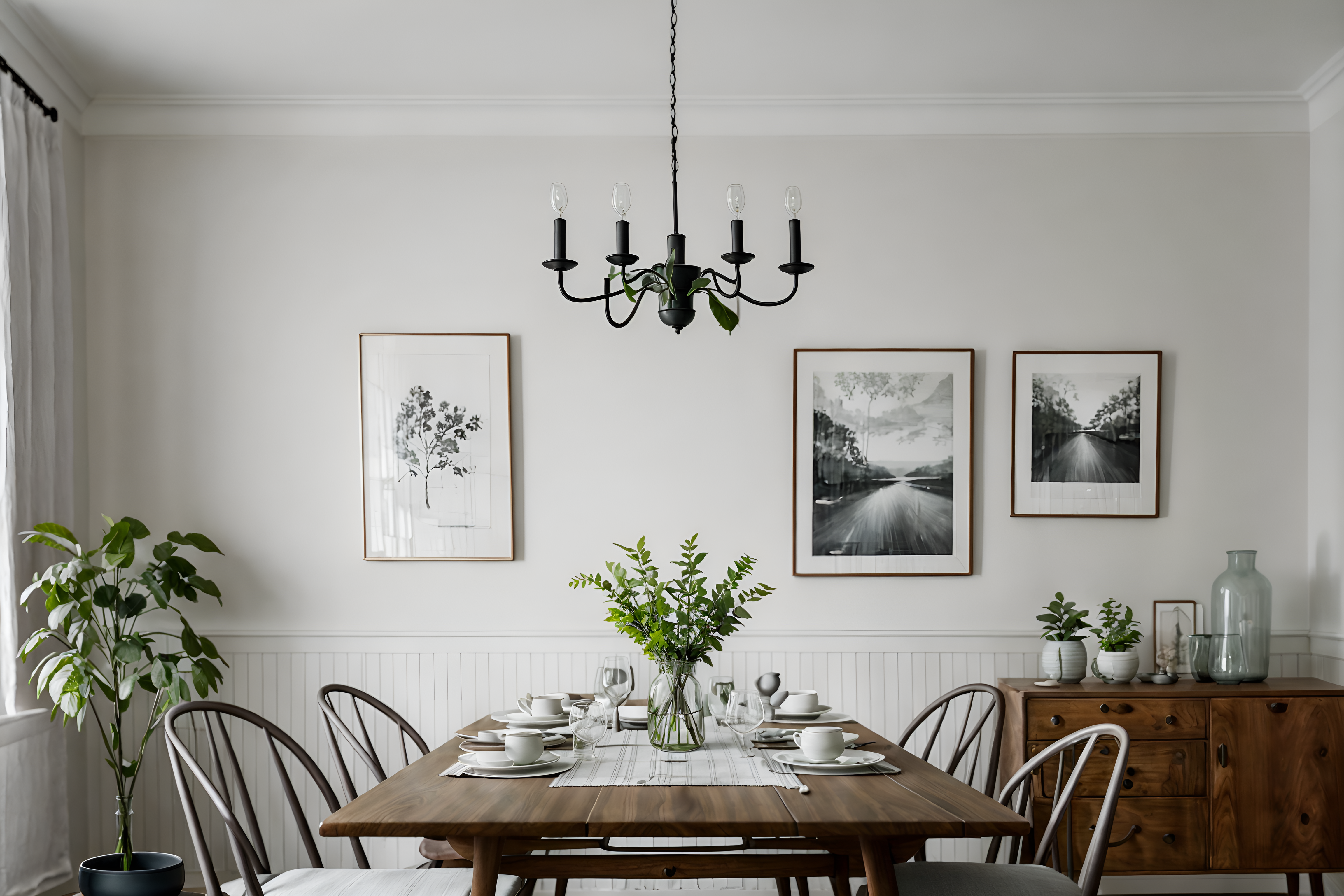 photo from pinterest of scandinavian-style interior designed (dining room interior) with plant and dining table and plates, cutlery and glasses on dining table and dining table chairs and vase and bookshelves and painting or photo on wall and table cloth. . with . . cinematic photo, highly detailed, cinematic lighting, ultra-detailed, ultrarealistic, photorealism, 8k. trending on pinterest. scandinavian interior design style. masterpiece, cinematic light, ultrarealistic+, photorealistic+, 8k, raw photo, realistic, sharp focus on eyes, (symmetrical eyes), (intact eyes), hyperrealistic, highest quality, best quality, , highly detailed, masterpiece, best quality, extremely detailed 8k wallpaper, masterpiece, best quality, ultra-detailed, best shadow, detailed background, detailed face, detailed eyes, high contrast, best illumination, detailed face, dulux, caustic, dynamic angle, detailed glow. dramatic lighting. highly detailed, insanely detailed hair, symmetrical, intricate details, professionally retouched, 8k high definition. strong bokeh. award winning photo.