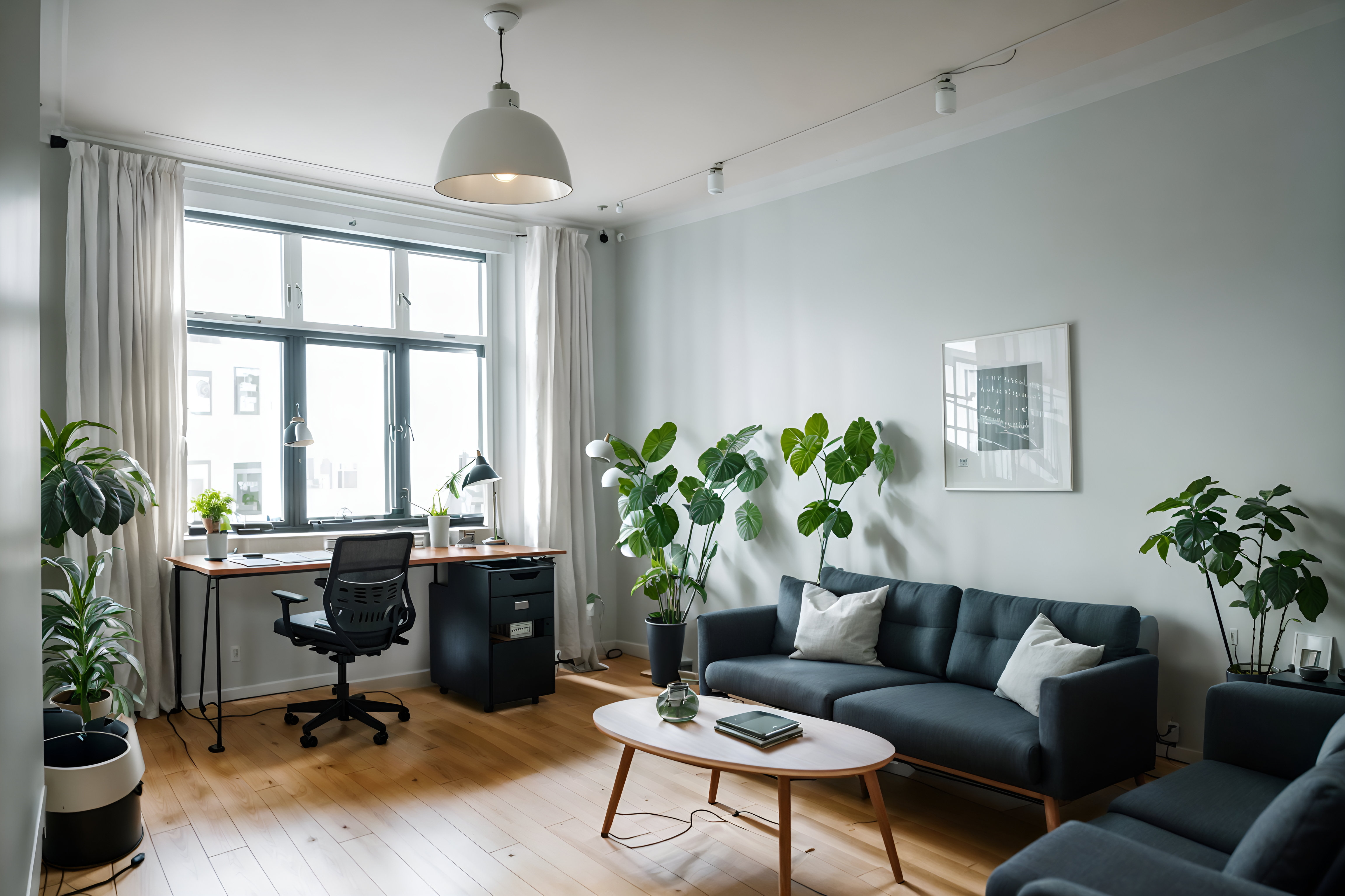 photo from pinterest of scandinavian-style interior designed (office interior) with desk lamps and cabinets and windows and seating area with sofa and office chairs and computer desks and office desks and plants. . with . . cinematic photo, highly detailed, cinematic lighting, ultra-detailed, ultrarealistic, photorealism, 8k. trending on pinterest. scandinavian interior design style. masterpiece, cinematic light, ultrarealistic+, photorealistic+, 8k, raw photo, realistic, sharp focus on eyes, (symmetrical eyes), (intact eyes), hyperrealistic, highest quality, best quality, , highly detailed, masterpiece, best quality, extremely detailed 8k wallpaper, masterpiece, best quality, ultra-detailed, best shadow, detailed background, detailed face, detailed eyes, high contrast, best illumination, detailed face, dulux, caustic, dynamic angle, detailed glow. dramatic lighting. highly detailed, insanely detailed hair, symmetrical, intricate details, professionally retouched, 8k high definition. strong bokeh. award winning photo.
