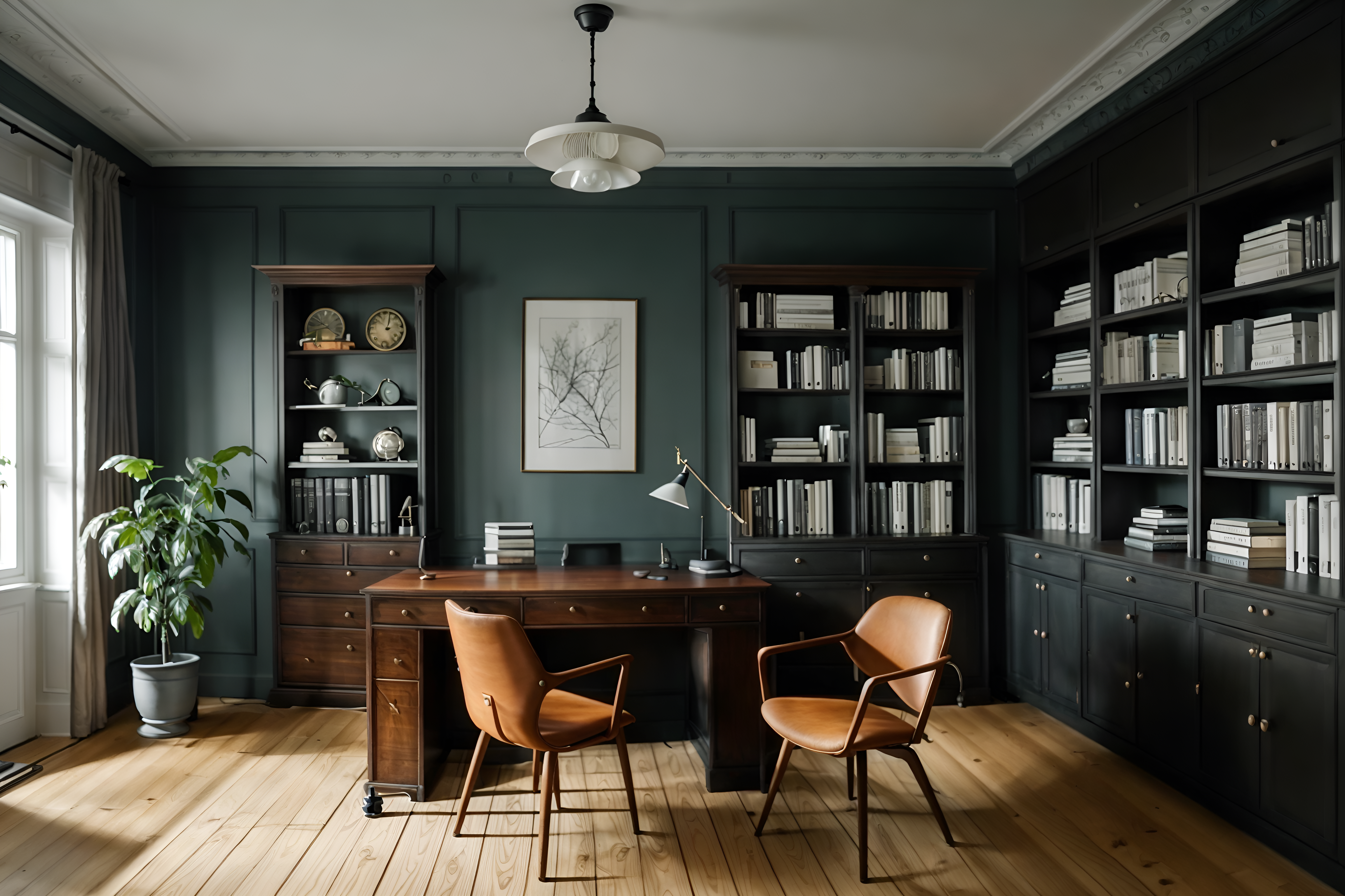 photo from pinterest of scandinavian-style interior designed (study room interior) with cabinets and office chair and plant and writing desk and desk lamp and bookshelves and lounge chair and cabinets. . with . . cinematic photo, highly detailed, cinematic lighting, ultra-detailed, ultrarealistic, photorealism, 8k. trending on pinterest. scandinavian interior design style. masterpiece, cinematic light, ultrarealistic+, photorealistic+, 8k, raw photo, realistic, sharp focus on eyes, (symmetrical eyes), (intact eyes), hyperrealistic, highest quality, best quality, , highly detailed, masterpiece, best quality, extremely detailed 8k wallpaper, masterpiece, best quality, ultra-detailed, best shadow, detailed background, detailed face, detailed eyes, high contrast, best illumination, detailed face, dulux, caustic, dynamic angle, detailed glow. dramatic lighting. highly detailed, insanely detailed hair, symmetrical, intricate details, professionally retouched, 8k high definition. strong bokeh. award winning photo.
