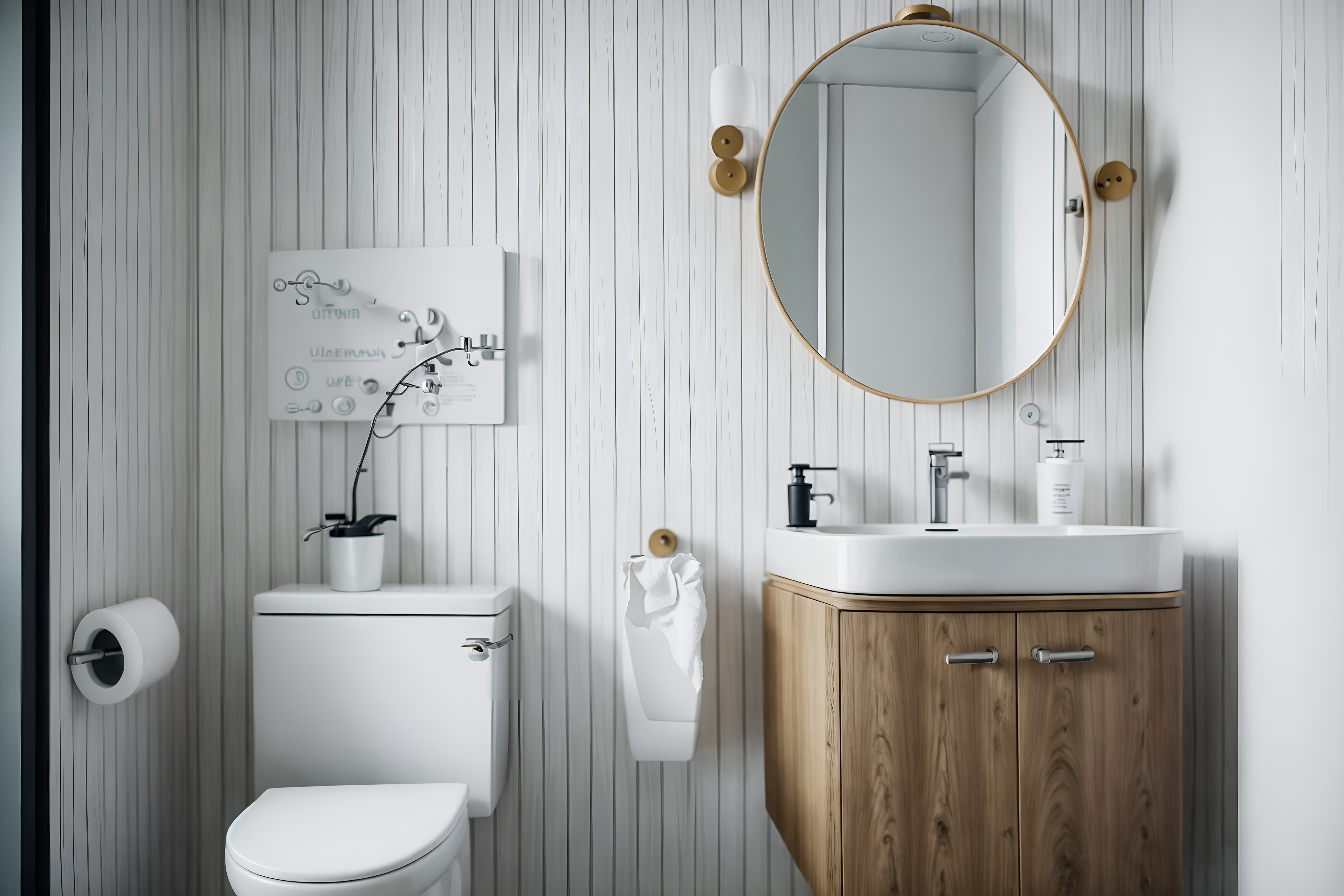 photo from pinterest of scandinavian-style interior designed (toilet interior) with toilet paper hanger and toilet with toilet seat up and sink with tap and toilet paper hanger. . with . . cinematic photo, highly detailed, cinematic lighting, ultra-detailed, ultrarealistic, photorealism, 8k. trending on pinterest. scandinavian interior design style. masterpiece, cinematic light, ultrarealistic+, photorealistic+, 8k, raw photo, realistic, sharp focus on eyes, (symmetrical eyes), (intact eyes), hyperrealistic, highest quality, best quality, , highly detailed, masterpiece, best quality, extremely detailed 8k wallpaper, masterpiece, best quality, ultra-detailed, best shadow, detailed background, detailed face, detailed eyes, high contrast, best illumination, detailed face, dulux, caustic, dynamic angle, detailed glow. dramatic lighting. highly detailed, insanely detailed hair, symmetrical, intricate details, professionally retouched, 8k high definition. strong bokeh. award winning photo.