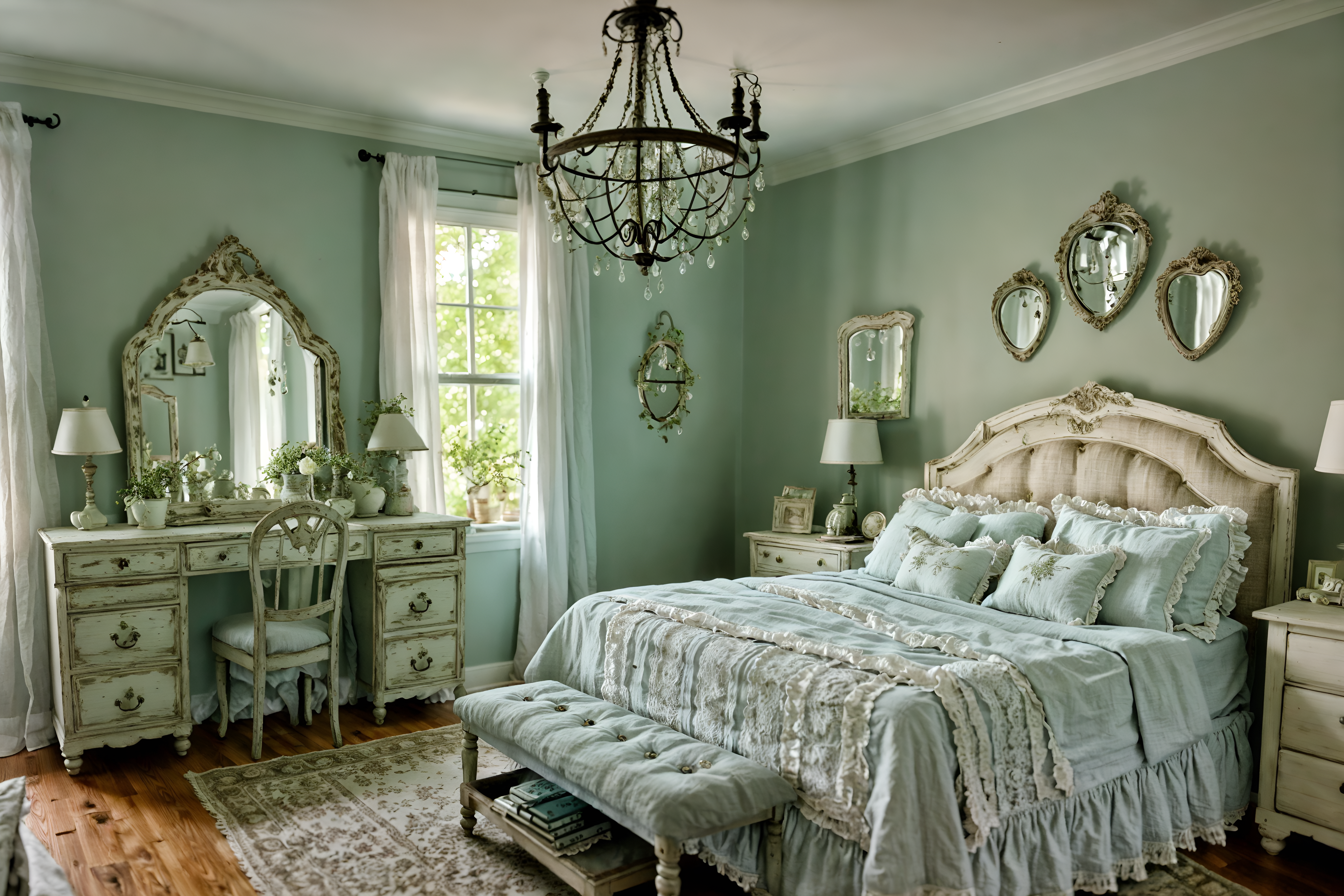 photo from pinterest of shabby chic-style interior designed (bedroom interior) with bedside table or night stand and dresser closet and plant and accent chair and mirror and storage bench or ottoman and night light and headboard cinematic photo, highly detailed, cinematic lighting, ultra-detailed, ultrarealistic, photorealism, 8k. trending on pinterest. shabby chic interior design style. masterpiece, cinematic light, ultrarealistic+, photorealistic+, 8k, raw photo, realistic, sharp focus on eyes, (symmetrical eyes), (intact eyes), hyperrealistic, highest quality, best quality, , highly detailed, masterpiece, best quality, extremely detailed 8k wallpaper, masterpiece, best quality, ultra-detailed, best shadow, detailed background, detailed face, detailed eyes, high contrast, best illumination, detailed face, dulux, caustic, dynamic angle, detailed glow. dramatic lighting. highly detailed, insanely detailed hair, symmetrical, intricate details, professionally retouched, 8k high definition. strong bokeh. award winning photo.