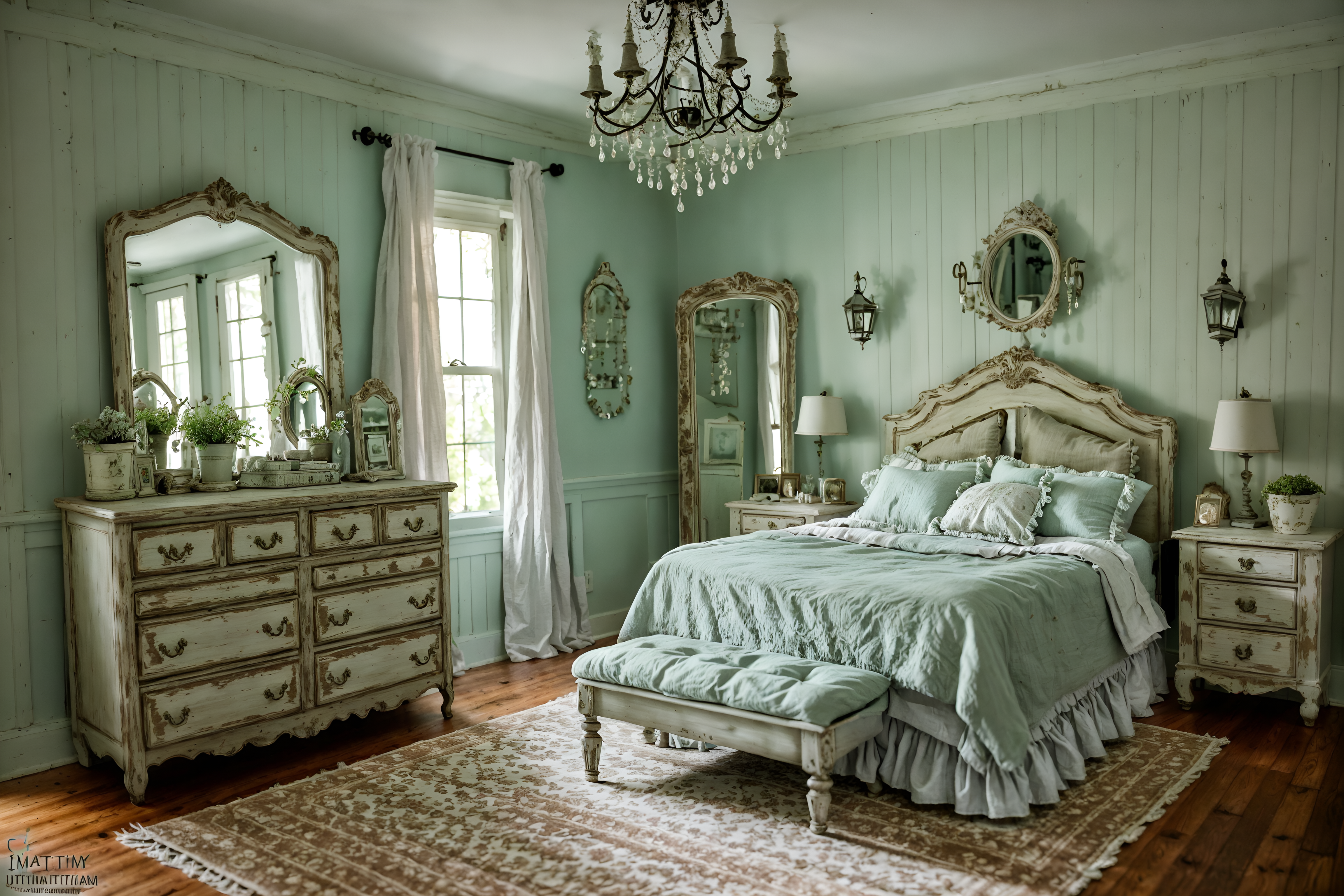 photo from pinterest of shabby chic-style interior designed (bedroom interior) with bedside table or night stand and dresser closet and plant and accent chair and mirror and storage bench or ottoman and night light and headboard cinematic photo, highly detailed, cinematic lighting, ultra-detailed, ultrarealistic, photorealism, 8k. trending on pinterest. shabby chic interior design style. masterpiece, cinematic light, ultrarealistic+, photorealistic+, 8k, raw photo, realistic, sharp focus on eyes, (symmetrical eyes), (intact eyes), hyperrealistic, highest quality, best quality, , highly detailed, masterpiece, best quality, extremely detailed 8k wallpaper, masterpiece, best quality, ultra-detailed, best shadow, detailed background, detailed face, detailed eyes, high contrast, best illumination, detailed face, dulux, caustic, dynamic angle, detailed glow. dramatic lighting. highly detailed, insanely detailed hair, symmetrical, intricate details, professionally retouched, 8k high definition. strong bokeh. award winning photo.