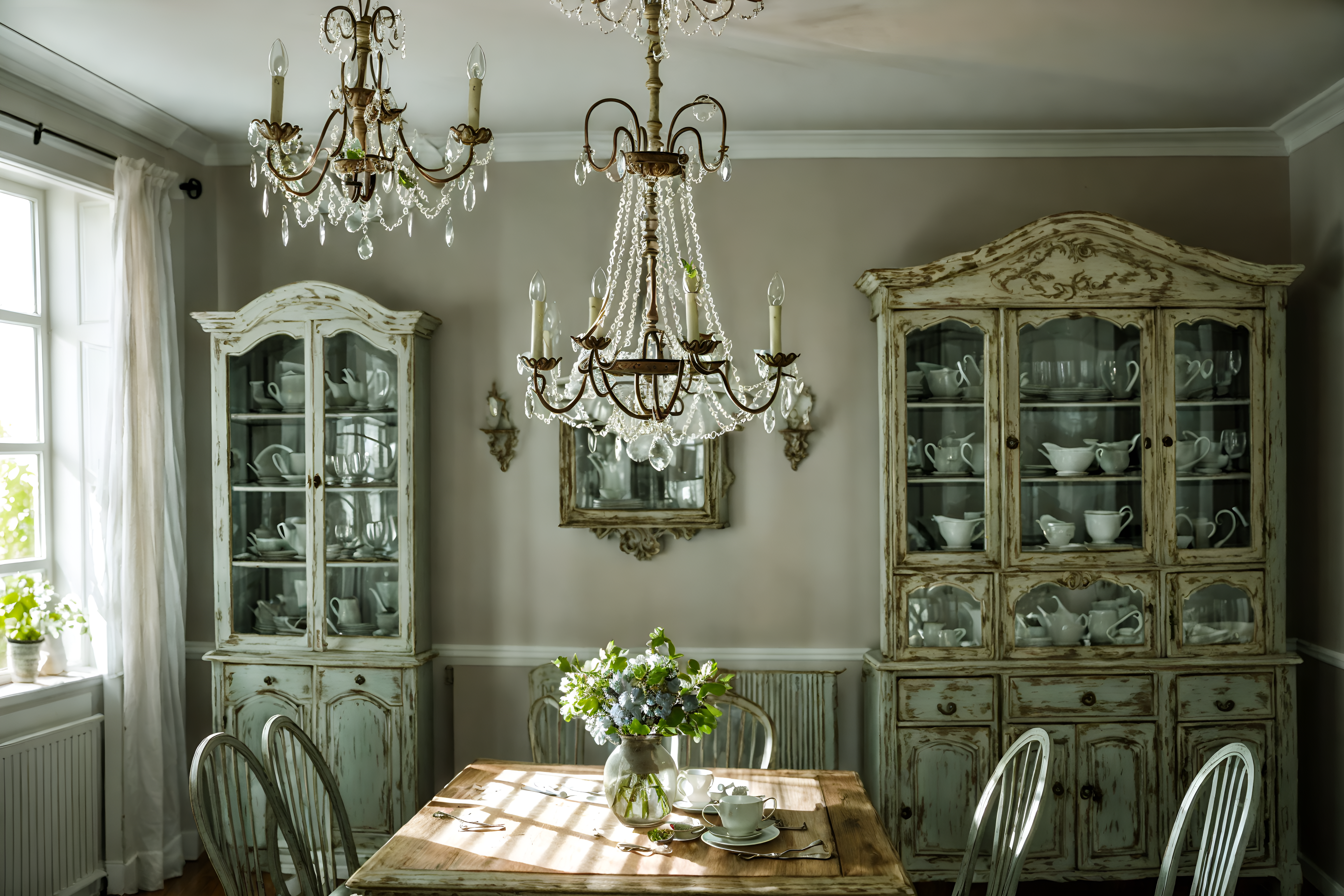 photo from pinterest of shabby chic-style interior designed (dining room interior) with light or chandelier and plates, cutlery and glasses on dining table and bookshelves and dining table and dining table chairs and plant and painting or photo on wall and vase cinematic photo, highly detailed, cinematic lighting, ultra-detailed, ultrarealistic, photorealism, 8k. trending on pinterest. shabby chic interior design style. masterpiece, cinematic light, ultrarealistic+, photorealistic+, 8k, raw photo, realistic, sharp focus on eyes, (symmetrical eyes), (intact eyes), hyperrealistic, highest quality, best quality, , highly detailed, masterpiece, best quality, extremely detailed 8k wallpaper, masterpiece, best quality, ultra-detailed, best shadow, detailed background, detailed face, detailed eyes, high contrast, best illumination, detailed face, dulux, caustic, dynamic angle, detailed glow. dramatic lighting. highly detailed, insanely detailed hair, symmetrical, intricate details, professionally retouched, 8k high definition. strong bokeh. award winning photo.