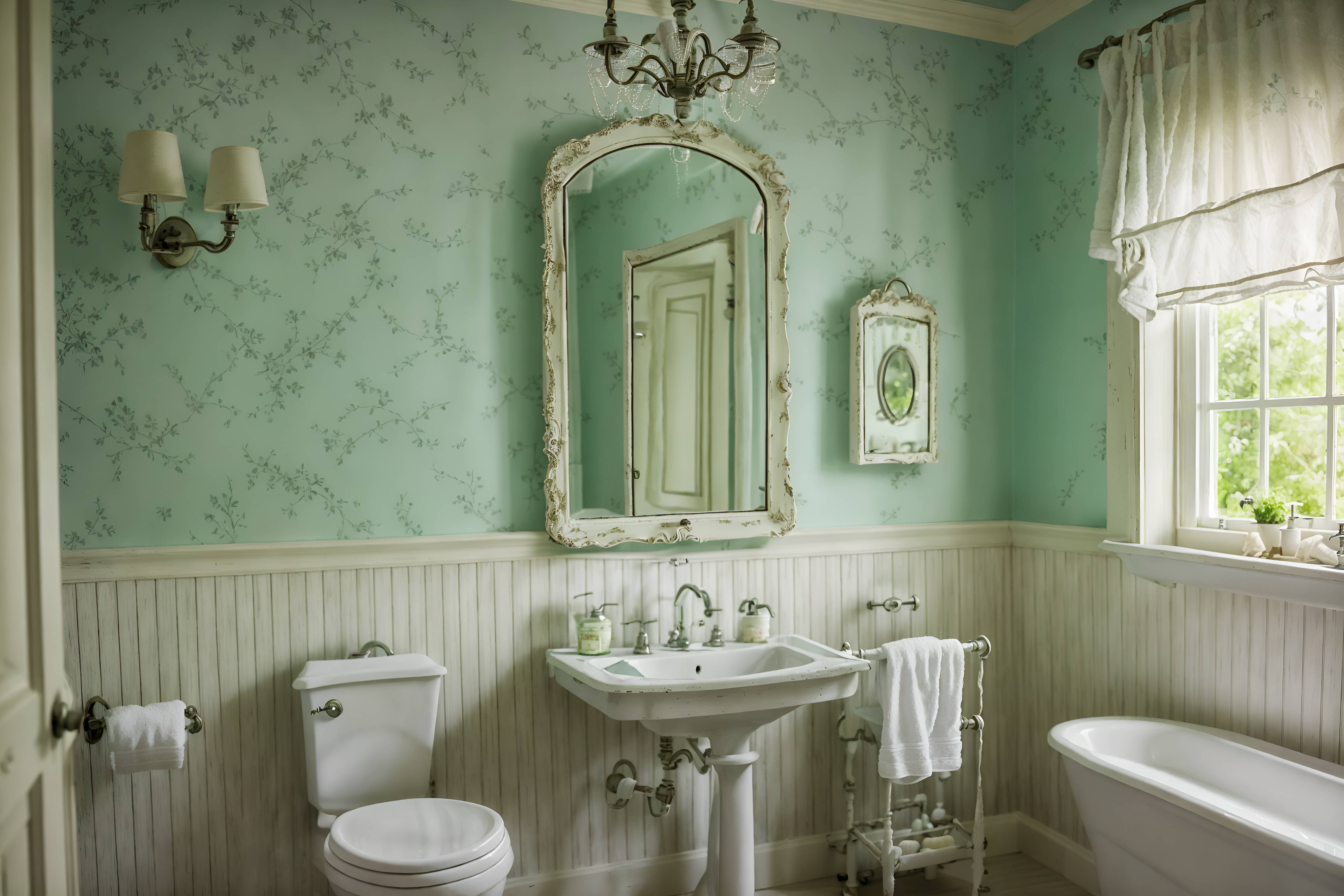 photo from pinterest of shabby chic-style interior designed (hotel bathroom interior) with toilet seat and bathroom sink with faucet and waste basket and shower and bath rail and bathroom cabinet and bathtub and mirror cinematic photo, highly detailed, cinematic lighting, ultra-detailed, ultrarealistic, photorealism, 8k. trending on pinterest. shabby chic interior design style. masterpiece, cinematic light, ultrarealistic+, photorealistic+, 8k, raw photo, realistic, sharp focus on eyes, (symmetrical eyes), (intact eyes), hyperrealistic, highest quality, best quality, , highly detailed, masterpiece, best quality, extremely detailed 8k wallpaper, masterpiece, best quality, ultra-detailed, best shadow, detailed background, detailed face, detailed eyes, high contrast, best illumination, detailed face, dulux, caustic, dynamic angle, detailed glow. dramatic lighting. highly detailed, insanely detailed hair, symmetrical, intricate details, professionally retouched, 8k high definition. strong bokeh. award winning photo.