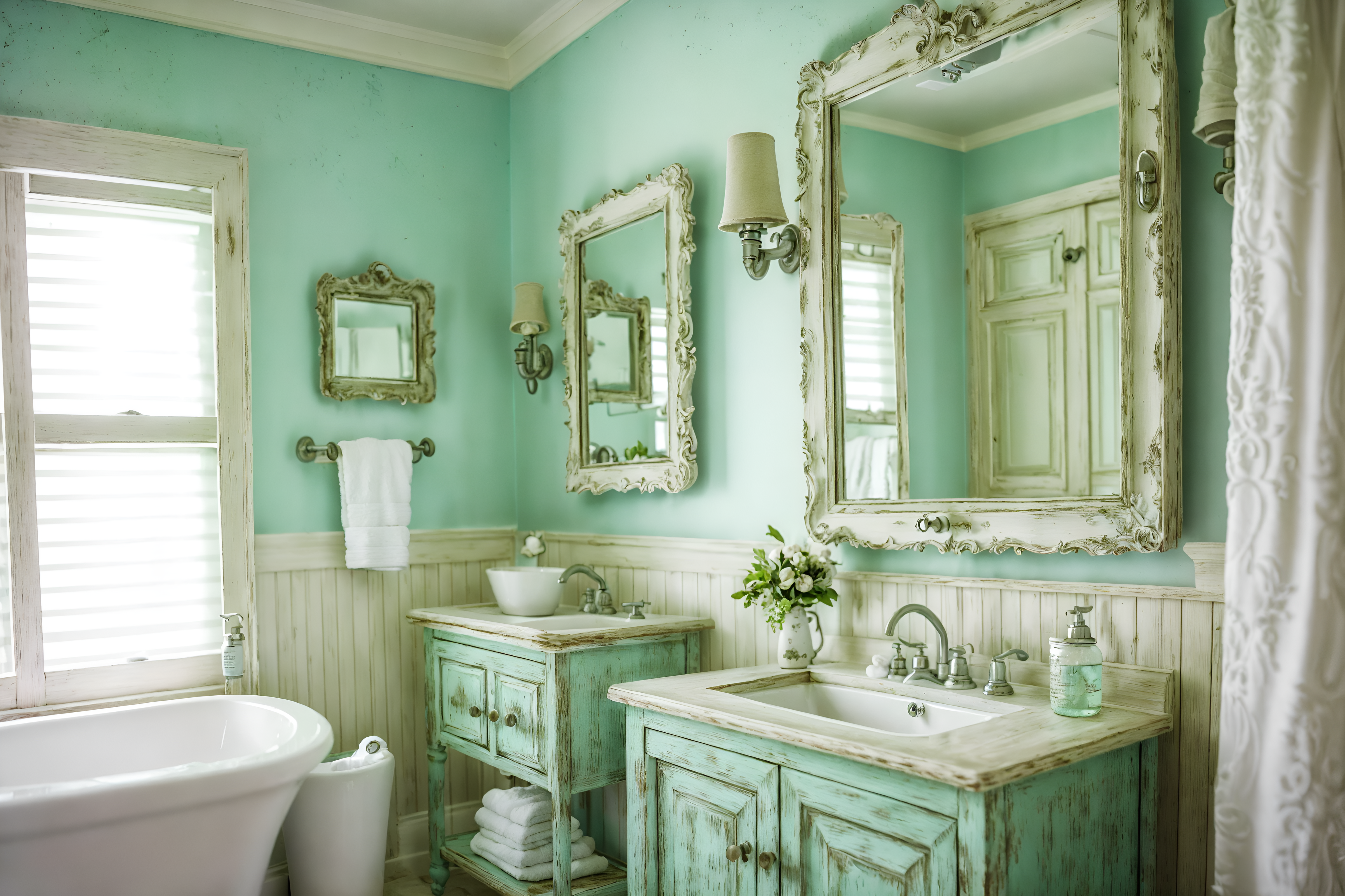 photo from pinterest of shabby chic-style interior designed (hotel bathroom interior) with toilet seat and bathroom sink with faucet and waste basket and shower and bath rail and bathroom cabinet and bathtub and mirror cinematic photo, highly detailed, cinematic lighting, ultra-detailed, ultrarealistic, photorealism, 8k. trending on pinterest. shabby chic interior design style. masterpiece, cinematic light, ultrarealistic+, photorealistic+, 8k, raw photo, realistic, sharp focus on eyes, (symmetrical eyes), (intact eyes), hyperrealistic, highest quality, best quality, , highly detailed, masterpiece, best quality, extremely detailed 8k wallpaper, masterpiece, best quality, ultra-detailed, best shadow, detailed background, detailed face, detailed eyes, high contrast, best illumination, detailed face, dulux, caustic, dynamic angle, detailed glow. dramatic lighting. highly detailed, insanely detailed hair, symmetrical, intricate details, professionally retouched, 8k high definition. strong bokeh. award winning photo.