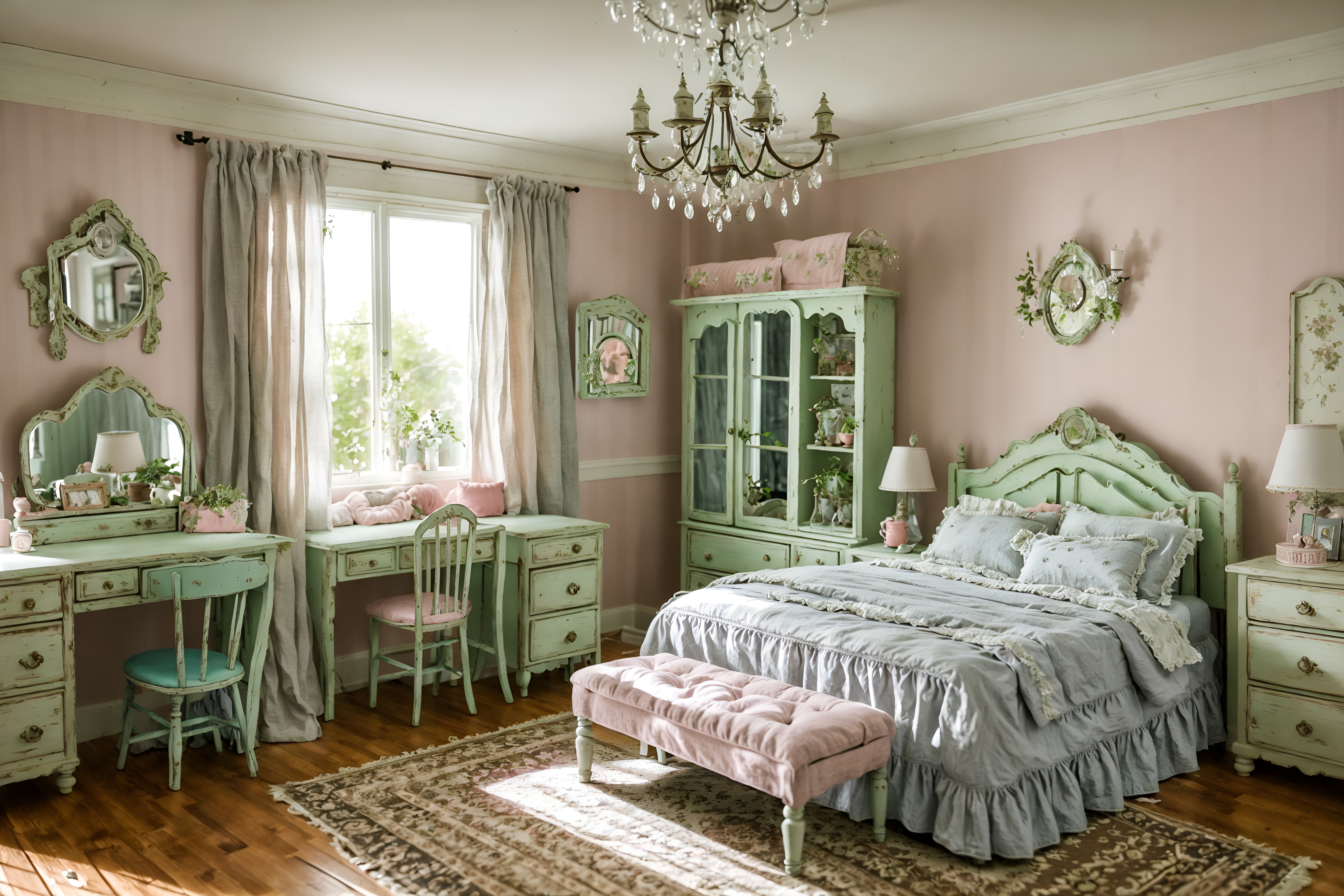 photo from pinterest of shabby chic-style interior designed (kids room interior) with mirror and bed and plant and headboard and night light and accent chair and storage bench or ottoman and kids desk cinematic photo, highly detailed, cinematic lighting, ultra-detailed, ultrarealistic, photorealism, 8k. trending on pinterest. shabby chic interior design style. masterpiece, cinematic light, ultrarealistic+, photorealistic+, 8k, raw photo, realistic, sharp focus on eyes, (symmetrical eyes), (intact eyes), hyperrealistic, highest quality, best quality, , highly detailed, masterpiece, best quality, extremely detailed 8k wallpaper, masterpiece, best quality, ultra-detailed, best shadow, detailed background, detailed face, detailed eyes, high contrast, best illumination, detailed face, dulux, caustic, dynamic angle, detailed glow. dramatic lighting. highly detailed, insanely detailed hair, symmetrical, intricate details, professionally retouched, 8k high definition. strong bokeh. award winning photo.