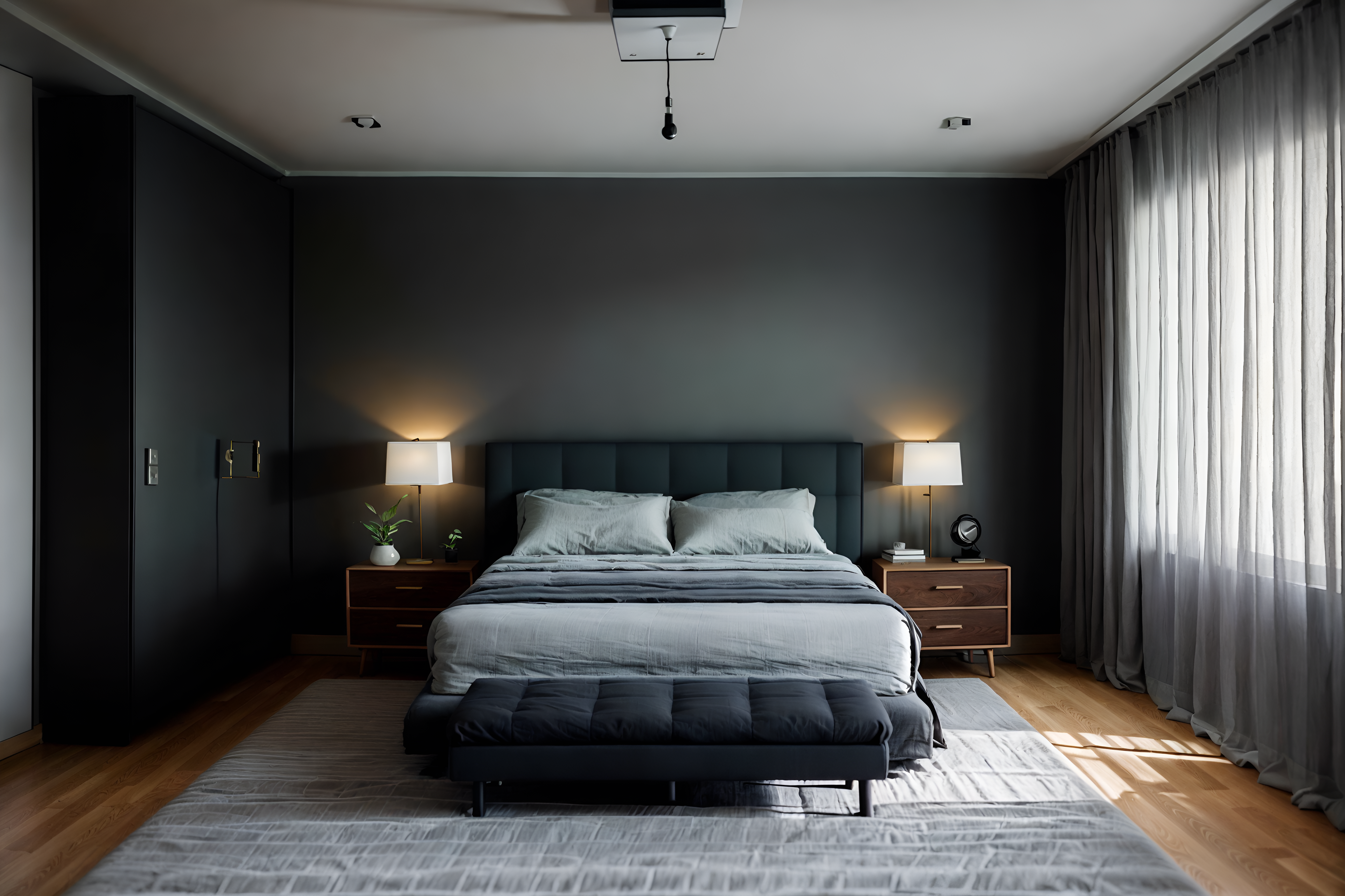 photo from pinterest of simple-style interior designed (bedroom interior) with mirror and bedside table or night stand and plant and accent chair and bed and night light and storage bench or ottoman and dresser closet cinematic photo, highly detailed, cinematic lighting, ultra-detailed, ultrarealistic, photorealism, 8k. trending on pinterest. simple interior design style. masterpiece, cinematic light, ultrarealistic+, photorealistic+, 8k, raw photo, realistic, sharp focus on eyes, (symmetrical eyes), (intact eyes), hyperrealistic, highest quality, best quality, , highly detailed, masterpiece, best quality, extremely detailed 8k wallpaper, masterpiece, best quality, ultra-detailed, best shadow, detailed background, detailed face, detailed eyes, high contrast, best illumination, detailed face, dulux, caustic, dynamic angle, detailed glow. dramatic lighting. highly detailed, insanely detailed hair, symmetrical, intricate details, professionally retouched, 8k high definition. strong bokeh. award winning photo.
