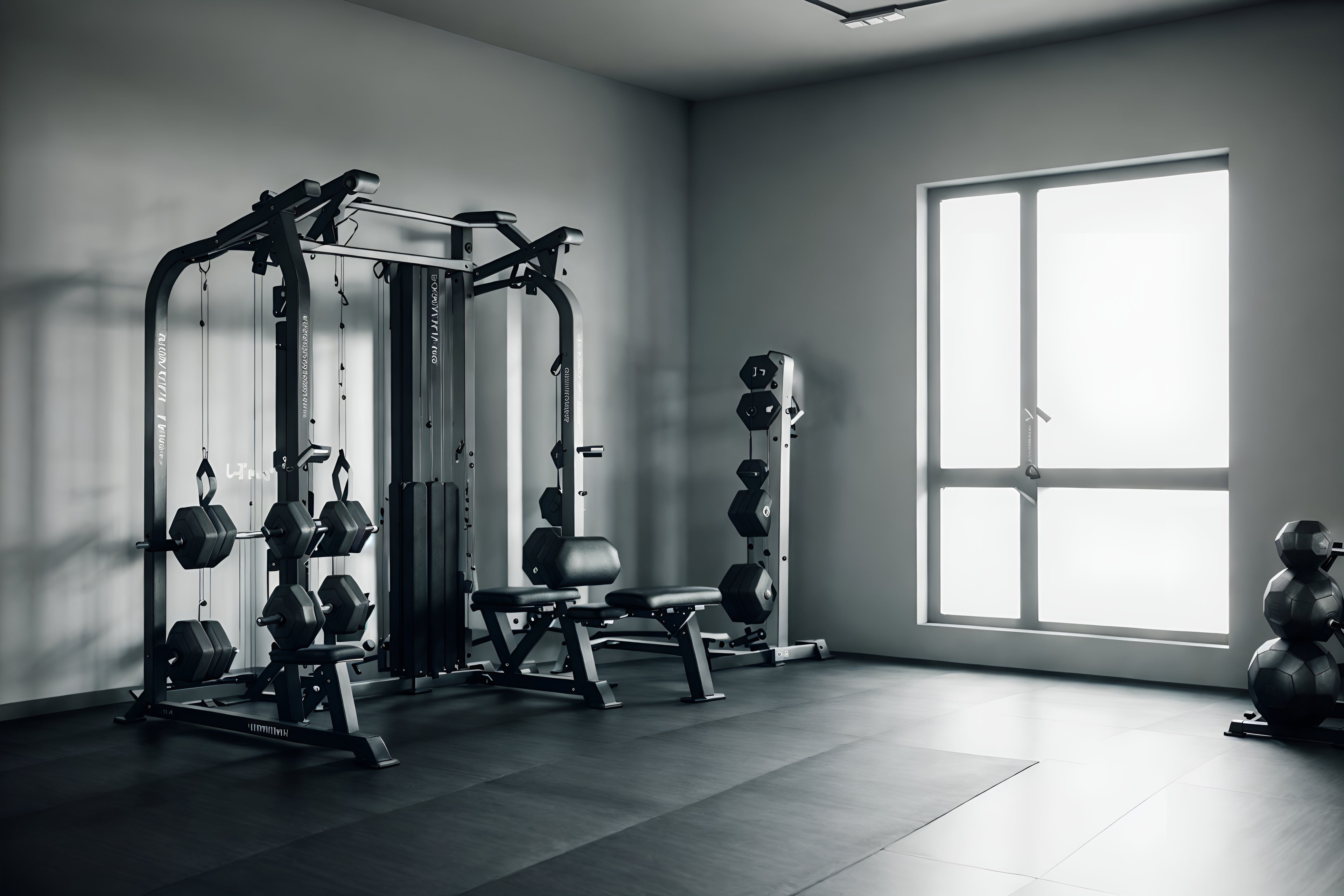 photo from pinterest of simple-style interior designed (fitness gym interior) with dumbbell stand and bench press and squat rack and crosstrainer and exercise bicycle and dumbbell stand cinematic photo, highly detailed, cinematic lighting, ultra-detailed, ultrarealistic, photorealism, 8k. trending on pinterest. simple interior design style. masterpiece, cinematic light, ultrarealistic+, photorealistic+, 8k, raw photo, realistic, sharp focus on eyes, (symmetrical eyes), (intact eyes), hyperrealistic, highest quality, best quality, , highly detailed, masterpiece, best quality, extremely detailed 8k wallpaper, masterpiece, best quality, ultra-detailed, best shadow, detailed background, detailed face, detailed eyes, high contrast, best illumination, detailed face, dulux, caustic, dynamic angle, detailed glow. dramatic lighting. highly detailed, insanely detailed hair, symmetrical, intricate details, professionally retouched, 8k high definition. strong bokeh. award winning photo.