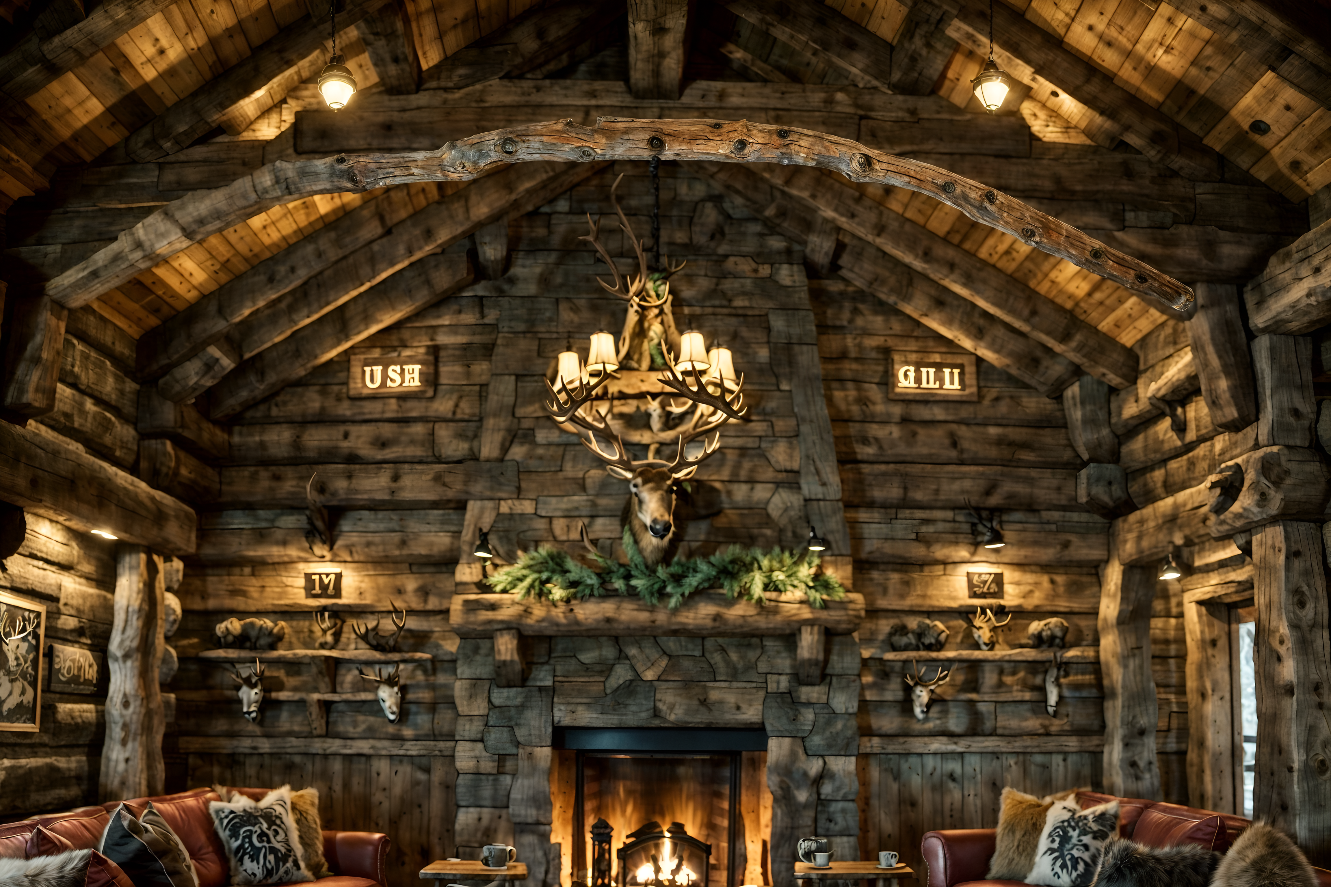 photo from pinterest of ski chalet-style interior designed (coffee shop interior) . with wood beams and stone fireplace and ski-themed decor and wooden walls and animal motifs and hanging wall elk antler and wooden logs and animal furs. . cinematic photo, highly detailed, cinematic lighting, ultra-detailed, ultrarealistic, photorealism, 8k. trending on pinterest. ski chalet interior design style. masterpiece, cinematic light, ultrarealistic+, photorealistic+, 8k, raw photo, realistic, sharp focus on eyes, (symmetrical eyes), (intact eyes), hyperrealistic, highest quality, best quality, , highly detailed, masterpiece, best quality, extremely detailed 8k wallpaper, masterpiece, best quality, ultra-detailed, best shadow, detailed background, detailed face, detailed eyes, high contrast, best illumination, detailed face, dulux, caustic, dynamic angle, detailed glow. dramatic lighting. highly detailed, insanely detailed hair, symmetrical, intricate details, professionally retouched, 8k high definition. strong bokeh. award winning photo.