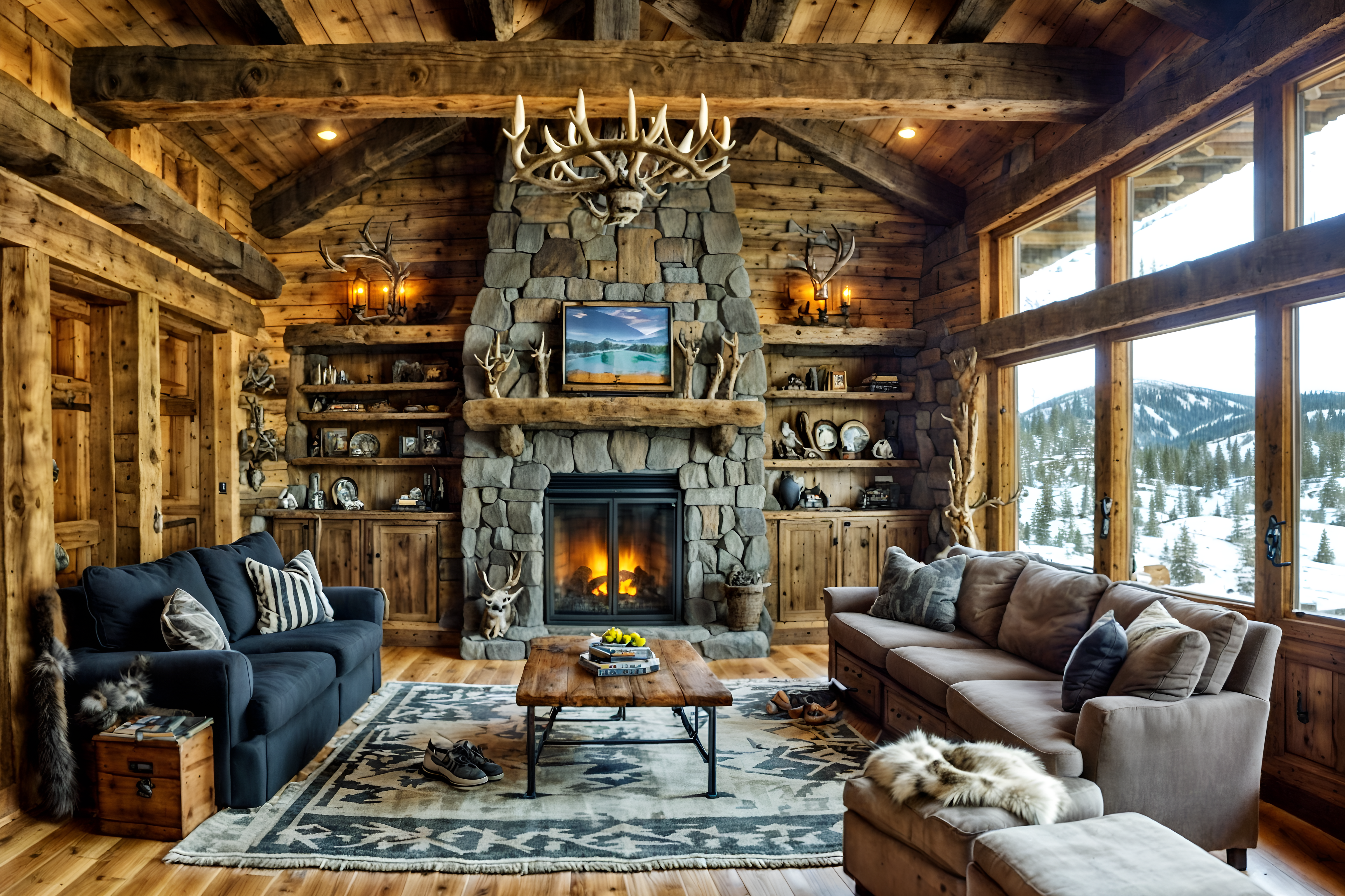 photo from pinterest of ski chalet-style interior designed (drop zone interior) with high up storage and wall hooks for coats and a bench and shelves for shoes and cabinets and cubbies and storage drawers and storage baskets. . with exposed construction beams and stone fireplace and animal furs and hanging wall elk antler and nature-inspired and exposed wood and wood beams and animal rugs. . cinematic photo, highly detailed, cinematic lighting, ultra-detailed, ultrarealistic, photorealism, 8k. trending on pinterest. ski chalet interior design style. masterpiece, cinematic light, ultrarealistic+, photorealistic+, 8k, raw photo, realistic, sharp focus on eyes, (symmetrical eyes), (intact eyes), hyperrealistic, highest quality, best quality, , highly detailed, masterpiece, best quality, extremely detailed 8k wallpaper, masterpiece, best quality, ultra-detailed, best shadow, detailed background, detailed face, detailed eyes, high contrast, best illumination, detailed face, dulux, caustic, dynamic angle, detailed glow. dramatic lighting. highly detailed, insanely detailed hair, symmetrical, intricate details, professionally retouched, 8k high definition. strong bokeh. award winning photo.