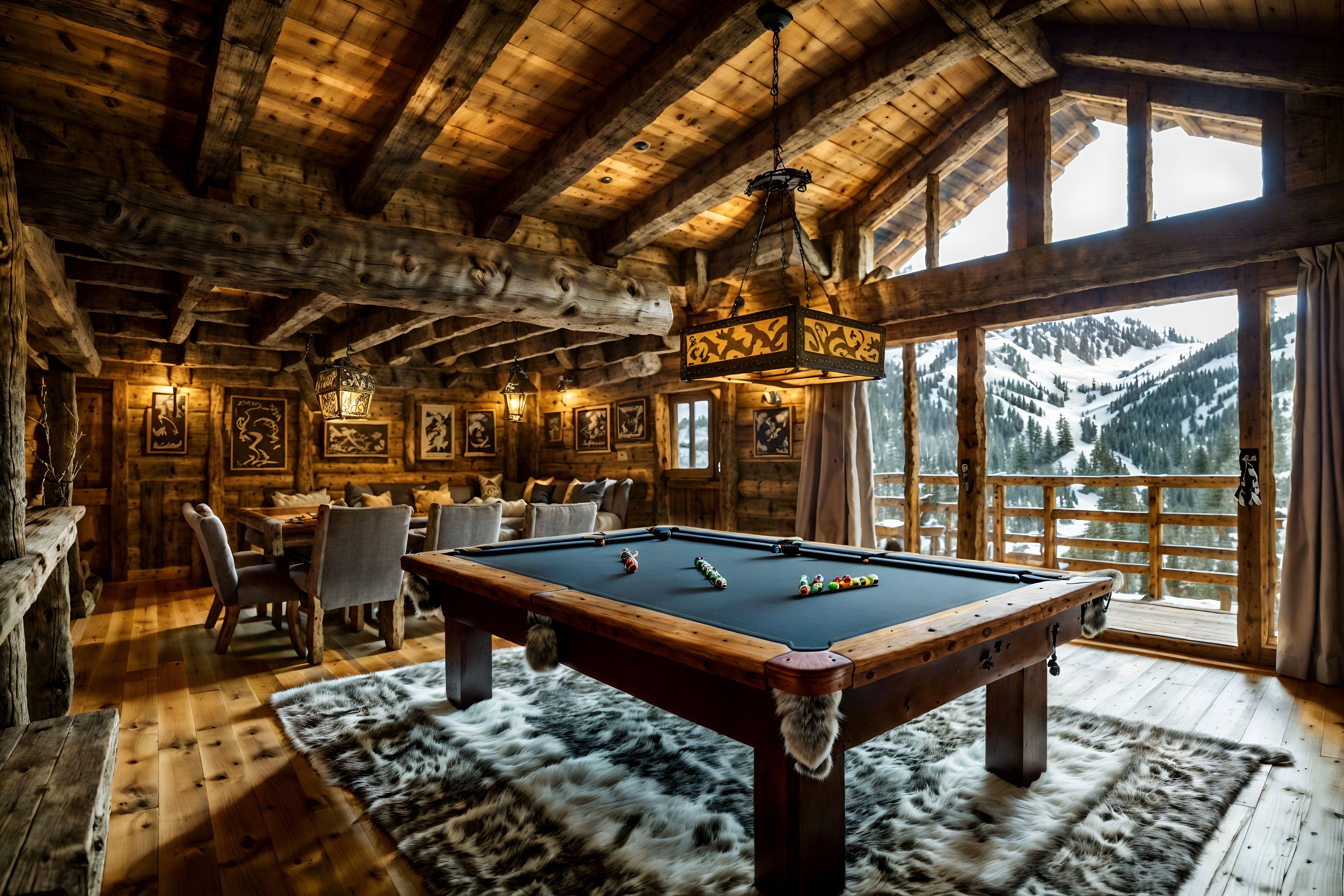 photo from pinterest of ski chalet-style interior designed (gaming room interior) . with animal furs and animal motifs and nature-inspired and exposed timber and wood beams and wooden walls and rustic and richly patterned fabrics. . cinematic photo, highly detailed, cinematic lighting, ultra-detailed, ultrarealistic, photorealism, 8k. trending on pinterest. ski chalet interior design style. masterpiece, cinematic light, ultrarealistic+, photorealistic+, 8k, raw photo, realistic, sharp focus on eyes, (symmetrical eyes), (intact eyes), hyperrealistic, highest quality, best quality, , highly detailed, masterpiece, best quality, extremely detailed 8k wallpaper, masterpiece, best quality, ultra-detailed, best shadow, detailed background, detailed face, detailed eyes, high contrast, best illumination, detailed face, dulux, caustic, dynamic angle, detailed glow. dramatic lighting. highly detailed, insanely detailed hair, symmetrical, intricate details, professionally retouched, 8k high definition. strong bokeh. award winning photo.