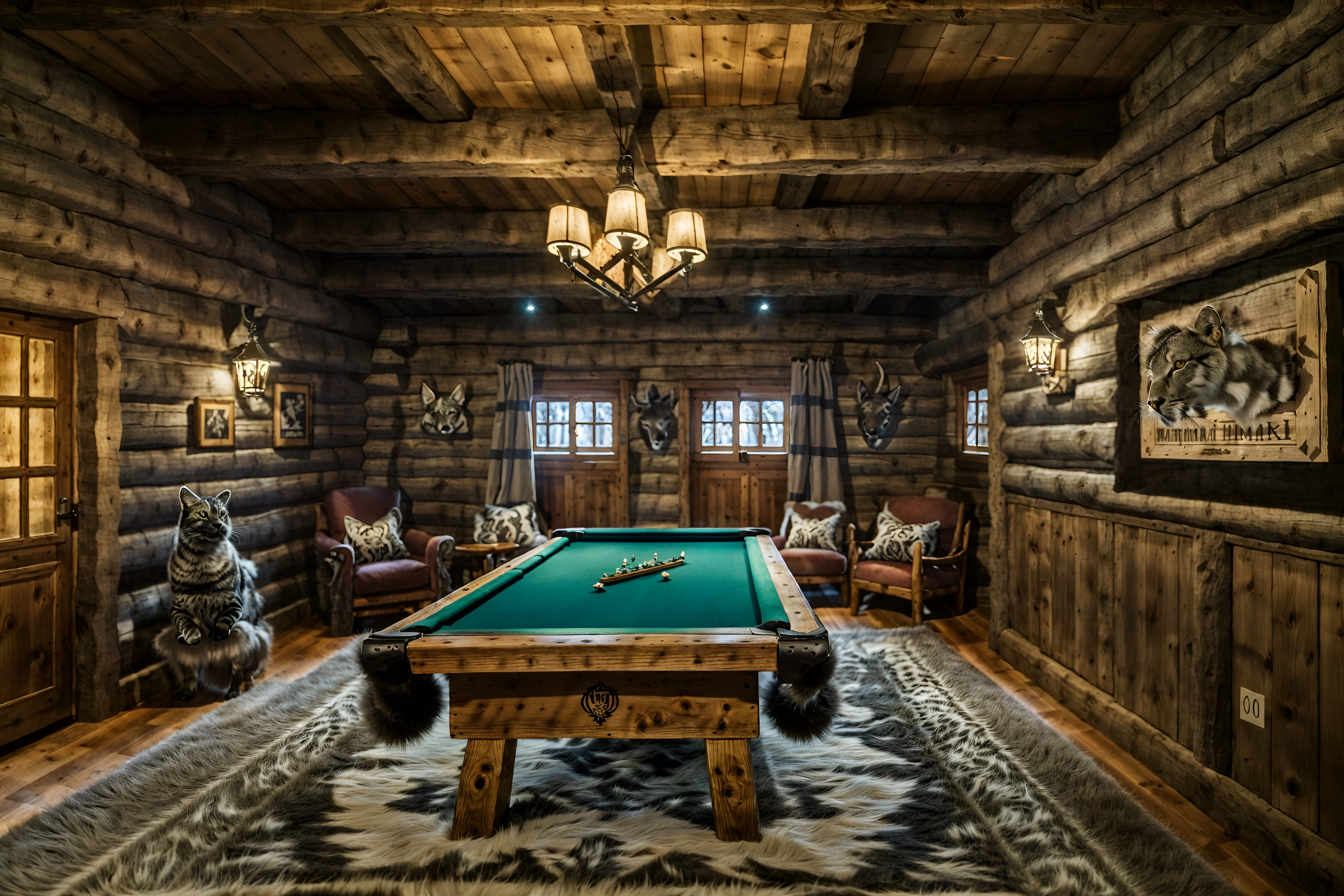 photo from pinterest of ski chalet-style interior designed (gaming room interior) . with animal furs and animal motifs and nature-inspired and exposed timber and wood beams and wooden walls and rustic and richly patterned fabrics. . cinematic photo, highly detailed, cinematic lighting, ultra-detailed, ultrarealistic, photorealism, 8k. trending on pinterest. ski chalet interior design style. masterpiece, cinematic light, ultrarealistic+, photorealistic+, 8k, raw photo, realistic, sharp focus on eyes, (symmetrical eyes), (intact eyes), hyperrealistic, highest quality, best quality, , highly detailed, masterpiece, best quality, extremely detailed 8k wallpaper, masterpiece, best quality, ultra-detailed, best shadow, detailed background, detailed face, detailed eyes, high contrast, best illumination, detailed face, dulux, caustic, dynamic angle, detailed glow. dramatic lighting. highly detailed, insanely detailed hair, symmetrical, intricate details, professionally retouched, 8k high definition. strong bokeh. award winning photo.