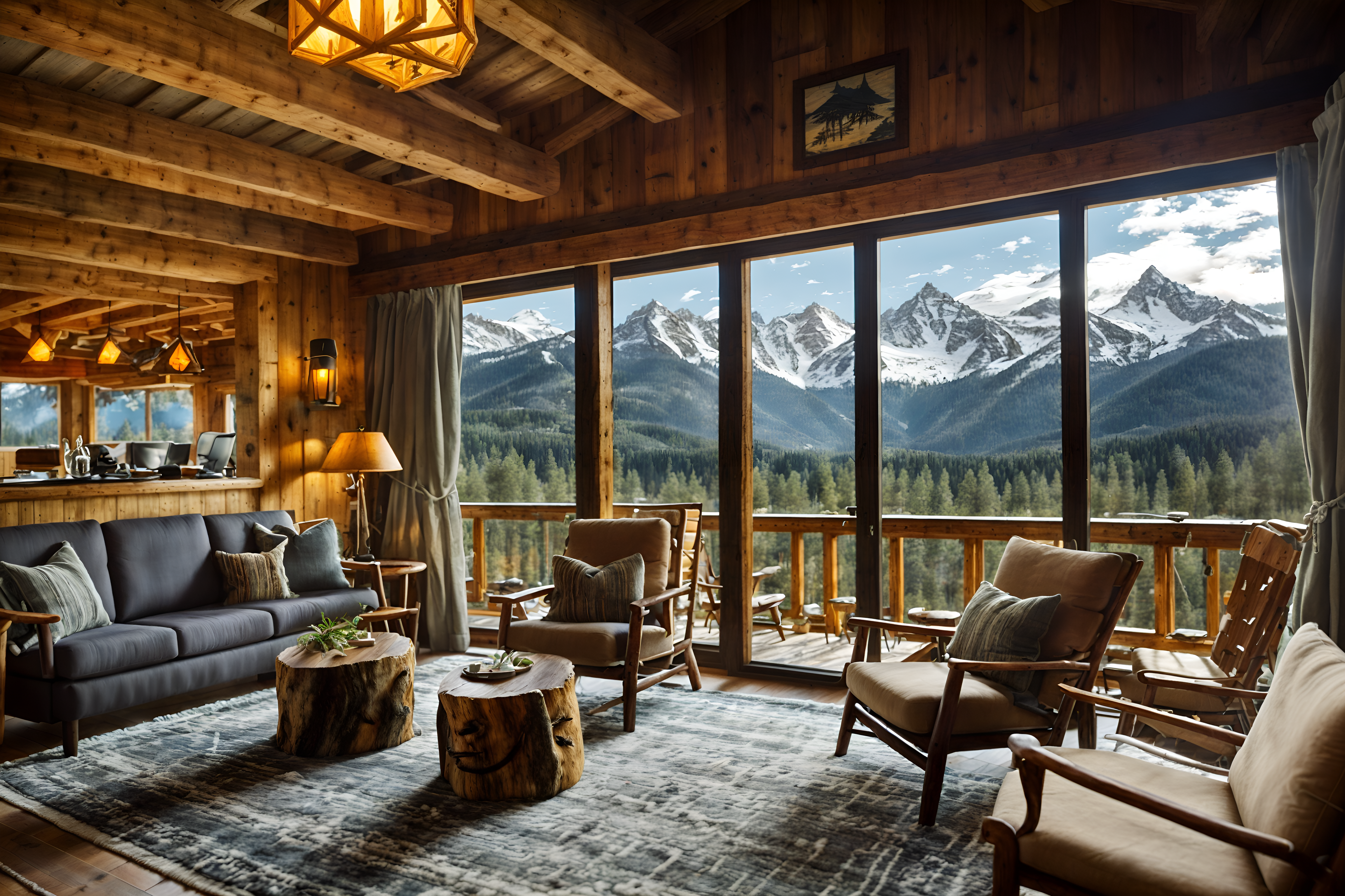 photo from pinterest of ski chalet-style interior designed (hotel lobby interior) with plant and lounge chairs and check in desk and sofas and furniture and rug and hanging lamps and coffee tables. . with layered textiles and exposed timber and nature-inspired and exposed wood and mountain-inspired and exposed construction beams and hanging wall elk antler and animal rugs. . cinematic photo, highly detailed, cinematic lighting, ultra-detailed, ultrarealistic, photorealism, 8k. trending on pinterest. ski chalet interior design style. masterpiece, cinematic light, ultrarealistic+, photorealistic+, 8k, raw photo, realistic, sharp focus on eyes, (symmetrical eyes), (intact eyes), hyperrealistic, highest quality, best quality, , highly detailed, masterpiece, best quality, extremely detailed 8k wallpaper, masterpiece, best quality, ultra-detailed, best shadow, detailed background, detailed face, detailed eyes, high contrast, best illumination, detailed face, dulux, caustic, dynamic angle, detailed glow. dramatic lighting. highly detailed, insanely detailed hair, symmetrical, intricate details, professionally retouched, 8k high definition. strong bokeh. award winning photo.