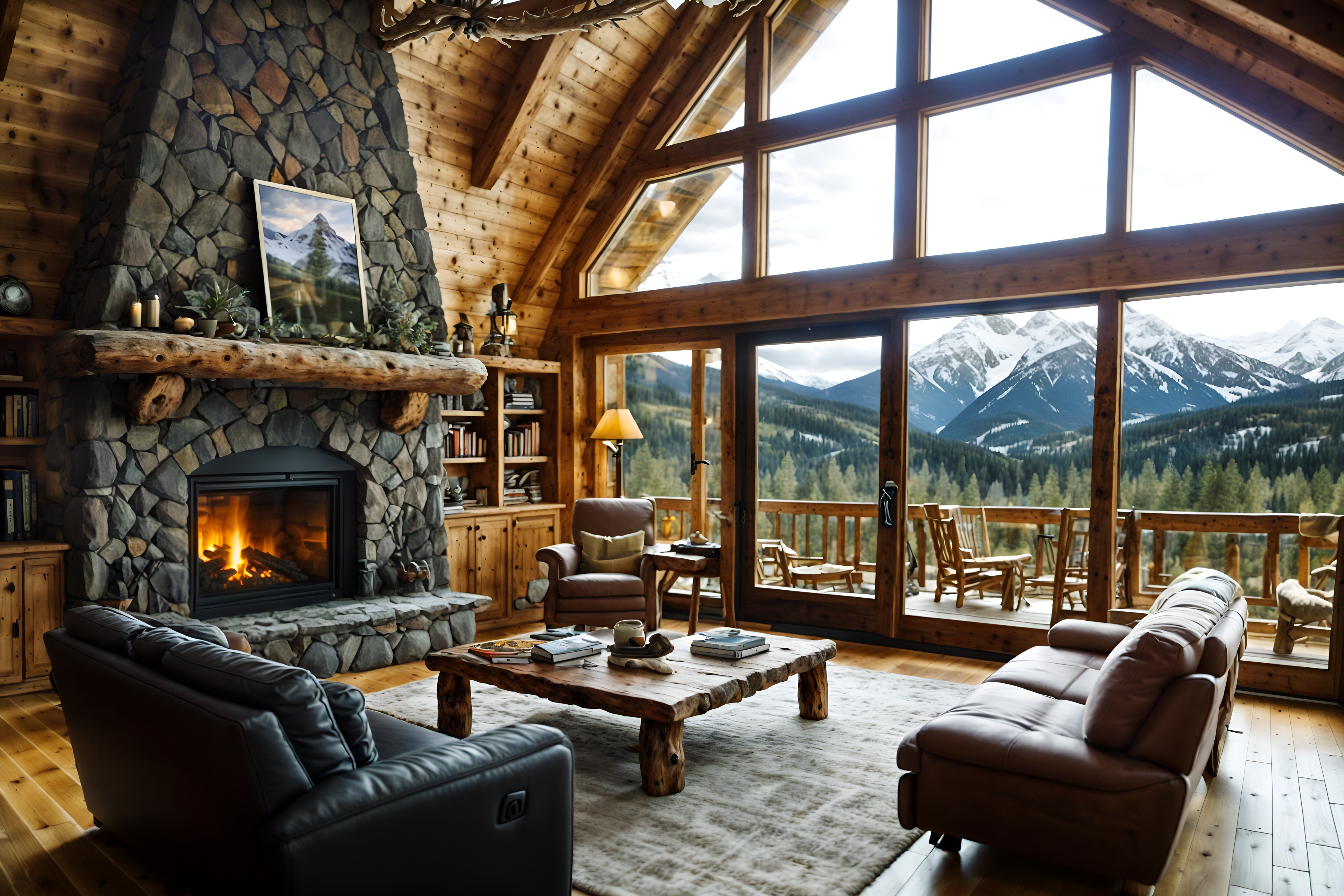 photo from pinterest of ski chalet-style interior designed (kitchen living combo interior) with sofa and coffee tables and chairs and electric lamps and televisions and plant and bookshelves and furniture. . with exposed wood and mountain-inspired and hanging wall elk antler and stone fireplace and window with mountain views and stone fireplace and wooden logs and nature-inspired. . cinematic photo, highly detailed, cinematic lighting, ultra-detailed, ultrarealistic, photorealism, 8k. trending on pinterest. ski chalet interior design style. masterpiece, cinematic light, ultrarealistic+, photorealistic+, 8k, raw photo, realistic, sharp focus on eyes, (symmetrical eyes), (intact eyes), hyperrealistic, highest quality, best quality, , highly detailed, masterpiece, best quality, extremely detailed 8k wallpaper, masterpiece, best quality, ultra-detailed, best shadow, detailed background, detailed face, detailed eyes, high contrast, best illumination, detailed face, dulux, caustic, dynamic angle, detailed glow. dramatic lighting. highly detailed, insanely detailed hair, symmetrical, intricate details, professionally retouched, 8k high definition. strong bokeh. award winning photo.