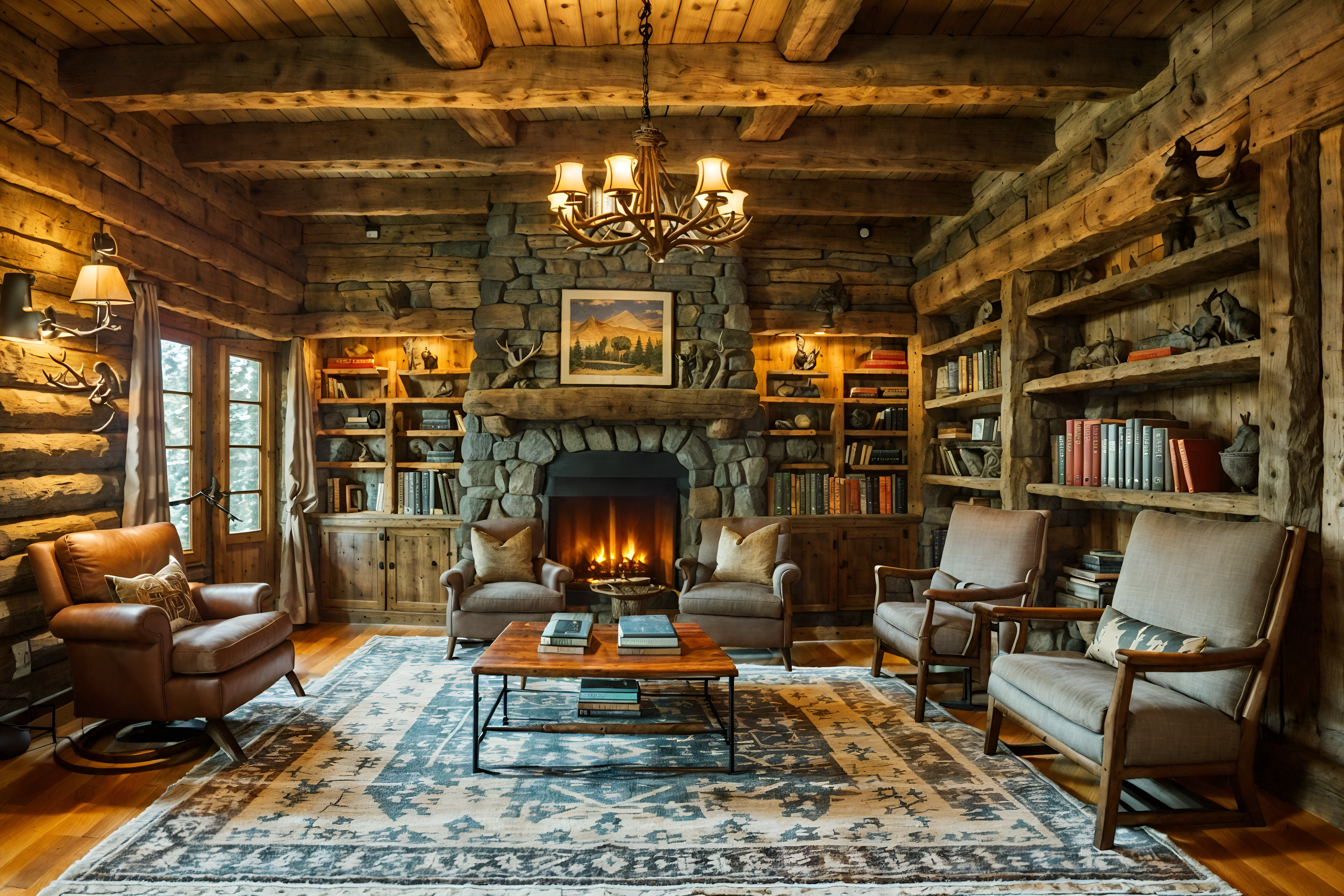 ski chalet interiorsinterior decorate this ballroom with ski chalet style. . . with grand piano and gilded decor and elegant drapes and elegant seating and dance floor and marble floors and ornate columns and chandeliers. . with wooden logs and decorative carving and mouldings and exposed construction beams and rustic and stone fireplace and layered textiles and hanging wall elk antler and mountain-inspired. . .interior decorate this attic with ski chalet style. . . with antique items and storage boxes and ladder and old furniture and dust sheets and storage shelves and exposed beams and old books. . with exposed construction beams and stone fireplace and exposed timber and stone fireplace and rustic and layered textiles and wooden walls and nature-inspired. . .interior decorate this waiting room with ski chalet style. . . with coat rack and side tables and coffee table and television and chairs and reception desk and water cooler and clock. . with exposed wood and wooden logs and rustic and ski-themed decor and window with mountain views and wood beams and animal rugs and stone fireplace. . .interior decorate this cinema with ski chalet style. . . with concession stand and popcorn machine and movie screen and dim lighting and aisles and curtains and surround sound speakers and projector. . with exposed construction beams and richly patterned fabrics and stone fireplace and rustic and nature-inspired and exposed wood and mountain-inspired and animal furs. . .interior decorate this living room with ski chalet style. . . with chairs and coffee tables and furniture and sofa and plant and occasional tables and rug and electric lamps. . with animal rugs and exposed construction beams and animal motifs and stone fireplace and rustic and stone fireplace and layered textiles and exposed wood. . .interior decorate this press room with ski chalet style. . . with recording equipment and cameras and press badges and podium and lighting equipment and notebooks and microphones and tripods. . with mountain-inspired and layered textiles and exposed timber and hanging wall elk antler and exposed wood and ski-themed decor and wooden walls and animal rugs. . .interior decorate this classroom with ski chalet style. . . with globe and teacher desk and whiteboard and books and erasers and chairs and educational posters and desks. . with layered textiles and wooden walls and stone fireplace and richly patterned fabrics and window with mountain views and rustic and wood beams and animal rugs. . .interior decorate this church with ski chalet style. . . with hymn books and religious statues and candles and cross and stained glass windows and pulpit and baptismal font and pews. . with exposed timber and hanging wall elk antler and stone fireplace and exposed wood and wooden walls and richly patterned fabrics and layered textiles and rustic. . .interior decorate this garage with ski chalet style. . . with garage door and lawnmower and storage racks and cars and bicycles and concrete floor and garage door. . with exposed timber and mountain-inspired and wooden logs and nature-inspired and decorative carving and mouldings and animal rugs and layered textiles and ski-themed decor. . .