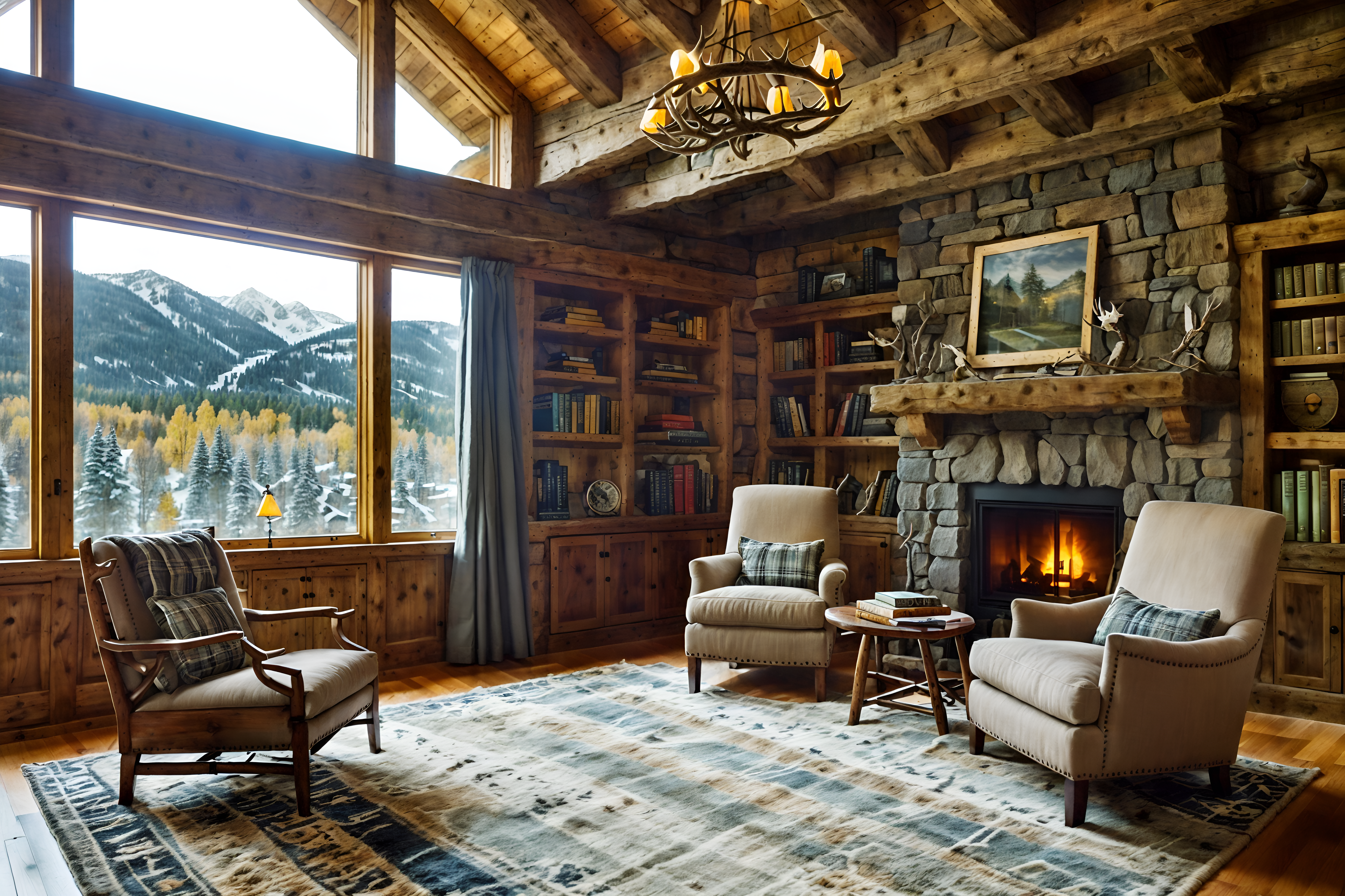 ski chalet interiorsinterior decorate this laundry room with ski chalet style. . . with clothes dryer and laundry tub and iron and clothes hamper and washing machine and area rug and drying racks and laundry jars. . with mountain-inspired and window with mountain views and ski-themed decor and animal motifs and wooden logs and richly patterned fabrics and exposed construction beams and rustic. . .interior decorate this living room with ski chalet style. . . with chairs and coffee tables and furniture and sofa and plant and occasional tables and rug and electric lamps. . with animal rugs and exposed construction beams and animal motifs and stone fireplace and rustic and stone fireplace and layered textiles and exposed wood. . .interior decorate this clothing store with ski chalet style. . . . with rustic and exposed wood and window with mountain views and animal furs and animal motifs and richly patterned fabrics and animal rugs and wood beams. . .interior decorate this exhibition space with ski chalet style. . . with barriers and artwork and pedestals and benches and information plaques and interactive displays and sculptures and display cases. . with richly patterned fabrics and exposed construction beams and stone fireplace and animal furs and ski-themed decor and animal motifs and wood beams and wooden logs. . .interior decorate this dining room with ski chalet style. . . with table cloth and plant and plates, cutlery and glasses on dining table and vase and painting or photo on wall and dining table and dining table chairs and bookshelves. . with stone fireplace and animal furs and stone fireplace and nature-inspired and wood beams and richly patterned fabrics and mountain-inspired and rustic. . .interior decorate this onsen with ski chalet style. . . . with exposed construction beams and nature-inspired and wooden walls and decorative carving and mouldings and exposed wood and layered textiles and animal motifs and stone fireplace. . .interior decorate this fitness gym with ski chalet style. . . with crosstrainer and dumbbell stand and exercise bicycle and squat rack and bench press and crosstrainer. . with wood beams and stone fireplace and exposed construction beams and exposed wood and window with mountain views and wooden walls and hanging wall elk antler and animal rugs. . .interior decorate this courtroom with ski chalet style. . . with scales of justice and flags and judge bench and gallery seating and witness stand and legal books and jury box and court reporter desk. . with exposed construction beams and exposed wood and rustic and decorative carving and mouldings and richly patterned fabrics and nature-inspired and animal furs and layered textiles. . .interior decorate this hotel room with ski chalet style. . . with night light and hotel bathroom and accent chair and bed and mirror and plant and headboard and working desk with desk chair. . with decorative carving and mouldings and wooden logs and animal motifs and rustic and wood beams and richly patterned fabrics and animal furs and wooden walls. . .