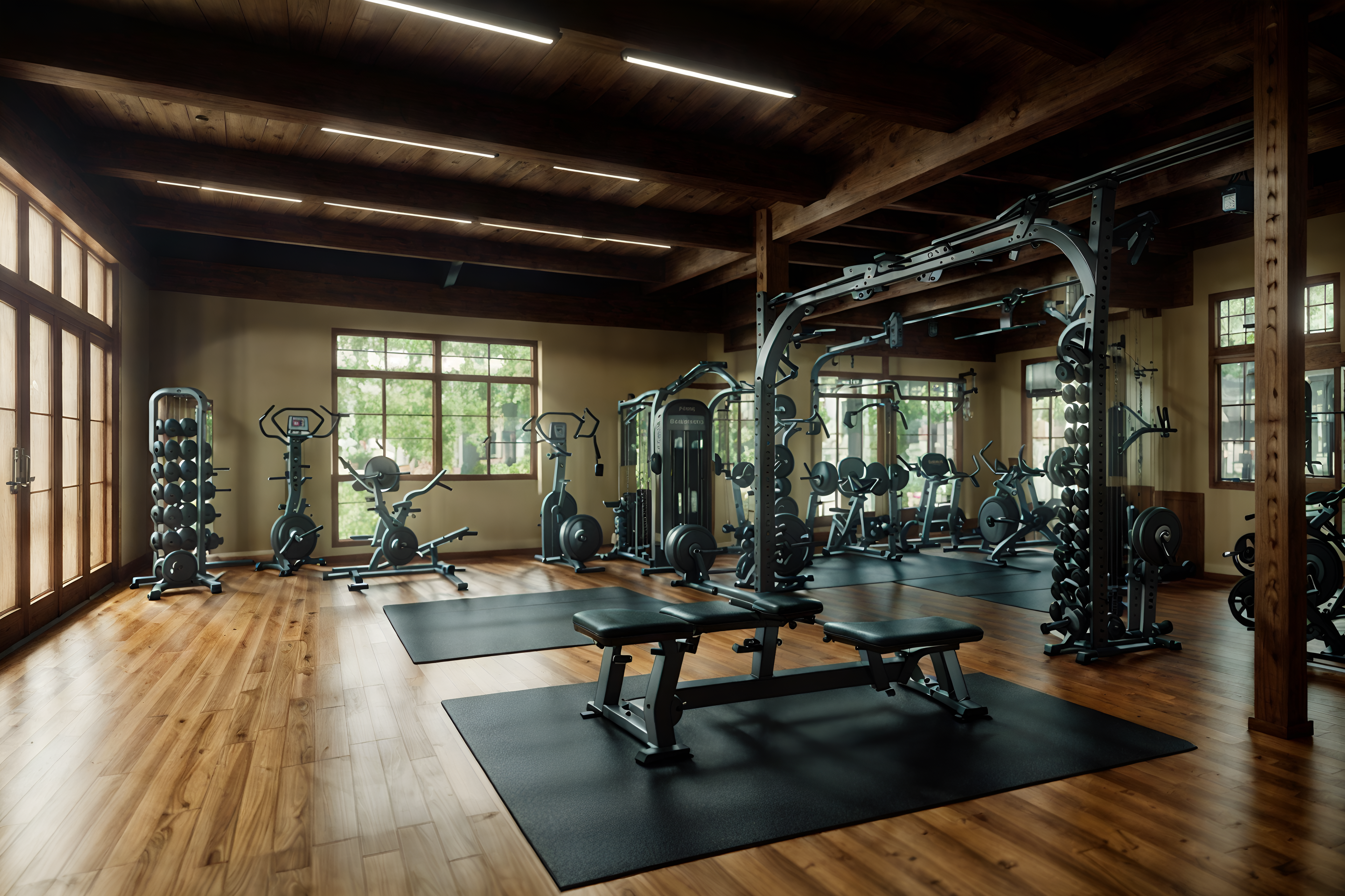 photo from pinterest of traditional-style interior designed (fitness gym interior) with exercise bicycle and dumbbell stand and bench press and squat rack and crosstrainer and exercise bicycle cinematic photo, highly detailed, cinematic lighting, ultra-detailed, ultrarealistic, photorealism, 8k. trending on pinterest. traditional interior design style. masterpiece, cinematic light, ultrarealistic+, photorealistic+, 8k, raw photo, realistic, sharp focus on eyes, (symmetrical eyes), (intact eyes), hyperrealistic, highest quality, best quality, , highly detailed, masterpiece, best quality, extremely detailed 8k wallpaper, masterpiece, best quality, ultra-detailed, best shadow, detailed background, detailed face, detailed eyes, high contrast, best illumination, detailed face, dulux, caustic, dynamic angle, detailed glow. dramatic lighting. highly detailed, insanely detailed hair, symmetrical, intricate details, professionally retouched, 8k high definition. strong bokeh. award winning photo.