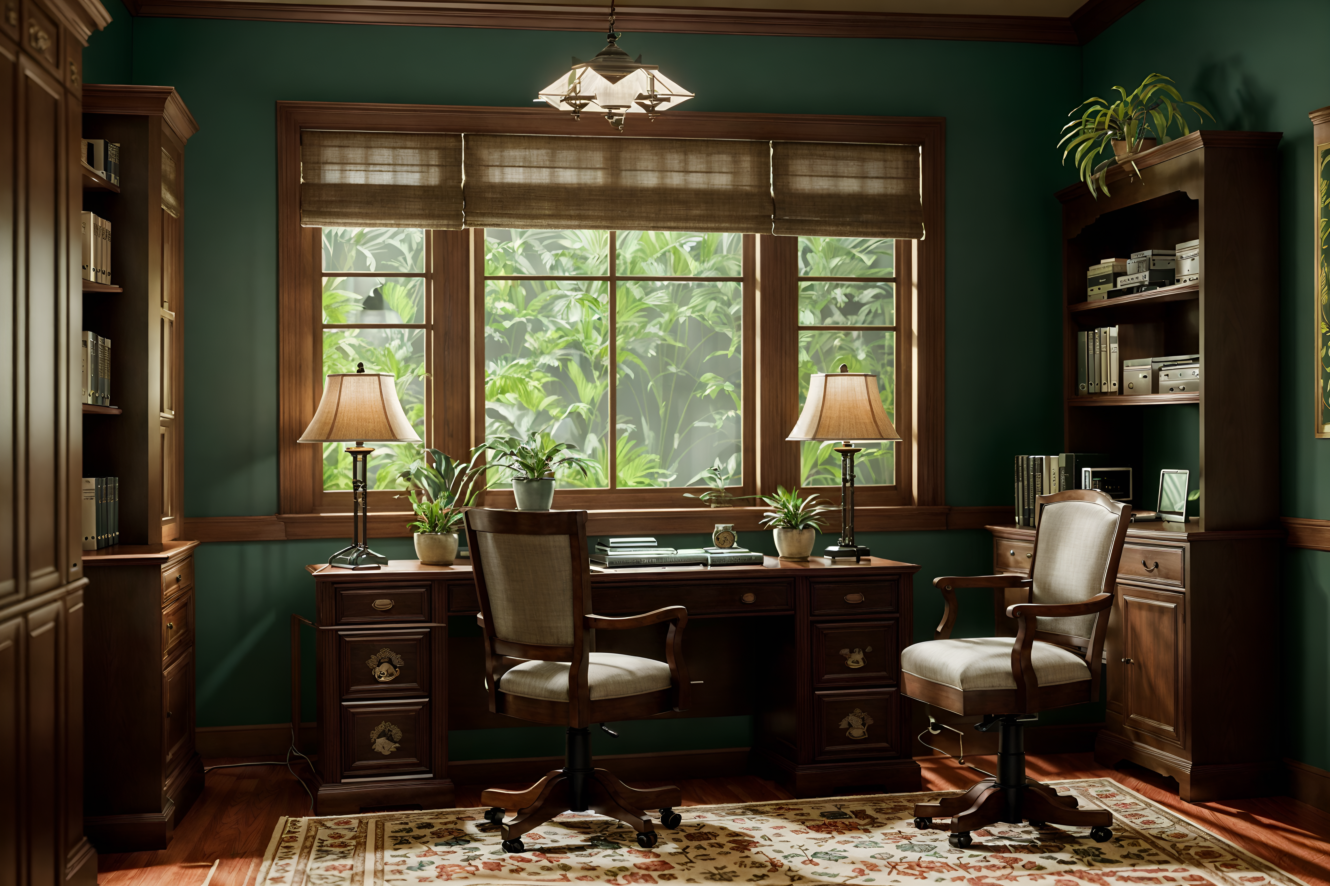 photo from pinterest of traditional-style interior designed (home office interior) with cabinets and computer desk and office chair and plant and desk lamp and cabinets cinematic photo, highly detailed, cinematic lighting, ultra-detailed, ultrarealistic, photorealism, 8k. trending on pinterest. traditional interior design style. masterpiece, cinematic light, ultrarealistic+, photorealistic+, 8k, raw photo, realistic, sharp focus on eyes, (symmetrical eyes), (intact eyes), hyperrealistic, highest quality, best quality, , highly detailed, masterpiece, best quality, extremely detailed 8k wallpaper, masterpiece, best quality, ultra-detailed, best shadow, detailed background, detailed face, detailed eyes, high contrast, best illumination, detailed face, dulux, caustic, dynamic angle, detailed glow. dramatic lighting. highly detailed, insanely detailed hair, symmetrical, intricate details, professionally retouched, 8k high definition. strong bokeh. award winning photo.