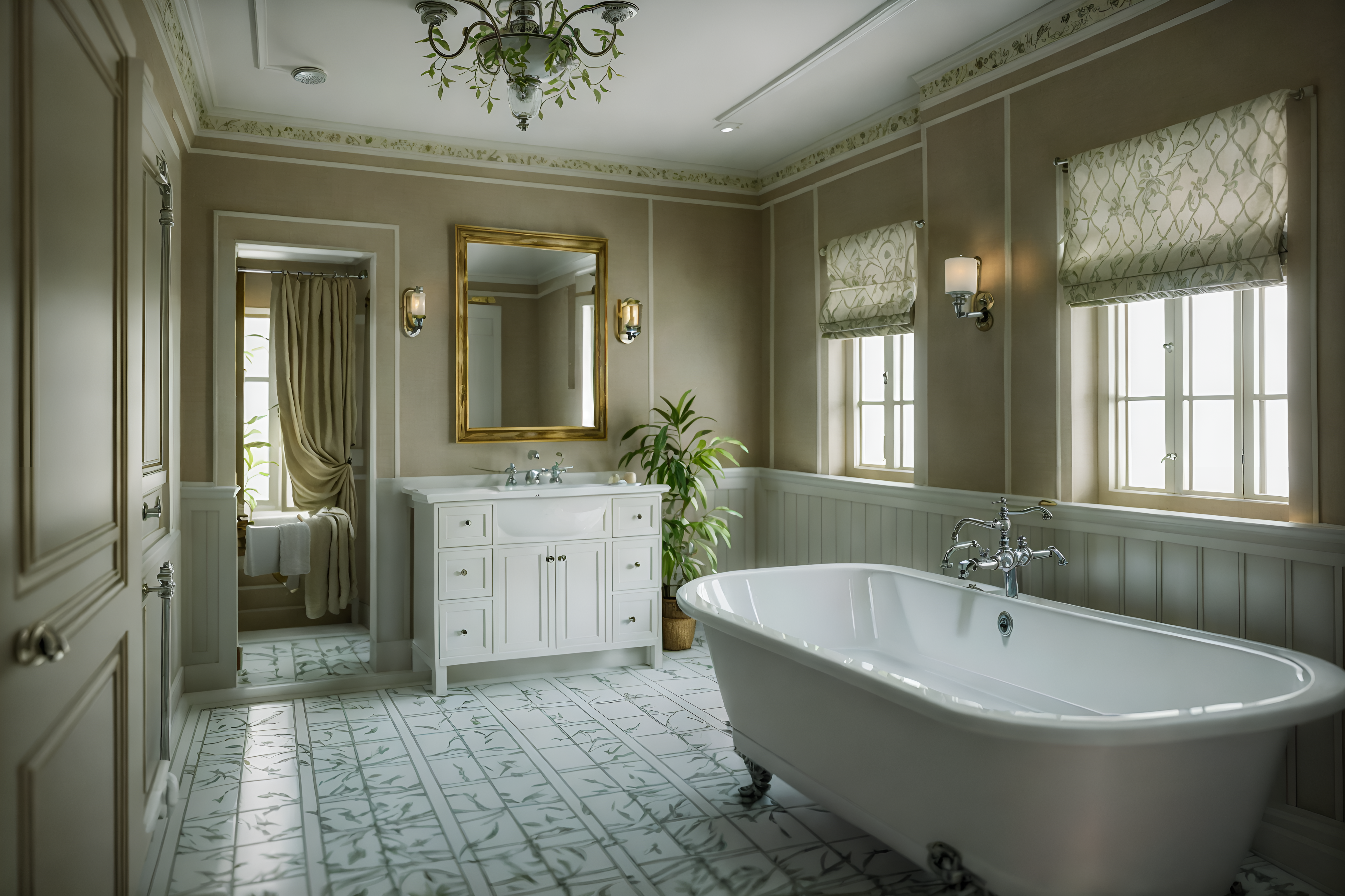 photo from pinterest of traditional-style interior designed (hotel bathroom interior) with plant and bathroom sink with faucet and bath towel and waste basket and bathroom cabinet and bathtub and shower and bath rail cinematic photo, highly detailed, cinematic lighting, ultra-detailed, ultrarealistic, photorealism, 8k. trending on pinterest. traditional interior design style. masterpiece, cinematic light, ultrarealistic+, photorealistic+, 8k, raw photo, realistic, sharp focus on eyes, (symmetrical eyes), (intact eyes), hyperrealistic, highest quality, best quality, , highly detailed, masterpiece, best quality, extremely detailed 8k wallpaper, masterpiece, best quality, ultra-detailed, best shadow, detailed background, detailed face, detailed eyes, high contrast, best illumination, detailed face, dulux, caustic, dynamic angle, detailed glow. dramatic lighting. highly detailed, insanely detailed hair, symmetrical, intricate details, professionally retouched, 8k high definition. strong bokeh. award winning photo.