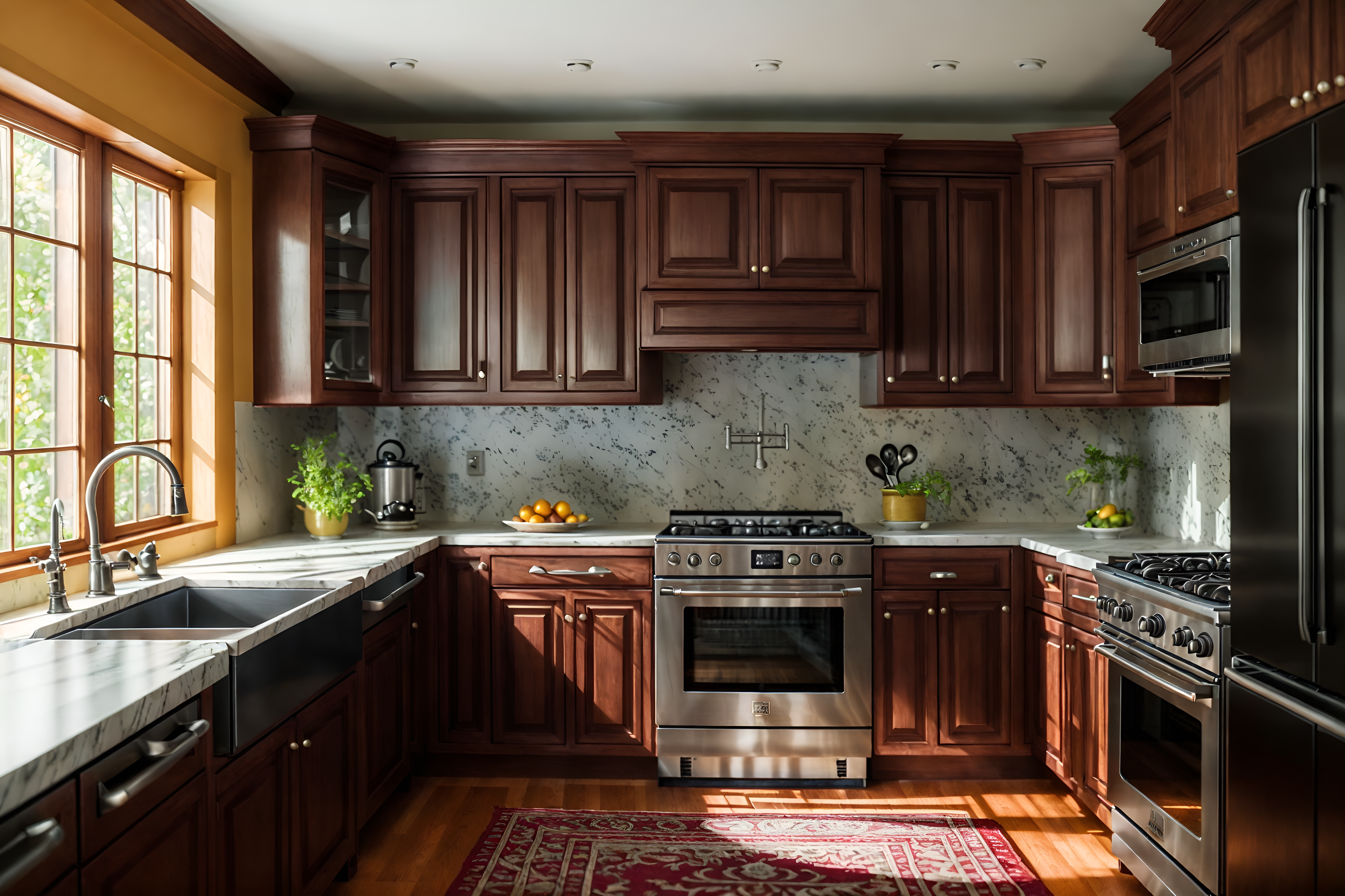 photo from pinterest of traditional-style interior designed (kitchen interior) with worktops and plant and stove and sink and kitchen cabinets and refrigerator and worktops cinematic photo, highly detailed, cinematic lighting, ultra-detailed, ultrarealistic, photorealism, 8k. trending on pinterest. traditional interior design style. masterpiece, cinematic light, ultrarealistic+, photorealistic+, 8k, raw photo, realistic, sharp focus on eyes, (symmetrical eyes), (intact eyes), hyperrealistic, highest quality, best quality, , highly detailed, masterpiece, best quality, extremely detailed 8k wallpaper, masterpiece, best quality, ultra-detailed, best shadow, detailed background, detailed face, detailed eyes, high contrast, best illumination, detailed face, dulux, caustic, dynamic angle, detailed glow. dramatic lighting. highly detailed, insanely detailed hair, symmetrical, intricate details, professionally retouched, 8k high definition. strong bokeh. award winning photo.
