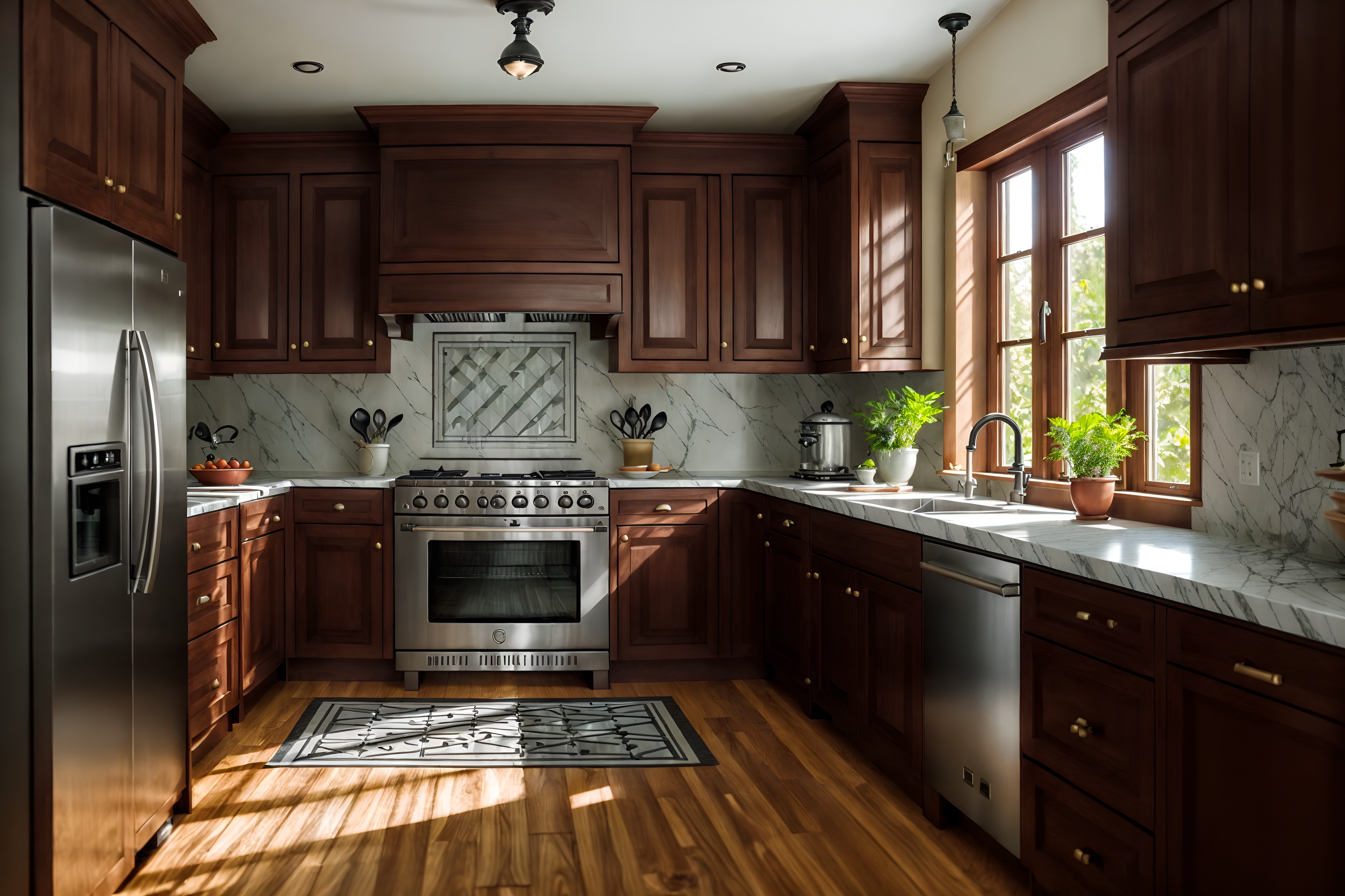 photo from pinterest of traditional-style interior designed (kitchen interior) with worktops and plant and stove and sink and kitchen cabinets and refrigerator and worktops cinematic photo, highly detailed, cinematic lighting, ultra-detailed, ultrarealistic, photorealism, 8k. trending on pinterest. traditional interior design style. masterpiece, cinematic light, ultrarealistic+, photorealistic+, 8k, raw photo, realistic, sharp focus on eyes, (symmetrical eyes), (intact eyes), hyperrealistic, highest quality, best quality, , highly detailed, masterpiece, best quality, extremely detailed 8k wallpaper, masterpiece, best quality, ultra-detailed, best shadow, detailed background, detailed face, detailed eyes, high contrast, best illumination, detailed face, dulux, caustic, dynamic angle, detailed glow. dramatic lighting. highly detailed, insanely detailed hair, symmetrical, intricate details, professionally retouched, 8k high definition. strong bokeh. award winning photo.