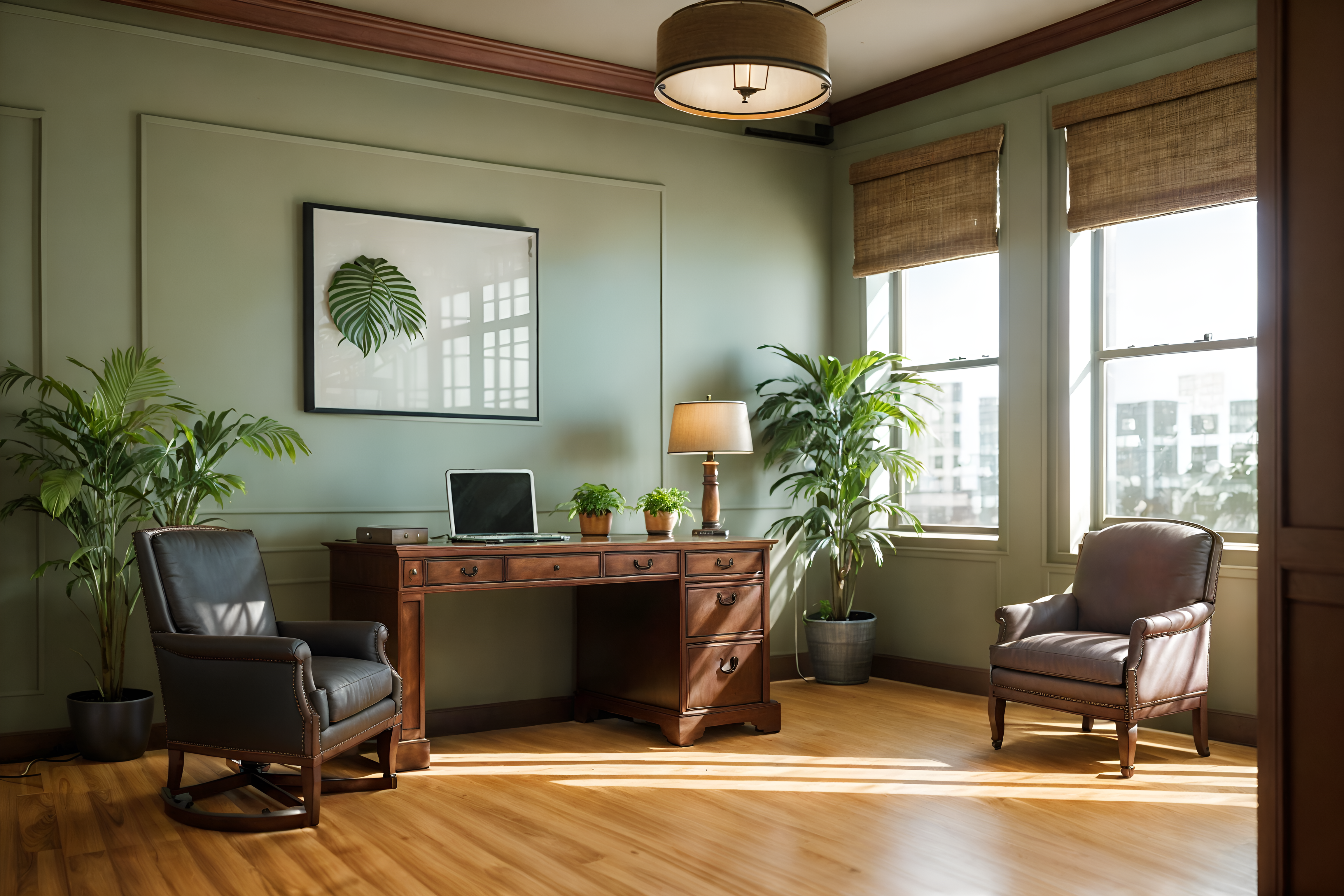 photo from pinterest of traditional-style interior designed (office interior) with desk lamps and office desks and lounge chairs and cabinets and plants and seating area with sofa and windows and office chairs cinematic photo, highly detailed, cinematic lighting, ultra-detailed, ultrarealistic, photorealism, 8k. trending on pinterest. traditional interior design style. masterpiece, cinematic light, ultrarealistic+, photorealistic+, 8k, raw photo, realistic, sharp focus on eyes, (symmetrical eyes), (intact eyes), hyperrealistic, highest quality, best quality, , highly detailed, masterpiece, best quality, extremely detailed 8k wallpaper, masterpiece, best quality, ultra-detailed, best shadow, detailed background, detailed face, detailed eyes, high contrast, best illumination, detailed face, dulux, caustic, dynamic angle, detailed glow. dramatic lighting. highly detailed, insanely detailed hair, symmetrical, intricate details, professionally retouched, 8k high definition. strong bokeh. award winning photo.