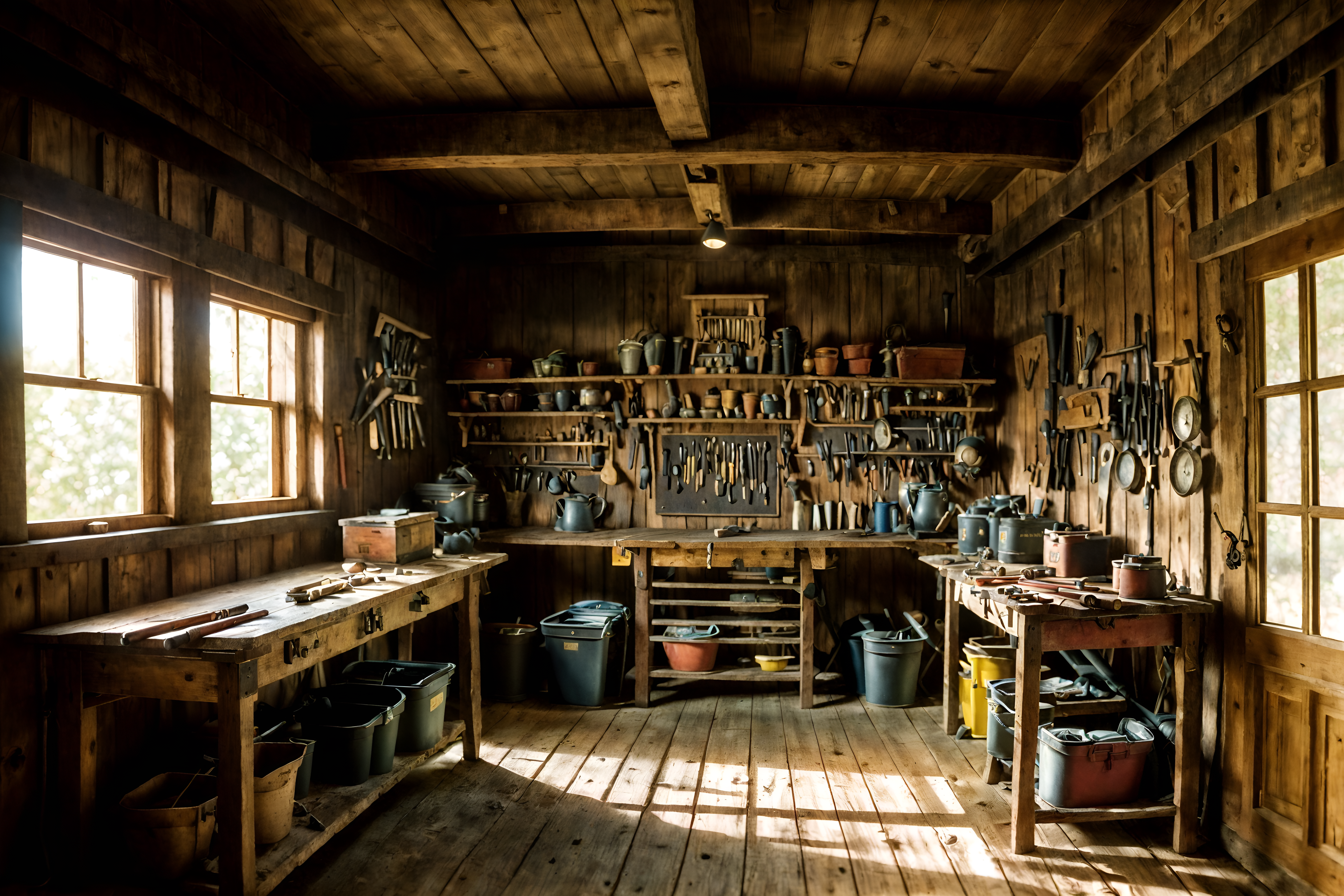 photo from pinterest of traditional-style interior designed (workshop interior) with wooden workbench and messy and tool wall and wooden workbench cinematic photo, highly detailed, cinematic lighting, ultra-detailed, ultrarealistic, photorealism, 8k. trending on pinterest. traditional interior design style. masterpiece, cinematic light, ultrarealistic+, photorealistic+, 8k, raw photo, realistic, sharp focus on eyes, (symmetrical eyes), (intact eyes), hyperrealistic, highest quality, best quality, , highly detailed, masterpiece, best quality, extremely detailed 8k wallpaper, masterpiece, best quality, ultra-detailed, best shadow, detailed background, detailed face, detailed eyes, high contrast, best illumination, detailed face, dulux, caustic, dynamic angle, detailed glow. dramatic lighting. highly detailed, insanely detailed hair, symmetrical, intricate details, professionally retouched, 8k high definition. strong bokeh. award winning photo.