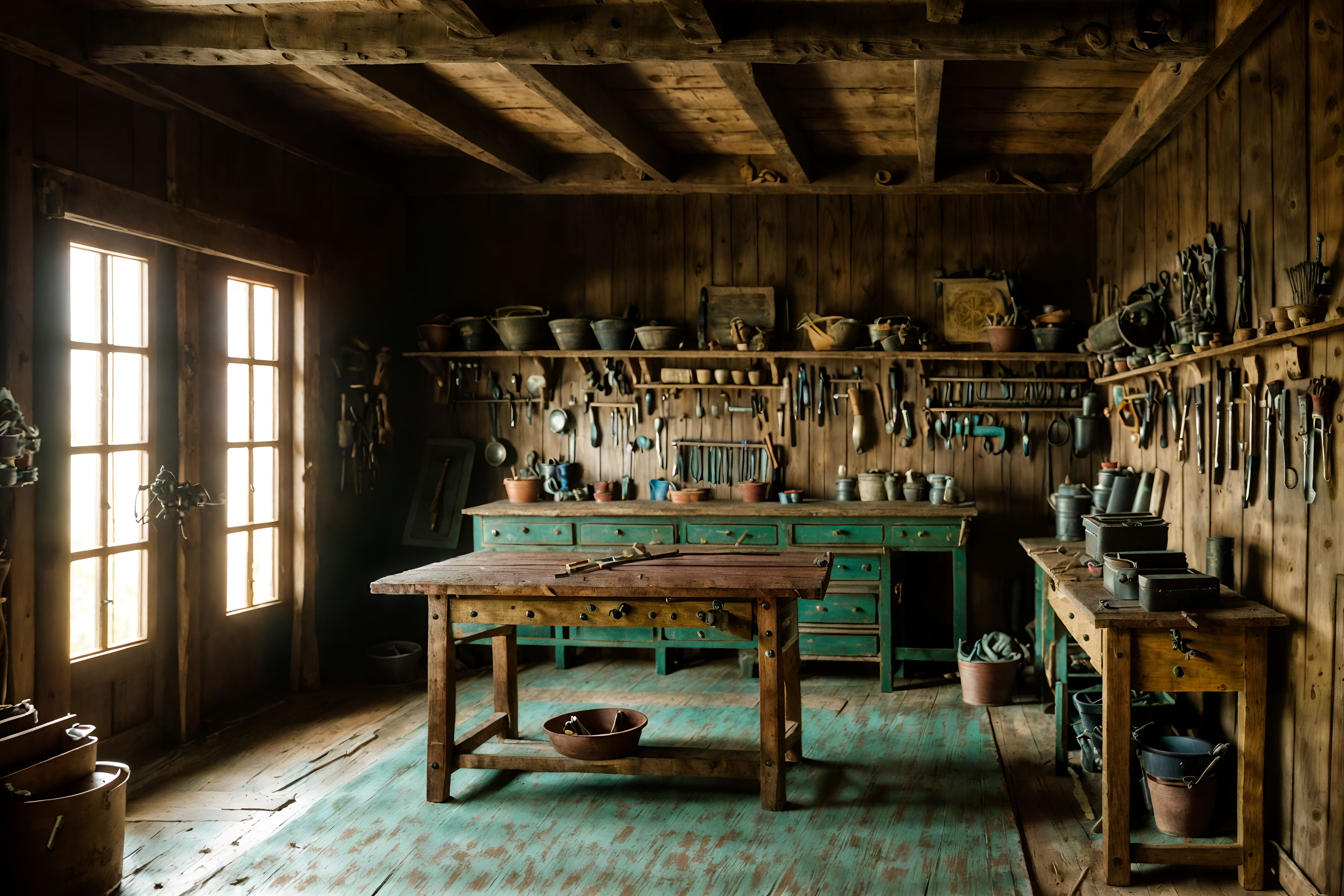 photo from pinterest of traditional-style interior designed (workshop interior) with wooden workbench and messy and tool wall and wooden workbench cinematic photo, highly detailed, cinematic lighting, ultra-detailed, ultrarealistic, photorealism, 8k. trending on pinterest. traditional interior design style. masterpiece, cinematic light, ultrarealistic+, photorealistic+, 8k, raw photo, realistic, sharp focus on eyes, (symmetrical eyes), (intact eyes), hyperrealistic, highest quality, best quality, , highly detailed, masterpiece, best quality, extremely detailed 8k wallpaper, masterpiece, best quality, ultra-detailed, best shadow, detailed background, detailed face, detailed eyes, high contrast, best illumination, detailed face, dulux, caustic, dynamic angle, detailed glow. dramatic lighting. highly detailed, insanely detailed hair, symmetrical, intricate details, professionally retouched, 8k high definition. strong bokeh. award winning photo.