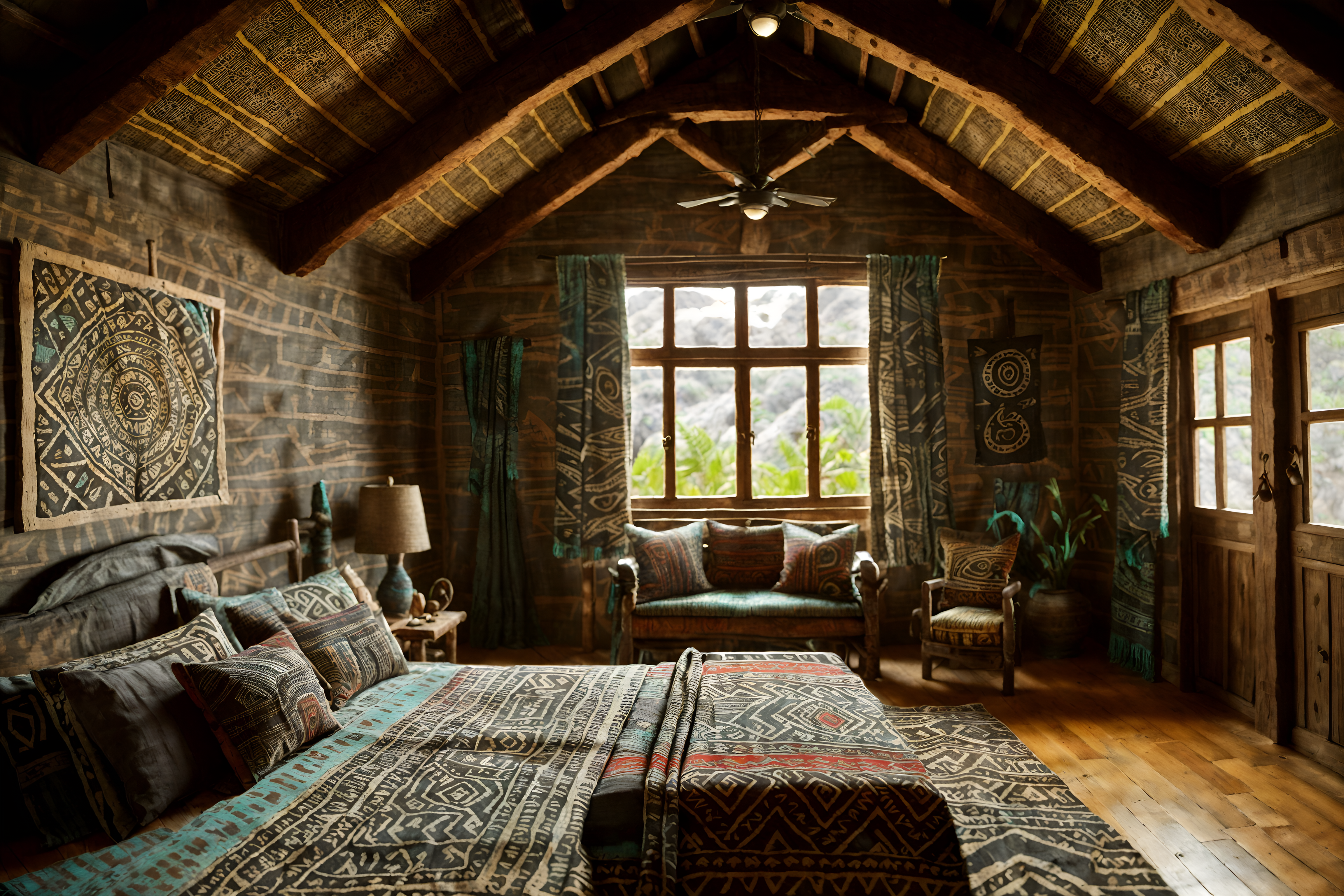 photo from pinterest of tribal-style interior designed (attic interior) . with sculptures and artworks and tribal revival and exuberant splashes of colour and animal prints and smooth worn timbers and hand dyed batik fabrics and animal furslinen and desert colours. . cinematic photo, highly detailed, cinematic lighting, ultra-detailed, ultrarealistic, photorealism, 8k. trending on pinterest. tribal interior design style. masterpiece, cinematic light, ultrarealistic+, photorealistic+, 8k, raw photo, realistic, sharp focus on eyes, (symmetrical eyes), (intact eyes), hyperrealistic, highest quality, best quality, , highly detailed, masterpiece, best quality, extremely detailed 8k wallpaper, masterpiece, best quality, ultra-detailed, best shadow, detailed background, detailed face, detailed eyes, high contrast, best illumination, detailed face, dulux, caustic, dynamic angle, detailed glow. dramatic lighting. highly detailed, insanely detailed hair, symmetrical, intricate details, professionally retouched, 8k high definition. strong bokeh. award winning photo.
