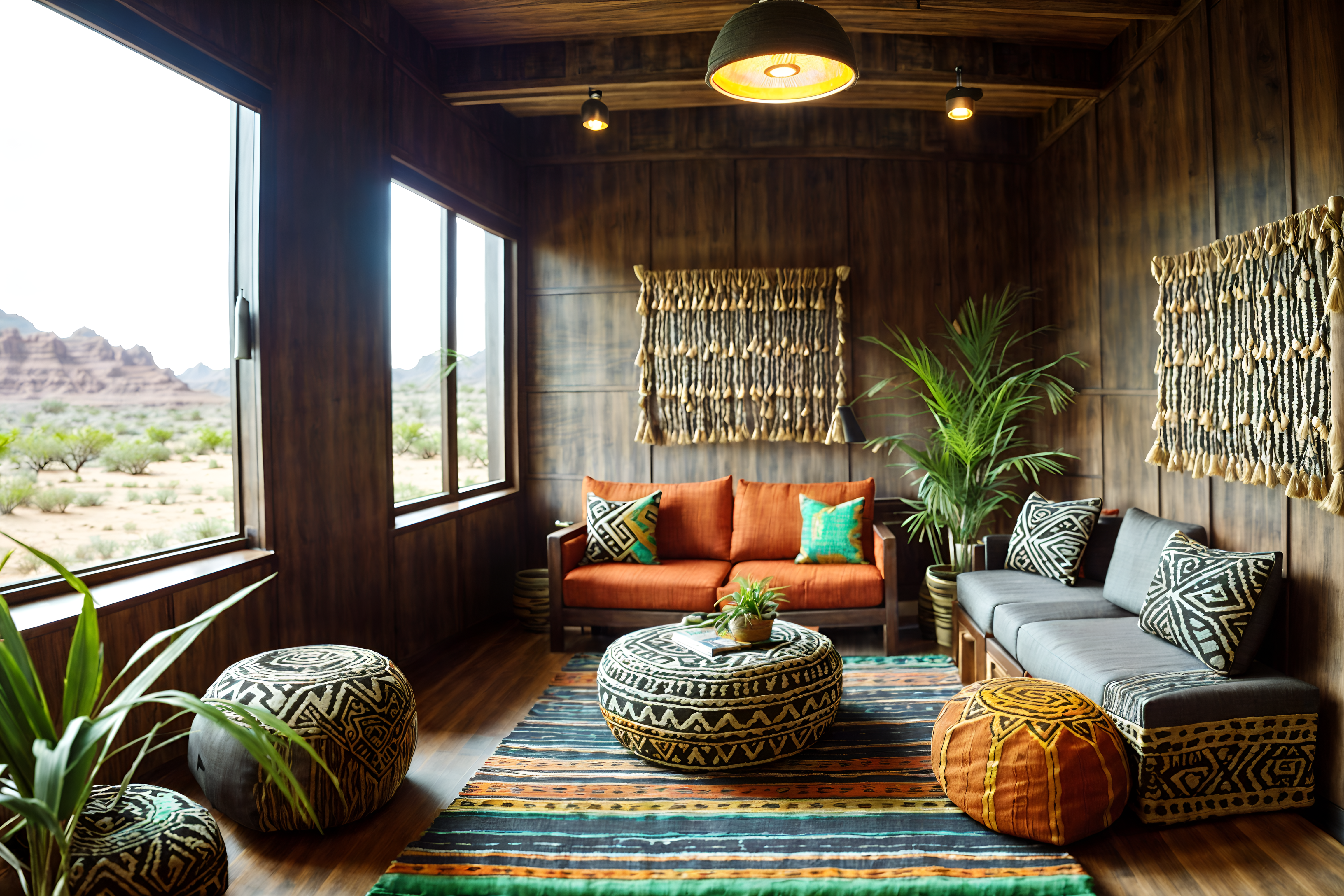photo from pinterest of tribal-style interior designed (office interior) with cabinets and desk lamps and office desks and plants and computer desks and windows and seating area with sofa and lounge chairs. . with tribal revival and exuberant splashes of colour and intricate grass weaving and desert colours and planks of stone and animal prints and hand dyed batik fabrics and sculptures and artworks. . cinematic photo, highly detailed, cinematic lighting, ultra-detailed, ultrarealistic, photorealism, 8k. trending on pinterest. tribal interior design style. masterpiece, cinematic light, ultrarealistic+, photorealistic+, 8k, raw photo, realistic, sharp focus on eyes, (symmetrical eyes), (intact eyes), hyperrealistic, highest quality, best quality, , highly detailed, masterpiece, best quality, extremely detailed 8k wallpaper, masterpiece, best quality, ultra-detailed, best shadow, detailed background, detailed face, detailed eyes, high contrast, best illumination, detailed face, dulux, caustic, dynamic angle, detailed glow. dramatic lighting. highly detailed, insanely detailed hair, symmetrical, intricate details, professionally retouched, 8k high definition. strong bokeh. award winning photo.