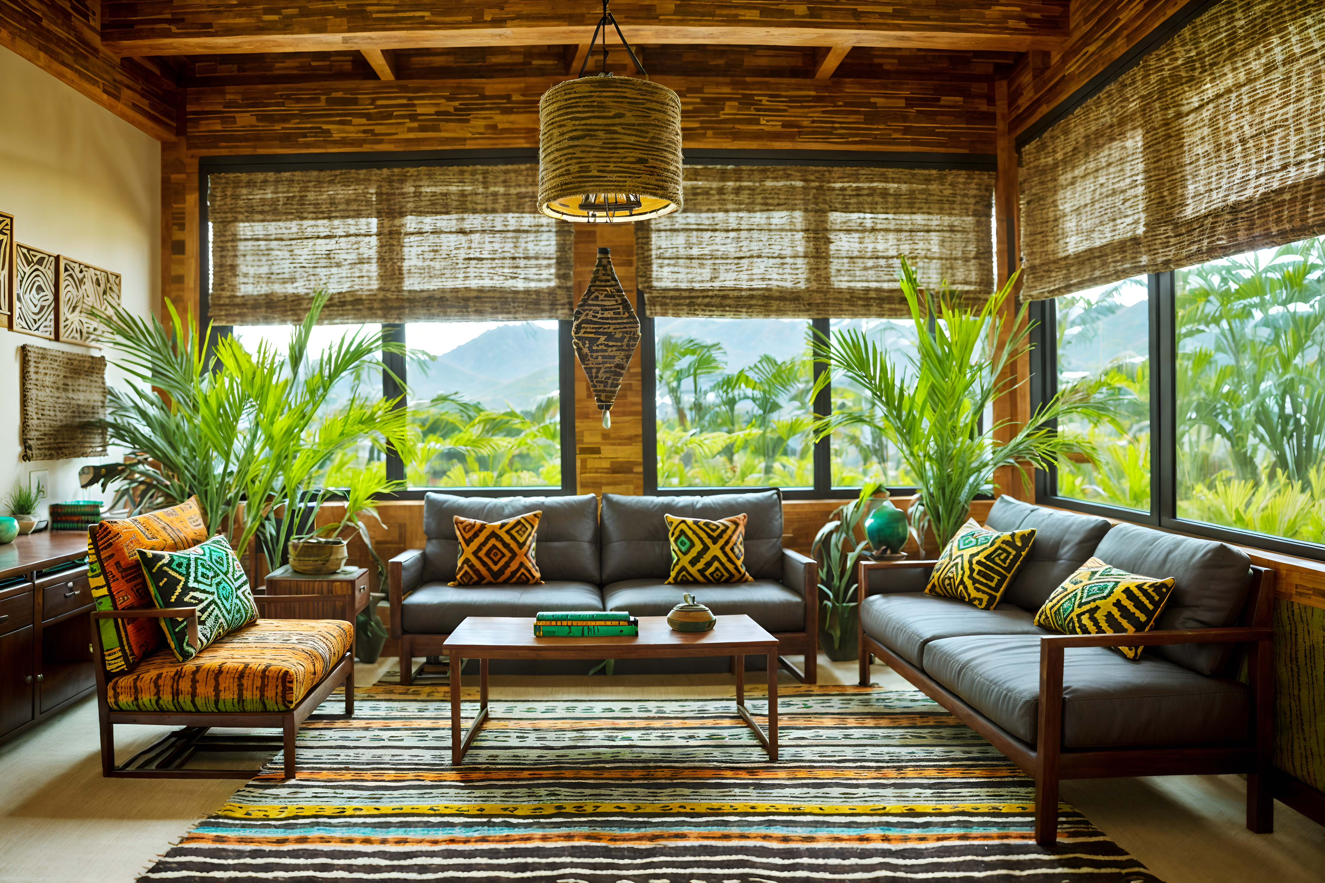 photo from pinterest of tribal-style interior designed (office interior) with cabinets and desk lamps and office desks and plants and computer desks and windows and seating area with sofa and lounge chairs. . with tribal revival and exuberant splashes of colour and intricate grass weaving and desert colours and planks of stone and animal prints and hand dyed batik fabrics and sculptures and artworks. . cinematic photo, highly detailed, cinematic lighting, ultra-detailed, ultrarealistic, photorealism, 8k. trending on pinterest. tribal interior design style. masterpiece, cinematic light, ultrarealistic+, photorealistic+, 8k, raw photo, realistic, sharp focus on eyes, (symmetrical eyes), (intact eyes), hyperrealistic, highest quality, best quality, , highly detailed, masterpiece, best quality, extremely detailed 8k wallpaper, masterpiece, best quality, ultra-detailed, best shadow, detailed background, detailed face, detailed eyes, high contrast, best illumination, detailed face, dulux, caustic, dynamic angle, detailed glow. dramatic lighting. highly detailed, insanely detailed hair, symmetrical, intricate details, professionally retouched, 8k high definition. strong bokeh. award winning photo.