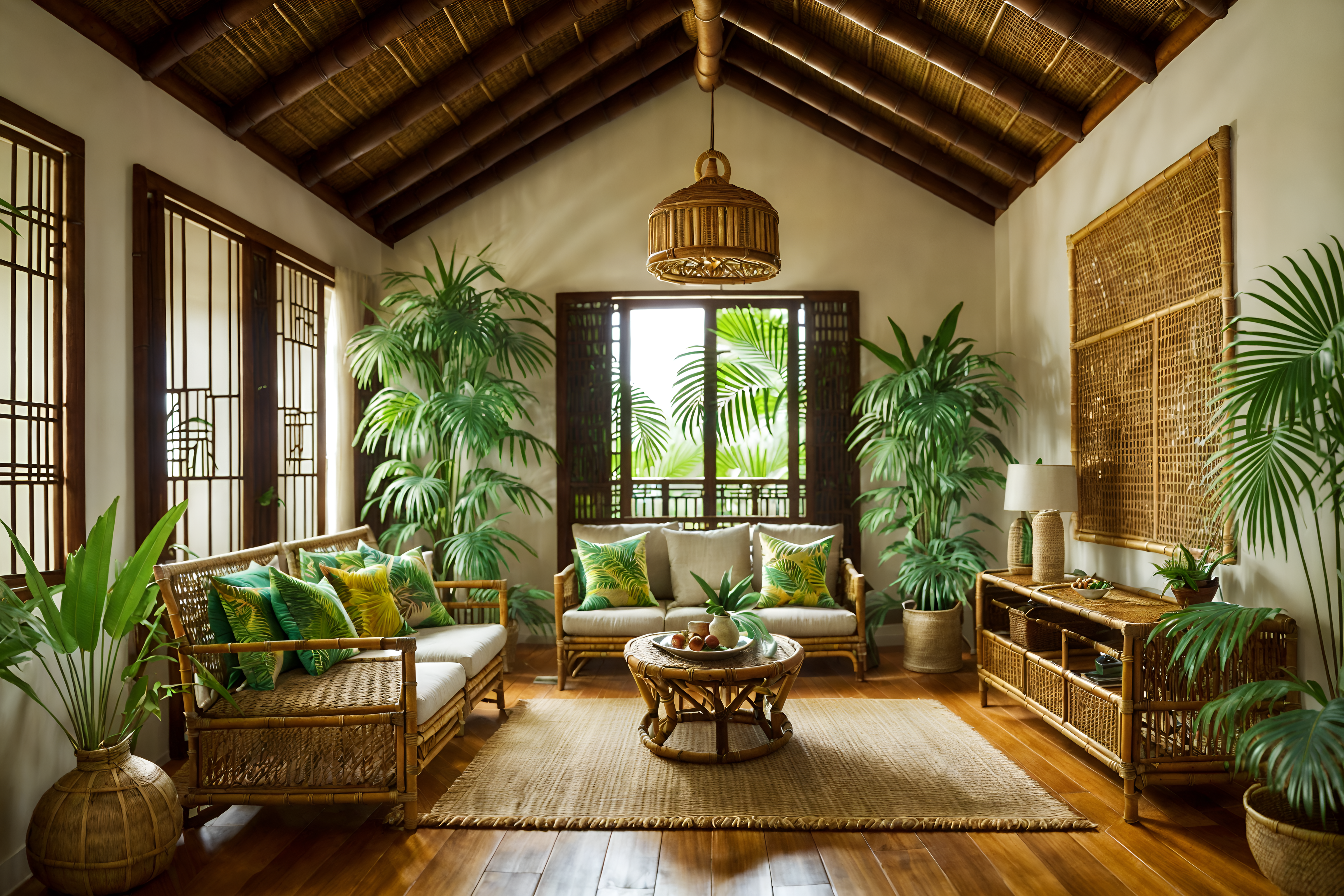 photo from pinterest of tropical-style interior designed (attic interior) . with palm trees and teak and wicker and palm leaves and lattice prints and bamboo and cane motifs and rattan. . cinematic photo, highly detailed, cinematic lighting, ultra-detailed, ultrarealistic, photorealism, 8k. trending on pinterest. tropical interior design style. masterpiece, cinematic light, ultrarealistic+, photorealistic+, 8k, raw photo, realistic, sharp focus on eyes, (symmetrical eyes), (intact eyes), hyperrealistic, highest quality, best quality, , highly detailed, masterpiece, best quality, extremely detailed 8k wallpaper, masterpiece, best quality, ultra-detailed, best shadow, detailed background, detailed face, detailed eyes, high contrast, best illumination, detailed face, dulux, caustic, dynamic angle, detailed glow. dramatic lighting. highly detailed, insanely detailed hair, symmetrical, intricate details, professionally retouched, 8k high definition. strong bokeh. award winning photo.