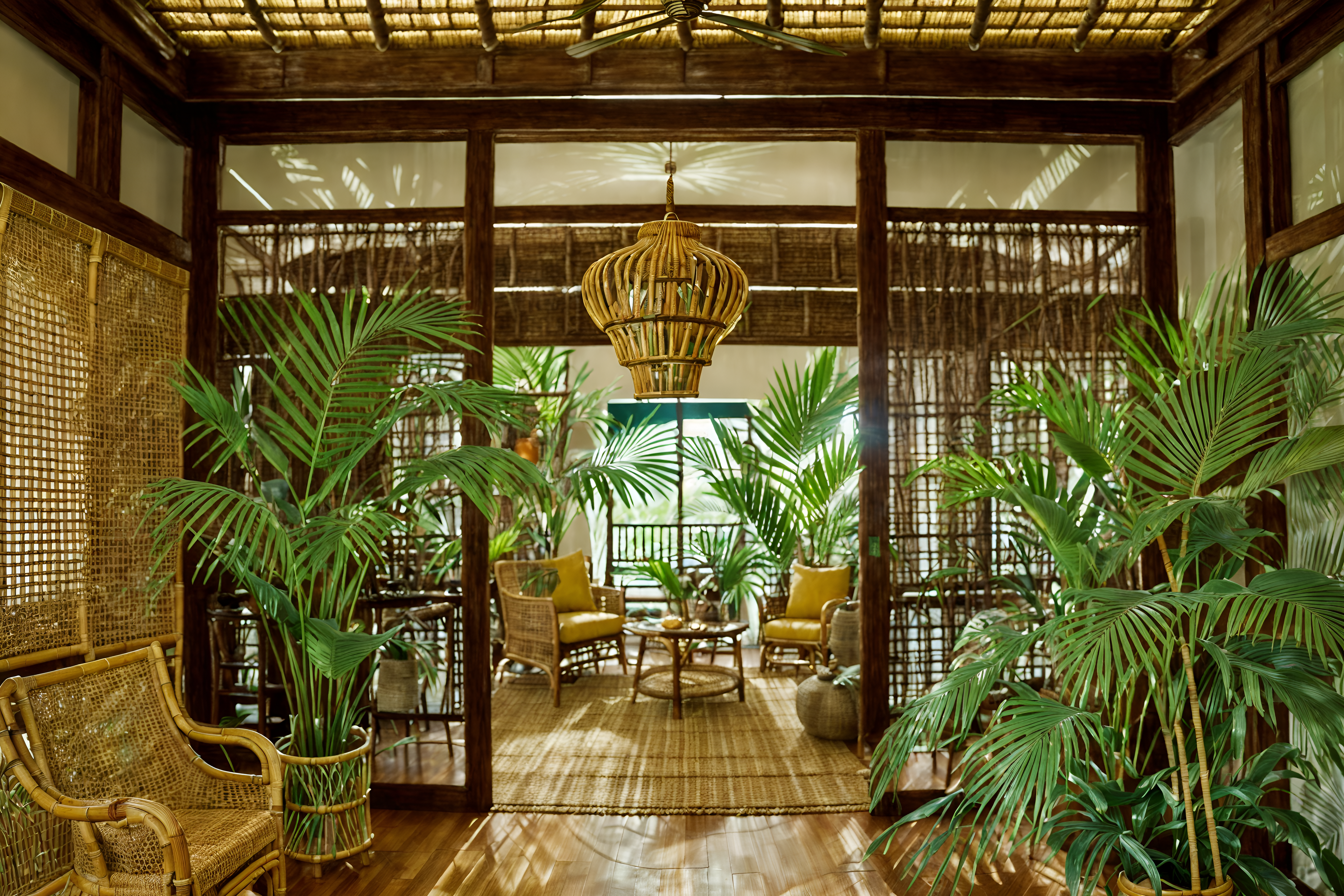 photo from pinterest of tropical-style interior designed (clothing store interior) . with cane motifs and wicker and palm leaves and palm trees and rattan and bamboo and lattice prints and teak. . cinematic photo, highly detailed, cinematic lighting, ultra-detailed, ultrarealistic, photorealism, 8k. trending on pinterest. tropical interior design style. masterpiece, cinematic light, ultrarealistic+, photorealistic+, 8k, raw photo, realistic, sharp focus on eyes, (symmetrical eyes), (intact eyes), hyperrealistic, highest quality, best quality, , highly detailed, masterpiece, best quality, extremely detailed 8k wallpaper, masterpiece, best quality, ultra-detailed, best shadow, detailed background, detailed face, detailed eyes, high contrast, best illumination, detailed face, dulux, caustic, dynamic angle, detailed glow. dramatic lighting. highly detailed, insanely detailed hair, symmetrical, intricate details, professionally retouched, 8k high definition. strong bokeh. award winning photo.