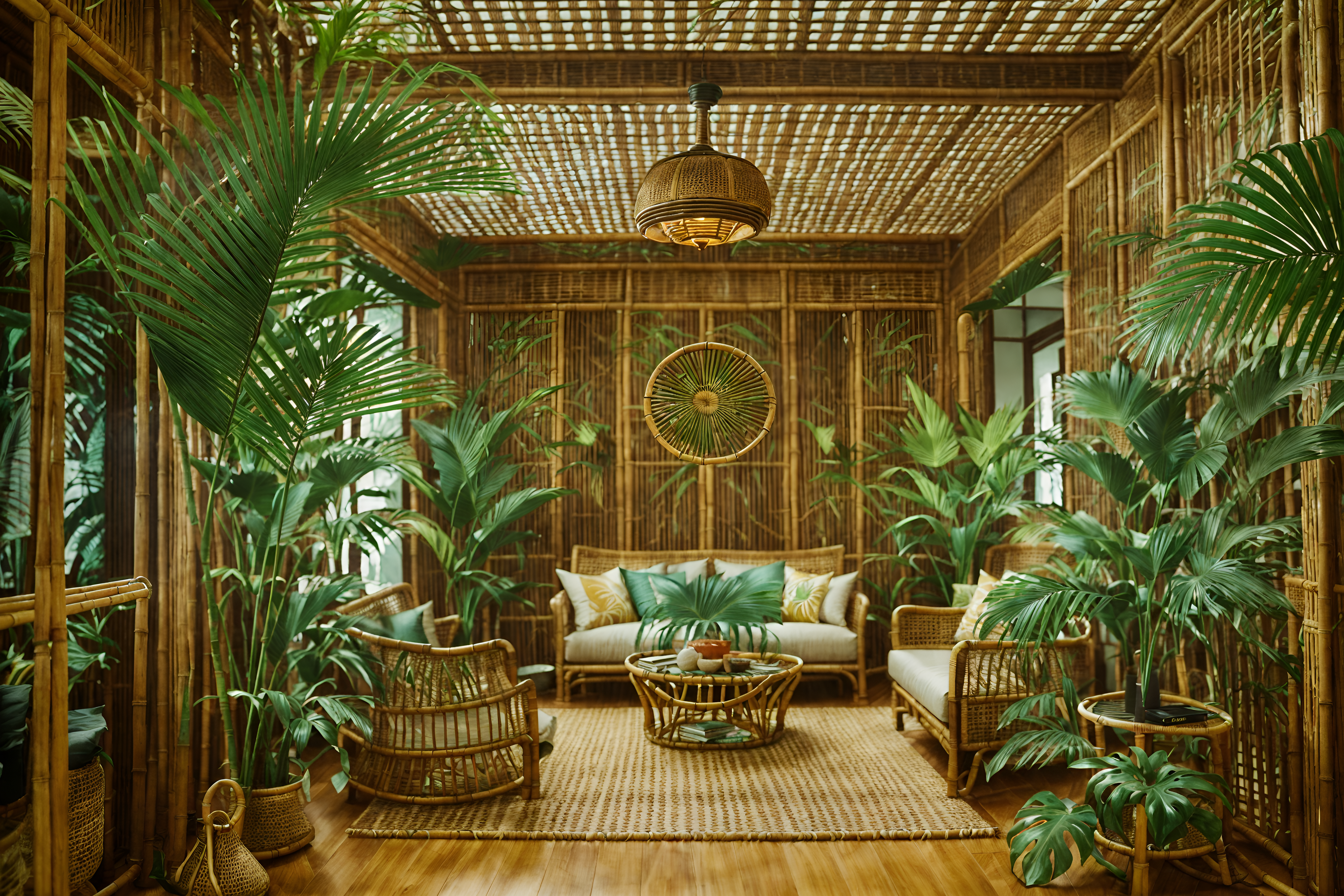 photo from pinterest of tropical-style interior designed (clothing store interior) . with cane motifs and wicker and palm leaves and palm trees and rattan and bamboo and lattice prints and teak. . cinematic photo, highly detailed, cinematic lighting, ultra-detailed, ultrarealistic, photorealism, 8k. trending on pinterest. tropical interior design style. masterpiece, cinematic light, ultrarealistic+, photorealistic+, 8k, raw photo, realistic, sharp focus on eyes, (symmetrical eyes), (intact eyes), hyperrealistic, highest quality, best quality, , highly detailed, masterpiece, best quality, extremely detailed 8k wallpaper, masterpiece, best quality, ultra-detailed, best shadow, detailed background, detailed face, detailed eyes, high contrast, best illumination, detailed face, dulux, caustic, dynamic angle, detailed glow. dramatic lighting. highly detailed, insanely detailed hair, symmetrical, intricate details, professionally retouched, 8k high definition. strong bokeh. award winning photo.