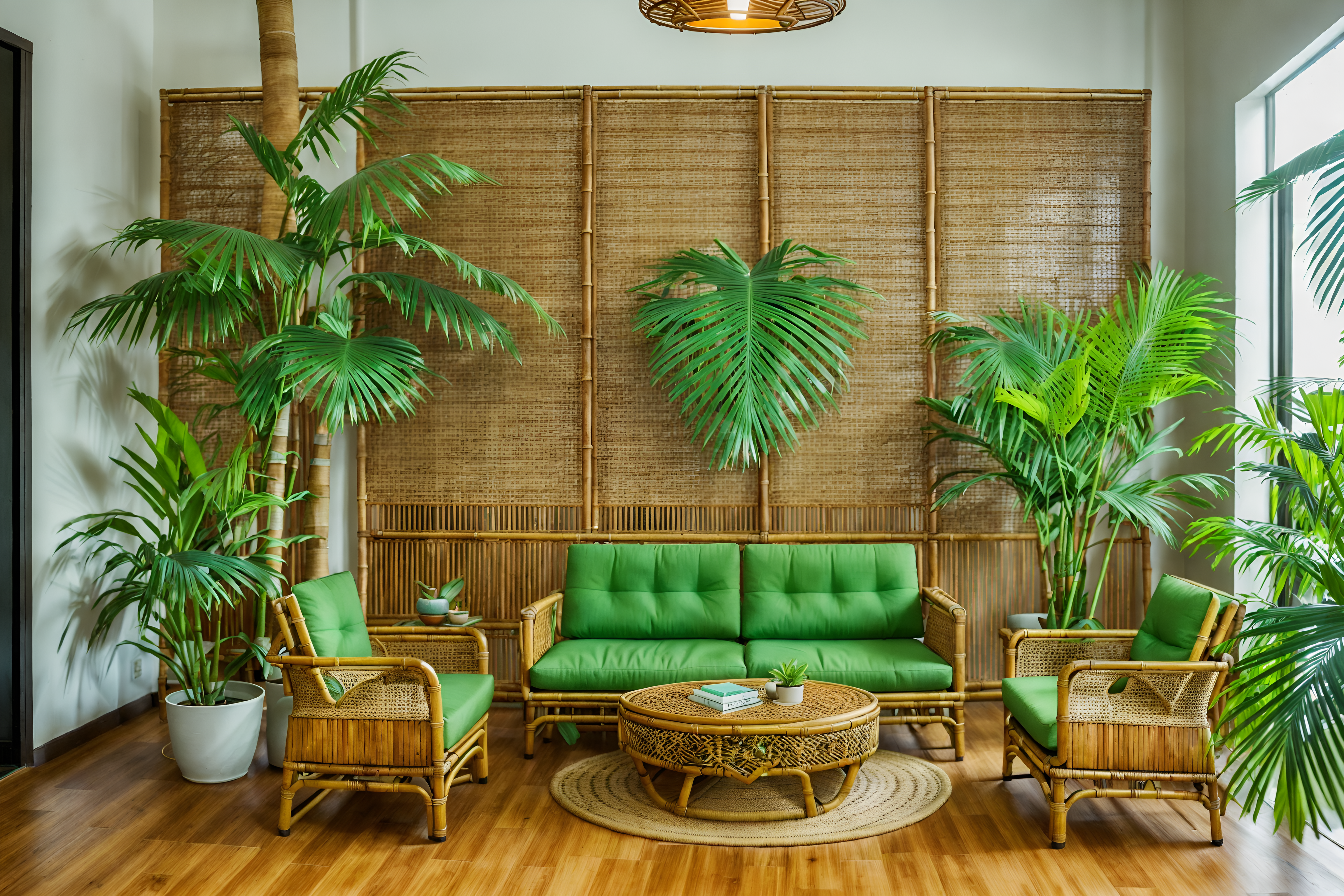 photo from pinterest of tropical-style interior designed (coworking space interior) with office desks and lounge chairs and office chairs and seating area with sofa and office desks. . with wicker and palm leaves and palm trees and teak and lattice prints and bamboo and cane motifs and rattan. . cinematic photo, highly detailed, cinematic lighting, ultra-detailed, ultrarealistic, photorealism, 8k. trending on pinterest. tropical interior design style. masterpiece, cinematic light, ultrarealistic+, photorealistic+, 8k, raw photo, realistic, sharp focus on eyes, (symmetrical eyes), (intact eyes), hyperrealistic, highest quality, best quality, , highly detailed, masterpiece, best quality, extremely detailed 8k wallpaper, masterpiece, best quality, ultra-detailed, best shadow, detailed background, detailed face, detailed eyes, high contrast, best illumination, detailed face, dulux, caustic, dynamic angle, detailed glow. dramatic lighting. highly detailed, insanely detailed hair, symmetrical, intricate details, professionally retouched, 8k high definition. strong bokeh. award winning photo.