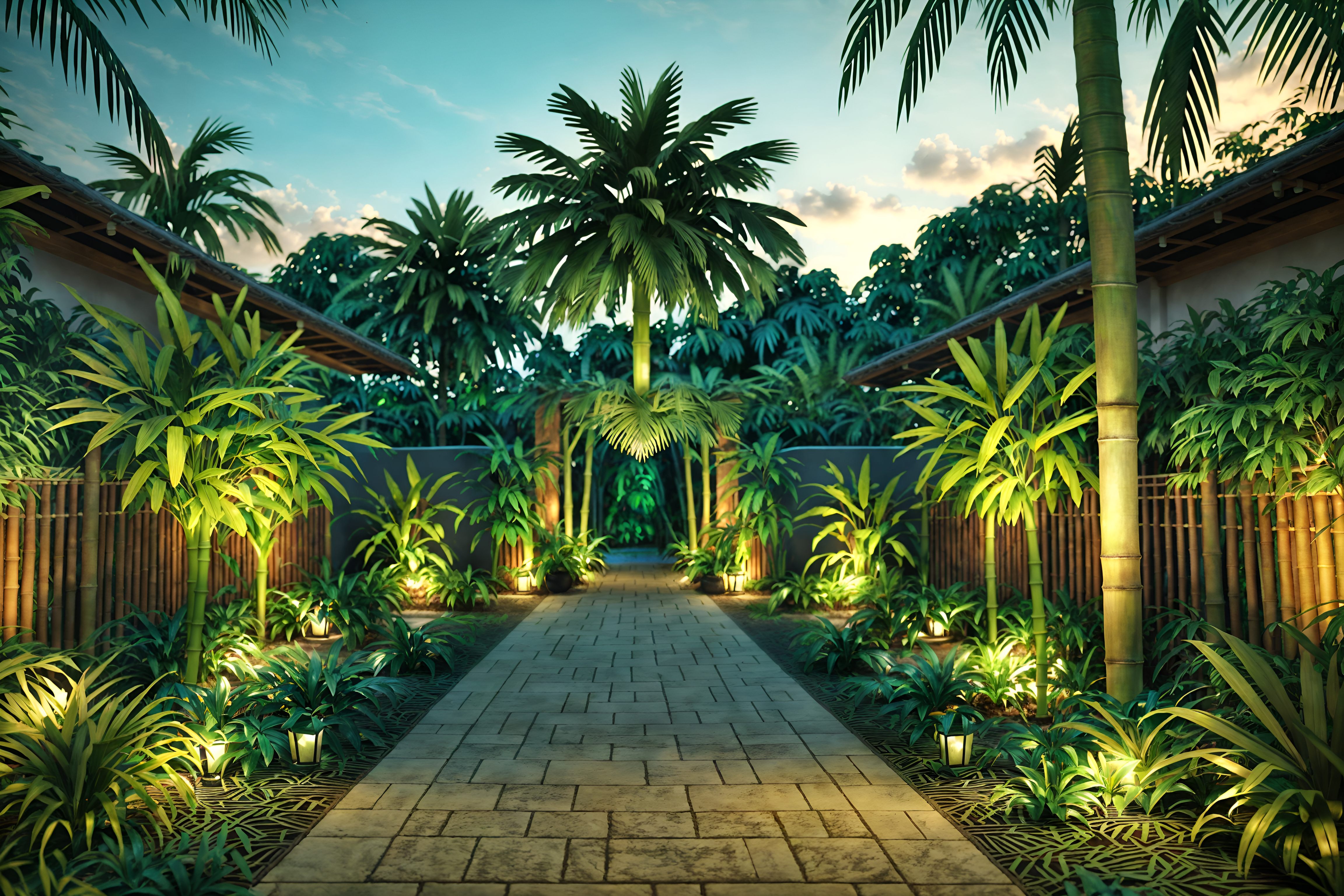 photo from pinterest of tropical-style designed (outdoor garden ) with garden plants and grass and garden tree and garden plants. . with wicker and lattice prints and palm leaves and bamboo and palm trees and rattan and teak and cane motifs. . cinematic photo, highly detailed, cinematic lighting, ultra-detailed, ultrarealistic, photorealism, 8k. trending on pinterest. tropical design style. masterpiece, cinematic light, ultrarealistic+, photorealistic+, 8k, raw photo, realistic, sharp focus on eyes, (symmetrical eyes), (intact eyes), hyperrealistic, highest quality, best quality, , highly detailed, masterpiece, best quality, extremely detailed 8k wallpaper, masterpiece, best quality, ultra-detailed, best shadow, detailed background, detailed face, detailed eyes, high contrast, best illumination, detailed face, dulux, caustic, dynamic angle, detailed glow. dramatic lighting. highly detailed, insanely detailed hair, symmetrical, intricate details, professionally retouched, 8k high definition. strong bokeh. award winning photo.