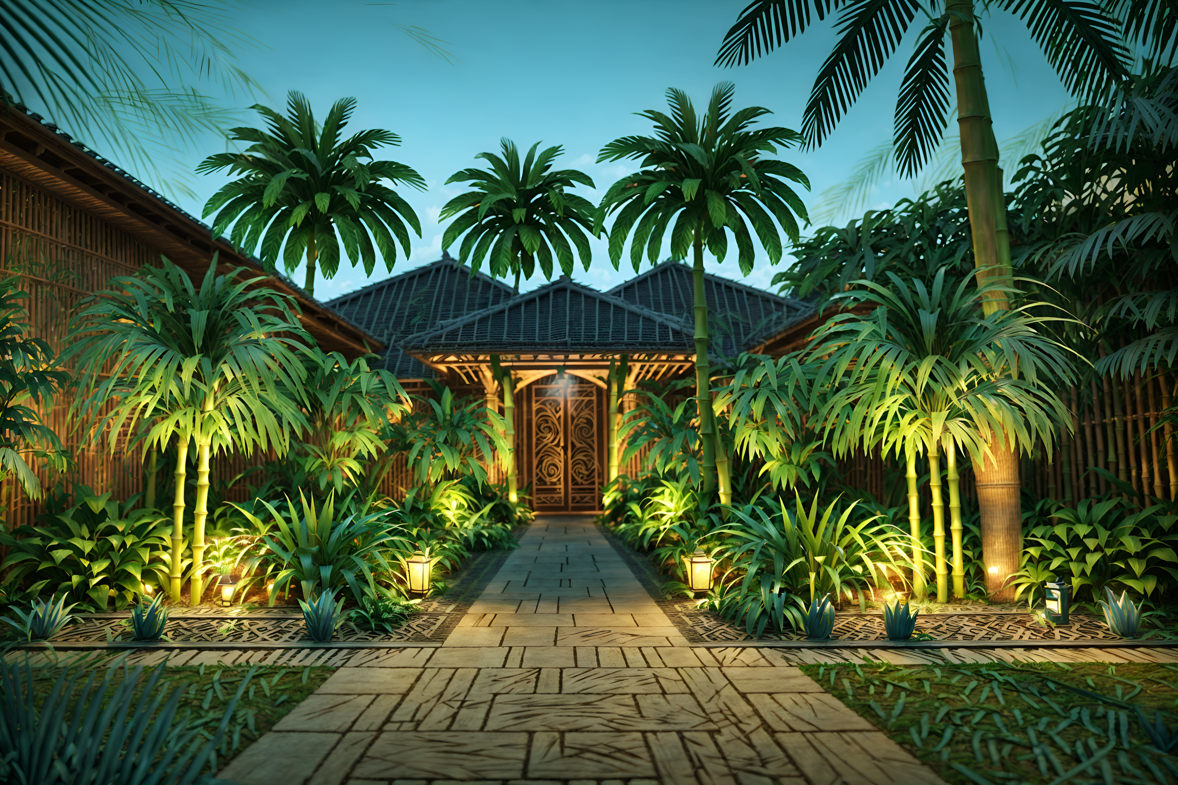 photo from pinterest of tropical-style designed (outdoor garden ) with garden plants and grass and garden tree and garden plants. . with wicker and lattice prints and palm leaves and bamboo and palm trees and rattan and teak and cane motifs. . cinematic photo, highly detailed, cinematic lighting, ultra-detailed, ultrarealistic, photorealism, 8k. trending on pinterest. tropical design style. masterpiece, cinematic light, ultrarealistic+, photorealistic+, 8k, raw photo, realistic, sharp focus on eyes, (symmetrical eyes), (intact eyes), hyperrealistic, highest quality, best quality, , highly detailed, masterpiece, best quality, extremely detailed 8k wallpaper, masterpiece, best quality, ultra-detailed, best shadow, detailed background, detailed face, detailed eyes, high contrast, best illumination, detailed face, dulux, caustic, dynamic angle, detailed glow. dramatic lighting. highly detailed, insanely detailed hair, symmetrical, intricate details, professionally retouched, 8k high definition. strong bokeh. award winning photo.