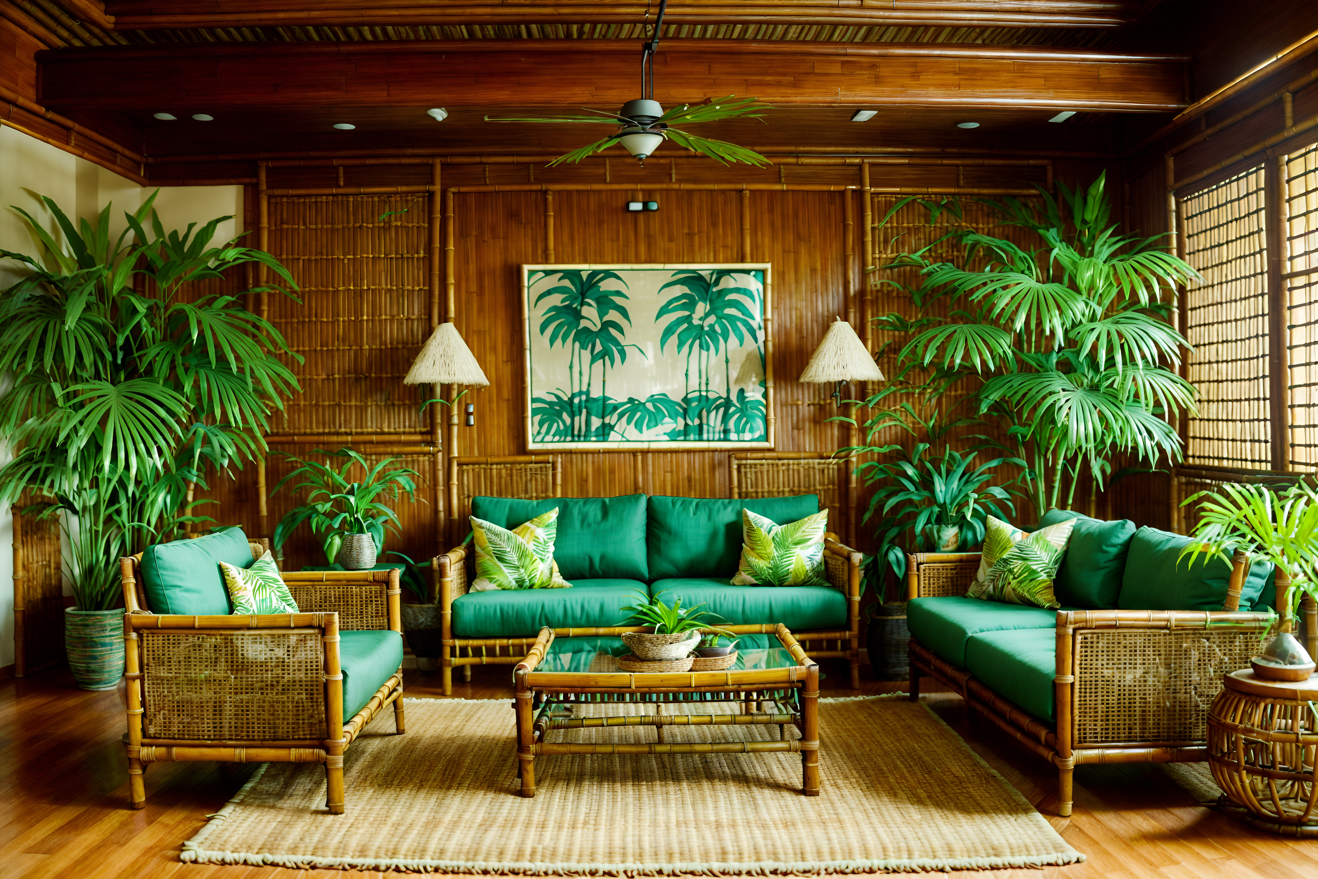 tropical interiorsinterior decorate this auditorium with tropical style. . . with microphones and sound system and lighting equipment and stage and balcony and orchestra pit and aisles and exit signs. . with palm leaves and rattan and bamboo and lattice prints and wicker and teak and palm trees and cane motifs. . .interior decorate this laundry room with tropical style. . . with area rug and iron and cabinet and drying racks and clothes dryer and floating shelves and laundry jars and washing machine. . with wicker and palm leaves and rattan and palm trees and bamboo and lattice prints and teak and cane motifs. . .interior decorate this home office with tropical style. . . with cabinets and computer desk and desk lamp and plant and office chair and cabinets. . with teak and rattan and lattice prints and palm leaves and wicker and bamboo and palm trees and cane motifs. . .interior decorate this coffee shop with tropical style. . . . with lattice prints and palm leaves and palm trees and cane motifs and wicker and rattan and teak and bamboo. . .interior decorate this hotel room with tropical style. . . with headboard and accent chair and hotel bathroom and bed and bedside table or night stand and storage bench or ottoman and night light and mirror. . with wicker and lattice prints and teak and palm leaves and bamboo and rattan and cane motifs and palm trees. . .interior decorate this dining room with tropical style. . . with dining table and plates, cutlery and glasses on dining table and table cloth and vase and light or chandelier and plant and dining table chairs and painting or photo on wall. . with teak and rattan and palm leaves and palm trees and cane motifs and bamboo and lattice prints and wicker. . .interior decorate this garage with tropical style. . . with concrete floor and cars and bicycles and lawnmower and storage racks and garage door and concrete floor. . with bamboo and palm trees and teak and wicker and lattice prints and rattan and cane motifs and palm leaves. . .interior decorate this outdoor garage with tropical style. . . with carport and cars and canopy and storage racks and roof solar panels and carport roof and carport. . with palm leaves and lattice prints and rattan and teak and palm trees and bamboo and wicker and cane motifs. . .interior decorate this attic with tropical style. . . with storage boxes and exposed beams and ladder and old furniture and vintage trunk and skylights and old books and antique items. . with palm trees and teak and wicker and palm leaves and bamboo and rattan and cane motifs and lattice prints. . .