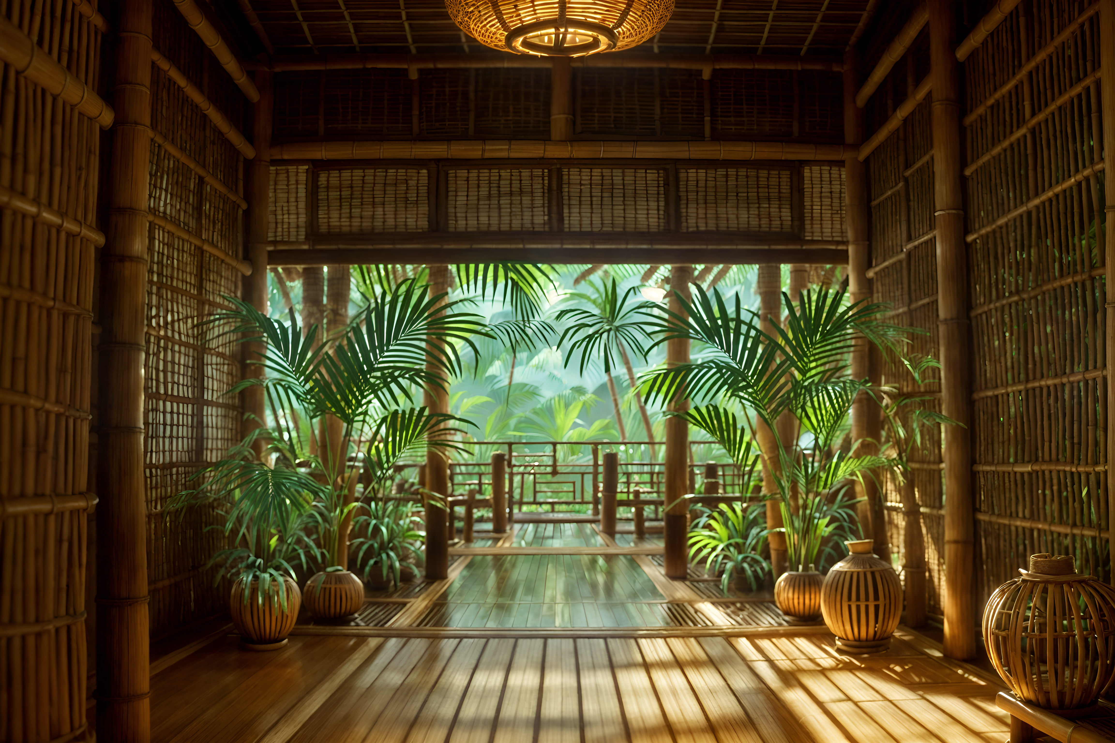 photo from pinterest of tropical-style interior designed (onsen interior) . with palm leaves and bamboo and rattan and lattice prints and cane motifs and wicker and teak and palm trees. . cinematic photo, highly detailed, cinematic lighting, ultra-detailed, ultrarealistic, photorealism, 8k. trending on pinterest. tropical interior design style. masterpiece, cinematic light, ultrarealistic+, photorealistic+, 8k, raw photo, realistic, sharp focus on eyes, (symmetrical eyes), (intact eyes), hyperrealistic, highest quality, best quality, , highly detailed, masterpiece, best quality, extremely detailed 8k wallpaper, masterpiece, best quality, ultra-detailed, best shadow, detailed background, detailed face, detailed eyes, high contrast, best illumination, detailed face, dulux, caustic, dynamic angle, detailed glow. dramatic lighting. highly detailed, insanely detailed hair, symmetrical, intricate details, professionally retouched, 8k high definition. strong bokeh. award winning photo.