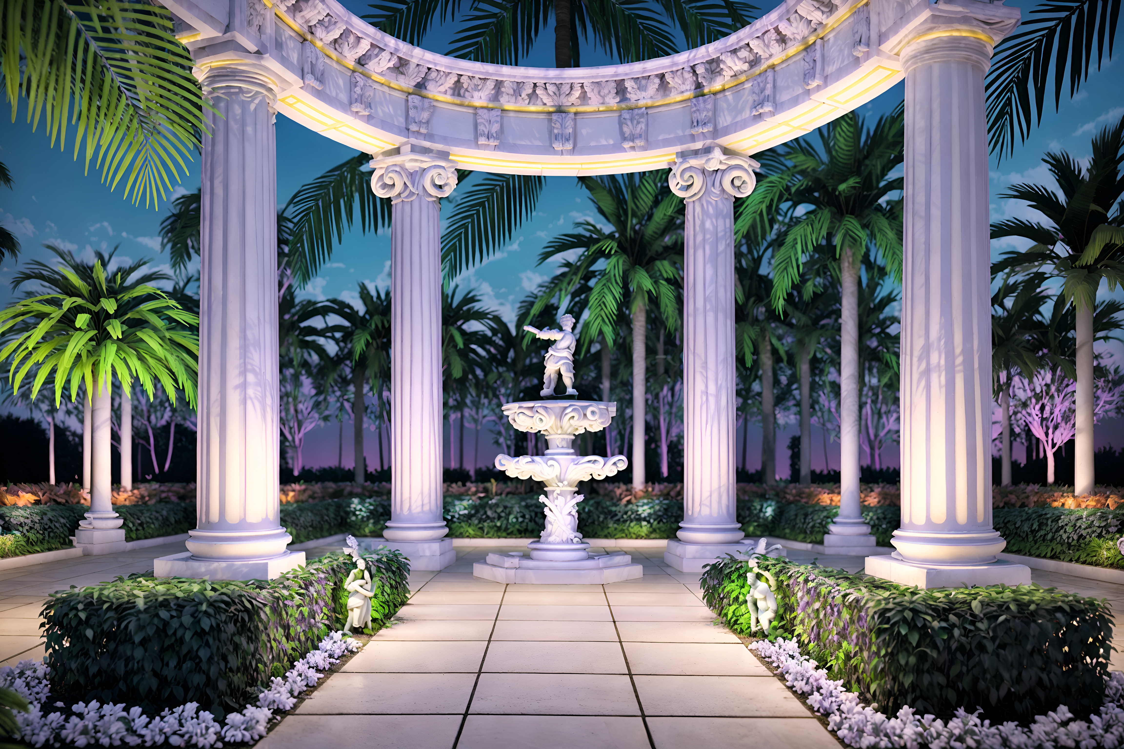 photo from pinterest of vaporwave-style designed (outdoor garden ) with garden tree and garden plants and grass and garden tree. . with purple lights and palm trees and purple lights and white roman statues, white roman sculptures, white roman columns, white roman pillars in the center of the room, and neon glow and baby blue and bright pink and white square bathroom tiles. . cinematic photo, highly detailed, cinematic lighting, ultra-detailed, ultrarealistic, photorealism, 8k. trending on pinterest. vaporwave design style. masterpiece, cinematic light, ultrarealistic+, photorealistic+, 8k, raw photo, realistic, sharp focus on eyes, (symmetrical eyes), (intact eyes), hyperrealistic, highest quality, best quality, , highly detailed, masterpiece, best quality, extremely detailed 8k wallpaper, masterpiece, best quality, ultra-detailed, best shadow, detailed background, detailed face, detailed eyes, high contrast, best illumination, detailed face, dulux, caustic, dynamic angle, detailed glow. dramatic lighting. highly detailed, insanely detailed hair, symmetrical, intricate details, professionally retouched, 8k high definition. strong bokeh. award winning photo.